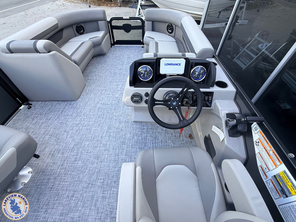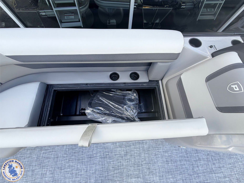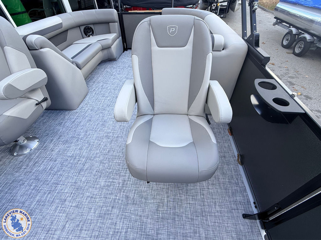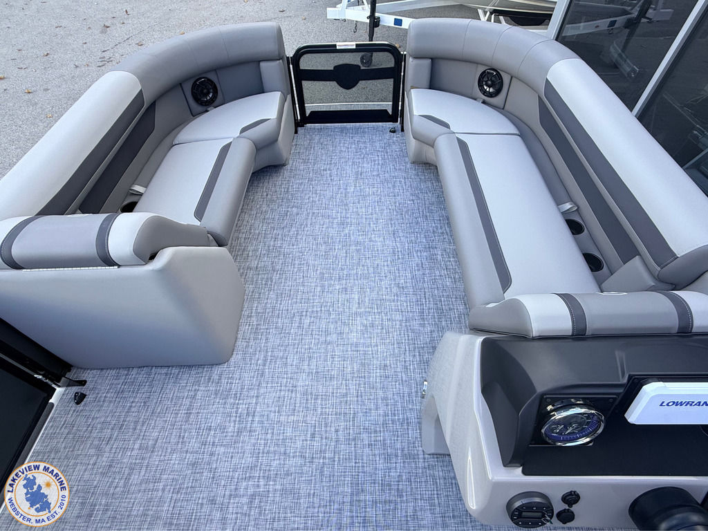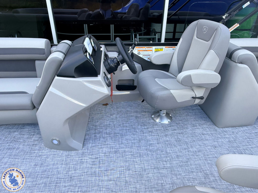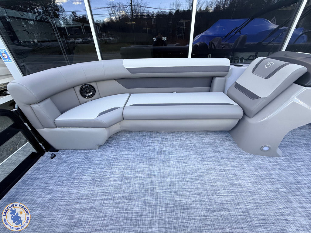 This stunning 2026 Premier Tritoon includes rear and bow-facing couches on both the starboard and port side ensuring no shortage of comfort or great views for everyone on board. Powered by the ultra-reliable 150hp Yamaha, this tritoon delivers smooth handling, impressive acceleration and plenty of power for watersports or long lake days. Features like LED docking lights, a fiberglass helm, integrated steering, a 10' powered bimini, and a ski tow bar make it as functional as it is fun!