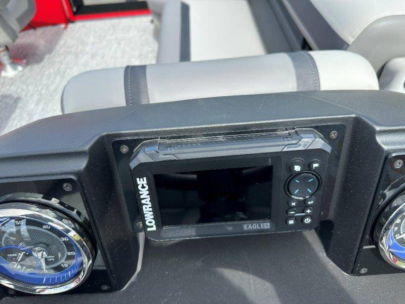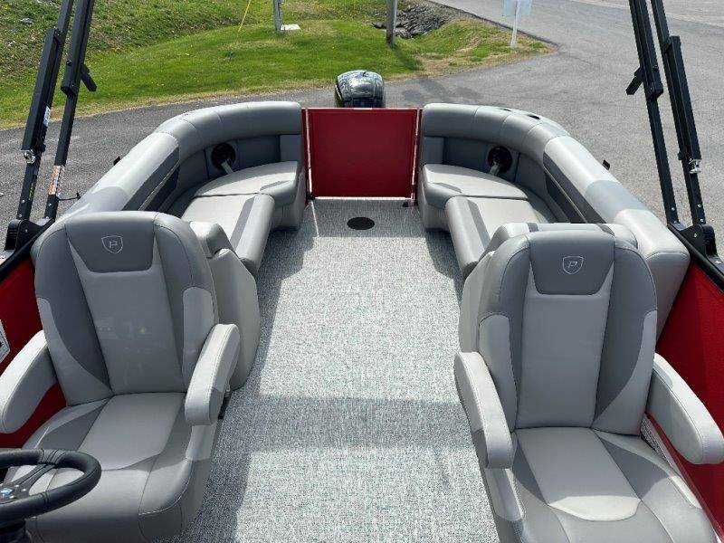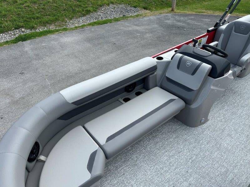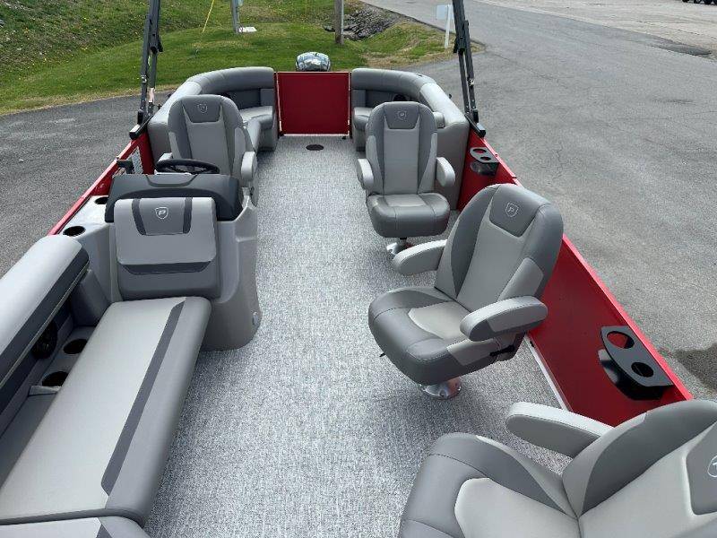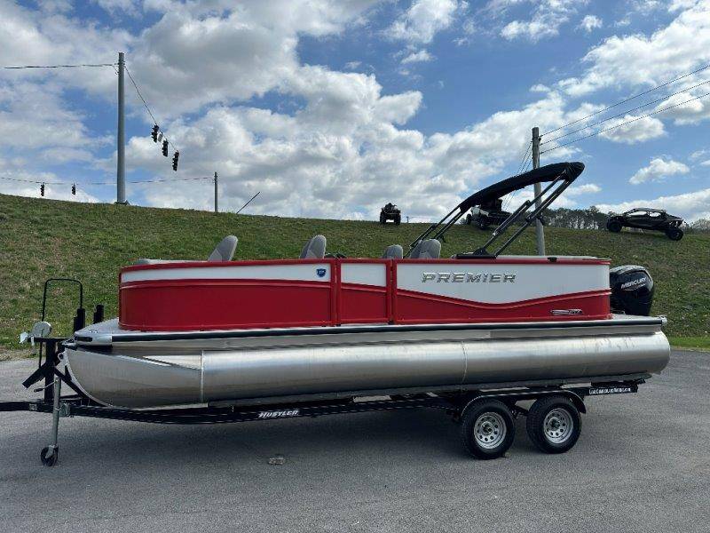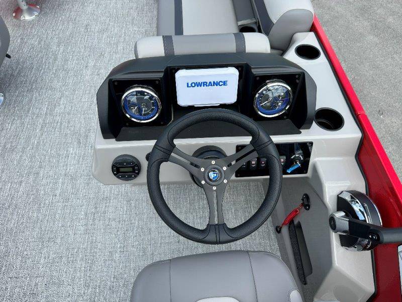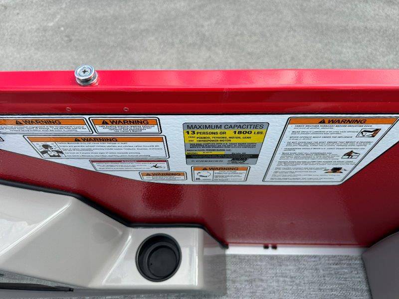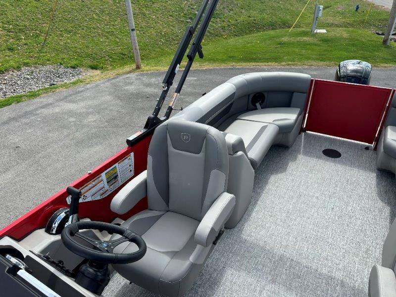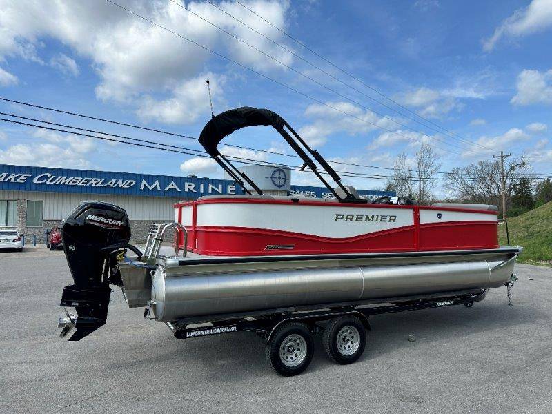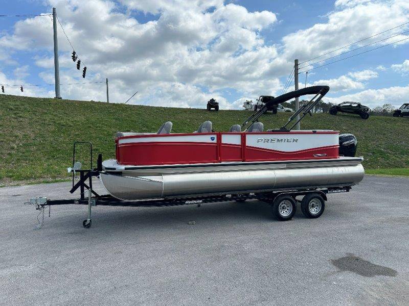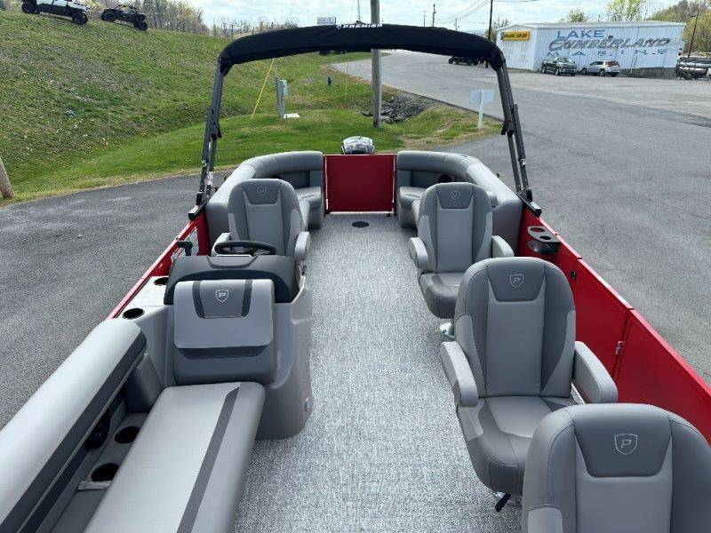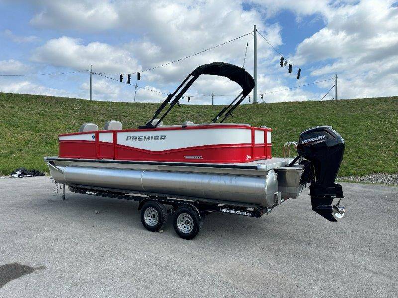 2026 Premier 220 Sunscape RF SELECTED OPTIONS Two Tone Panel- Crimson Red/White Pearl Railing Color- Red Standard Badging Vantage Tube Film- None Telescoping 4" Wide Step Ladder Gunnel Rubber Insert LED Dock Lights Fiberglass Helm Color- Mountain Gray Furniture Base Color- Mountain Gray Furniture Accent Color- Charcoal Coastline Flooring Color- Birchwood Filler Couch- None Fast-Charging USB-A/USB-C in Helm Lowrance Eagle 5" Display Wet Sounds MC-Round, RECON 6.5" Speakers (4) Dinette Layout (Port Bow, Includes Dual Chairs) 10' Power Arm Bimini Frame Color- Midnight Canvas Cover- Onyx PTX25 Package (w/ Lifting Strakes) Chassis 25" Transom Rig Mechanical Engine 200HP Max Rating Mercury Mechanical 115HP and Below Mercury 115EXLPT Command Thrust 4S Rotary Steering 33gal Fuel Capacity Transportation Protection- Cover Only