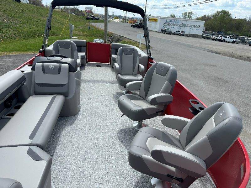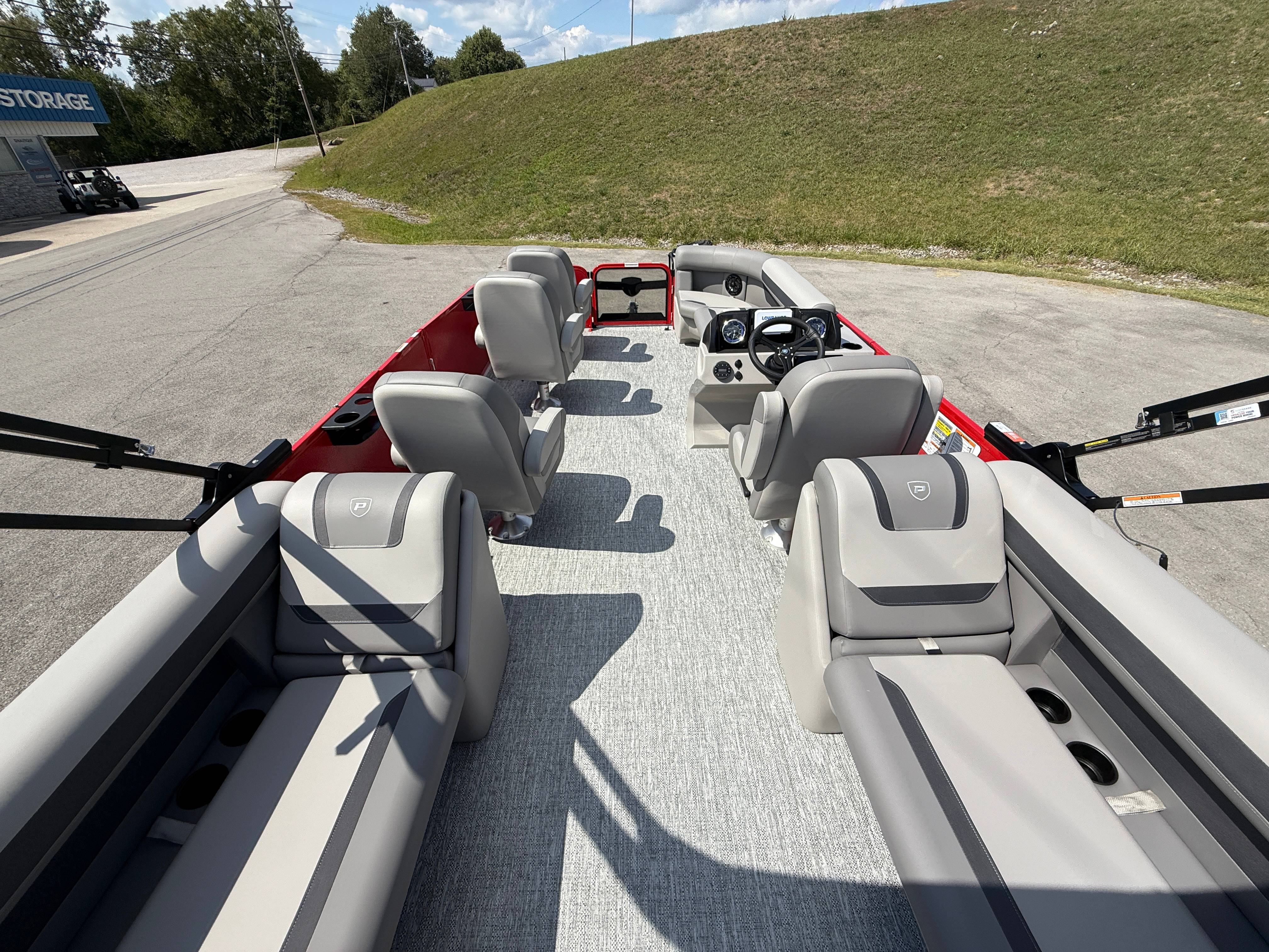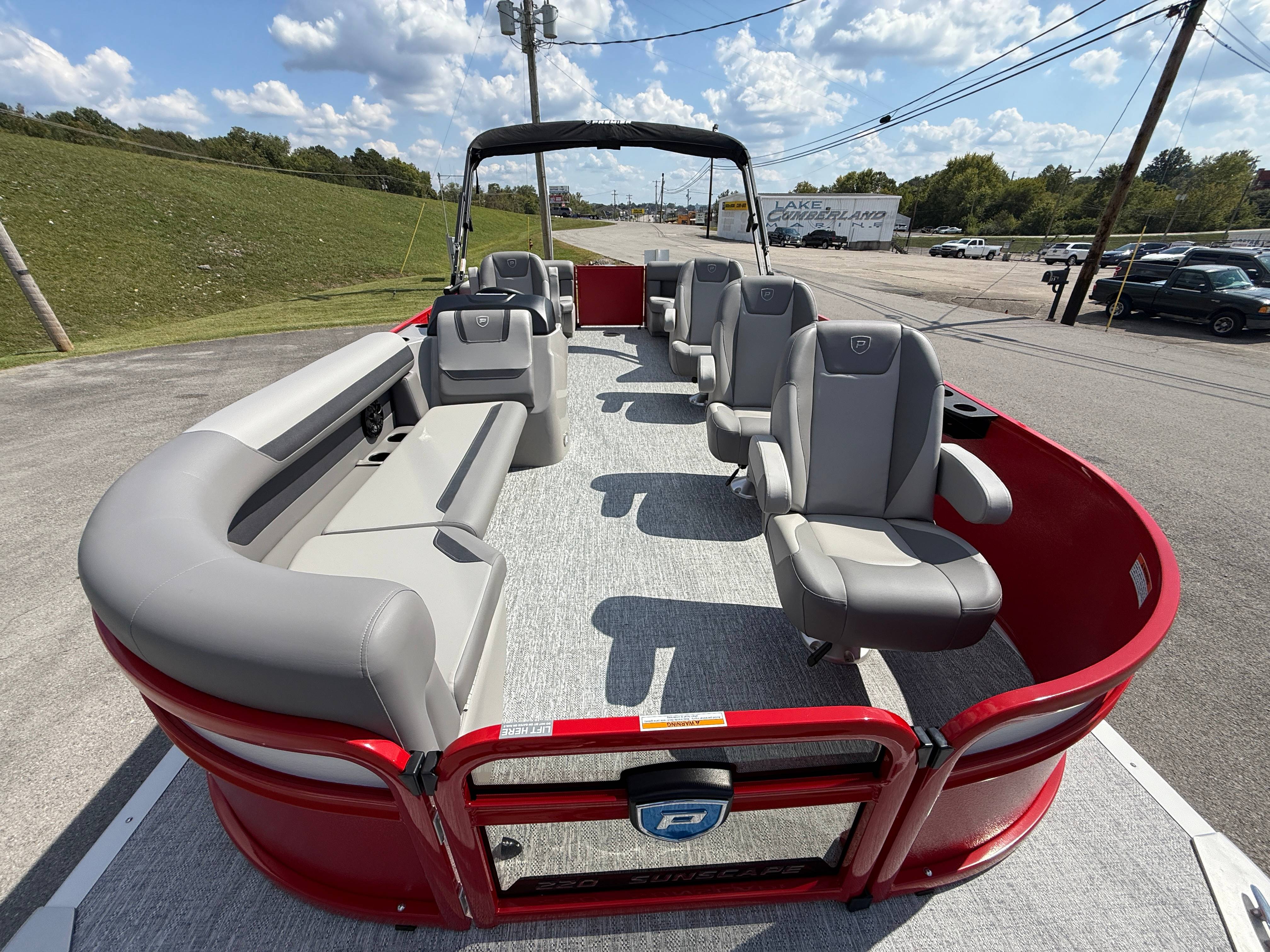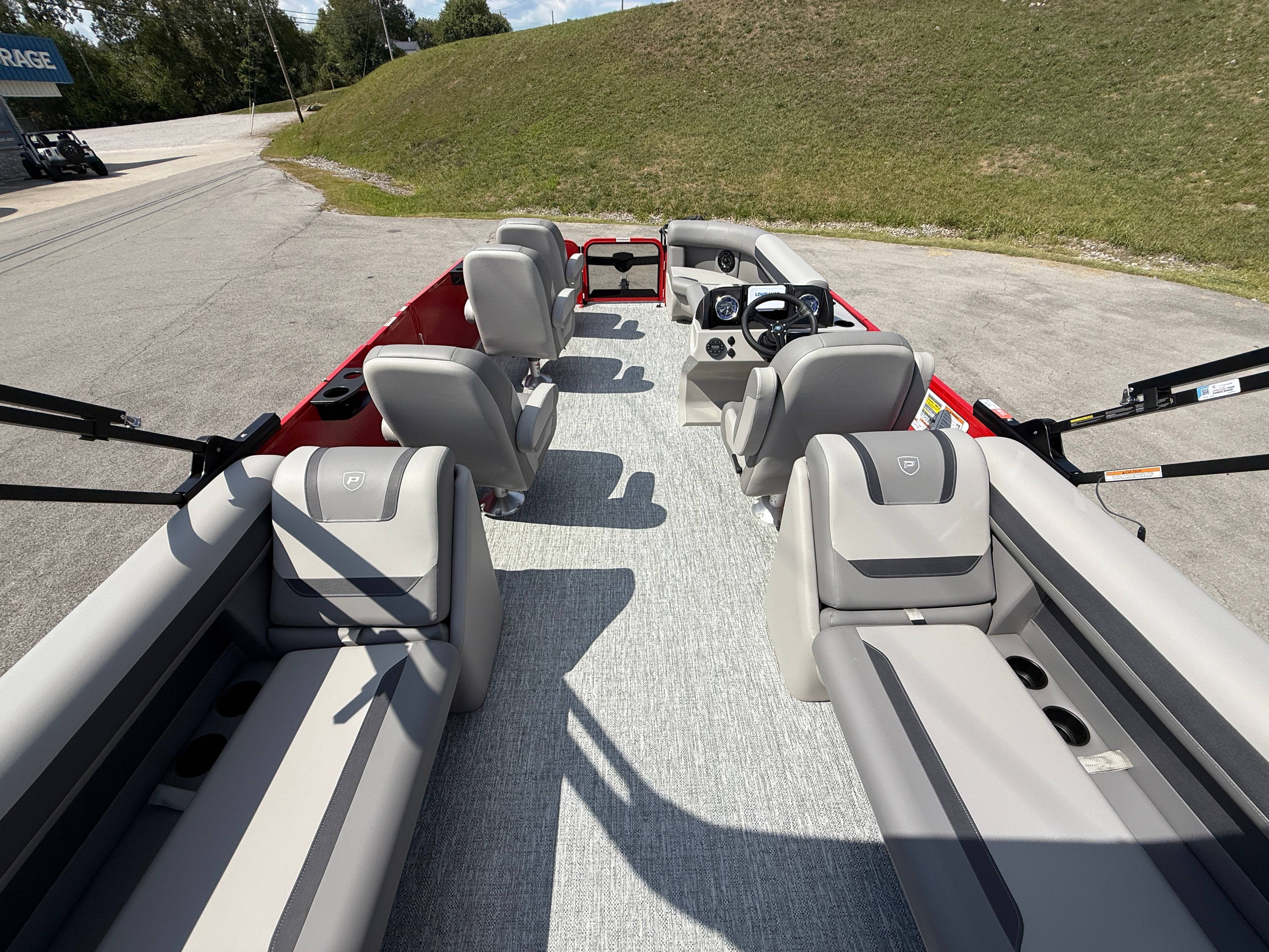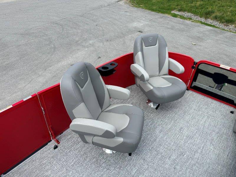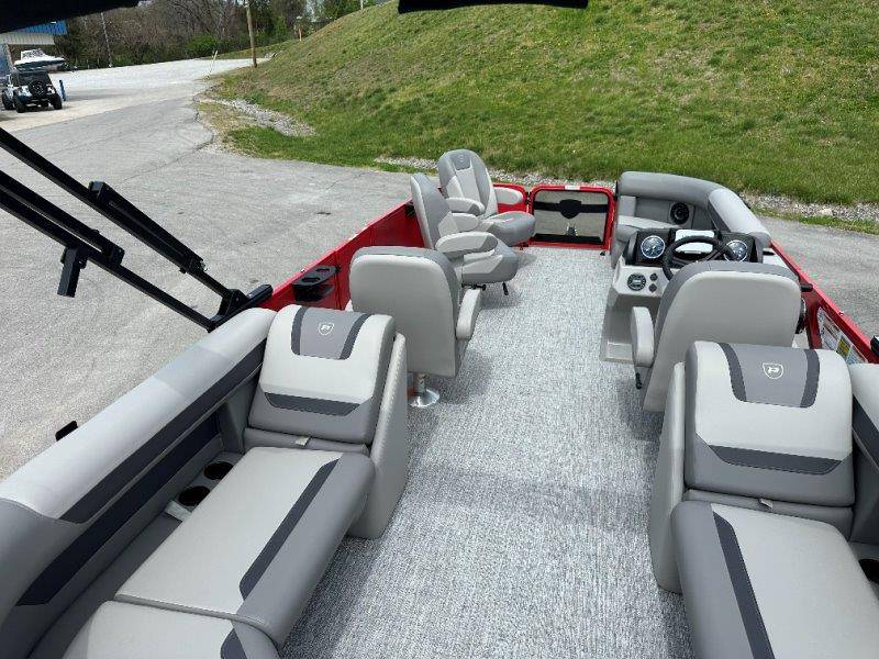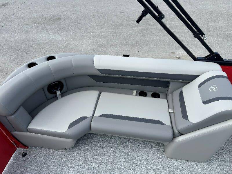 2026 Premier 220 Sunscape RF SELECTED OPTIONS Two Tone Panel- Crimson Red/White Pearl Railing Color- Red Standard Badging Vantage Tube Film- None Telescoping 4" Wide Step Ladder Gunnel Rubber Insert LED Dock Lights Fiberglass Helm Color- Mountain Gray Furniture Base Color- Mountain Gray Furniture Accent Color- Charcoal Coastline Flooring Color- Birchwood Filler Couch- None Fast-Charging USB-A/USB-C in Helm Lowrance Eagle 5" Display Wet Sounds MC-Round, RECON 6.5" Speakers (4) Dinette Layout (Port Bow, Includes Dual Chairs) 10' Power Arm Bimini Frame Color- Midnight Canvas Cover- Onyx PTX25 Package (w/ Lifting Strakes) Chassis 25" Transom Rig Mechanical Engine 200HP Max Rating Mercury Mechanical 115HP and Below Mercury 115EXLPT Command Thrust 4S Rotary Steering 33gal Fuel Capacity Transportation Protection- Cover Only