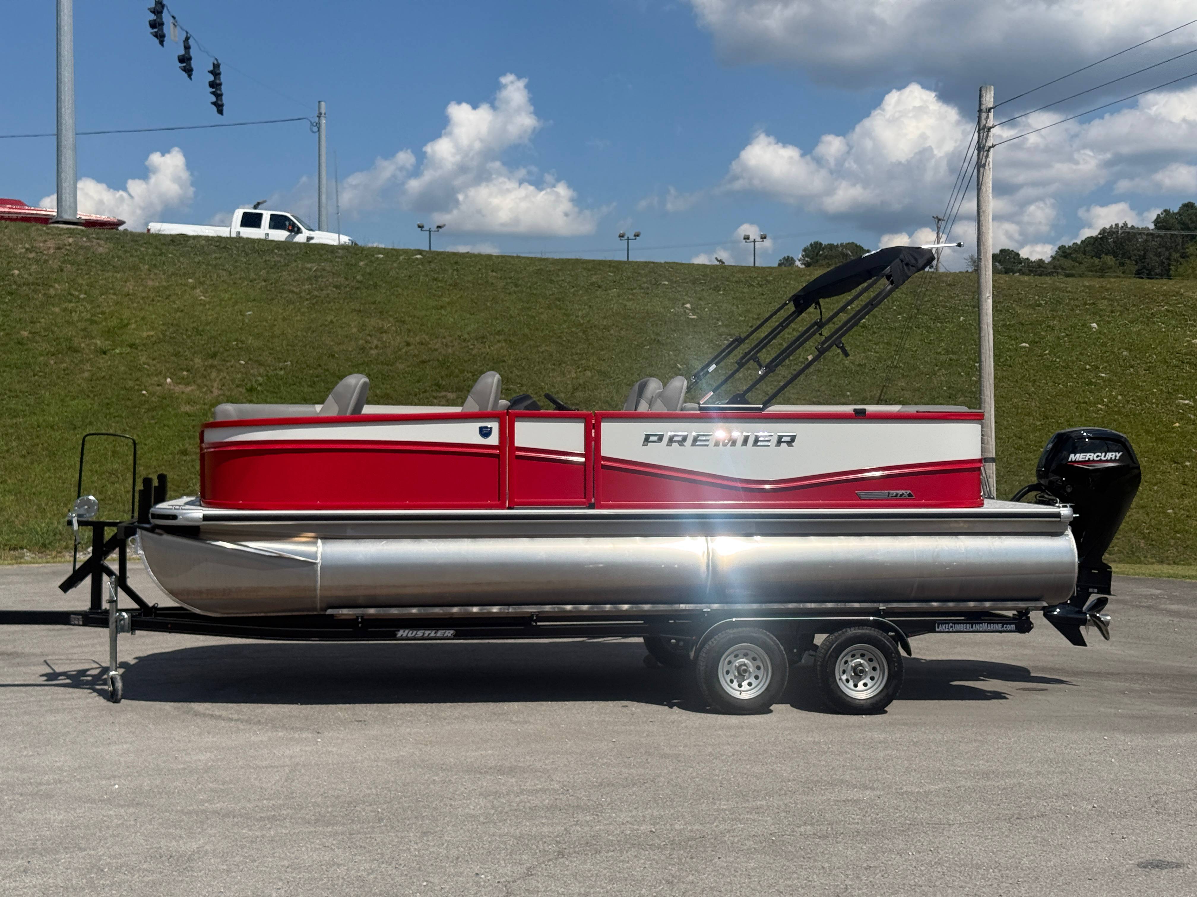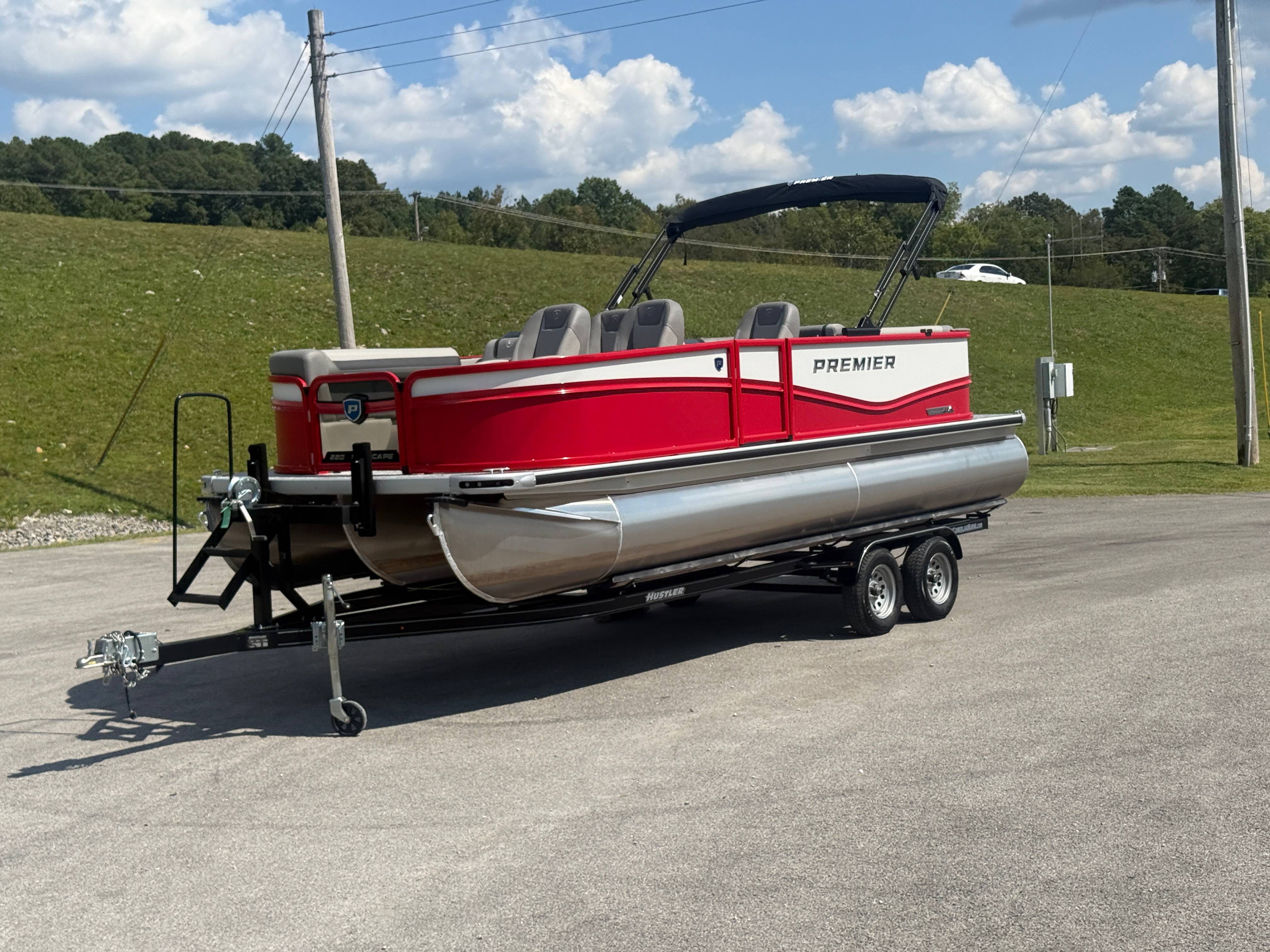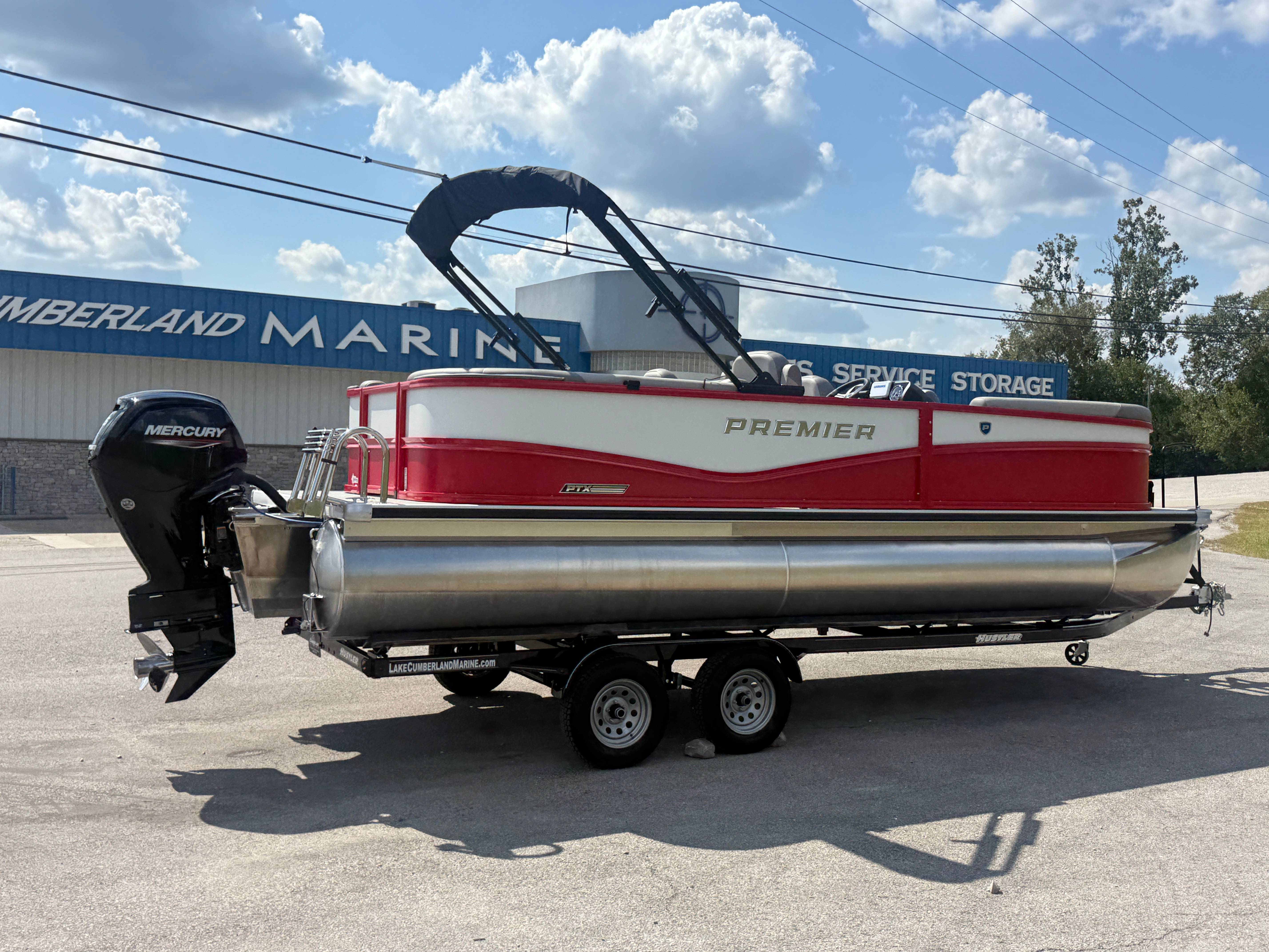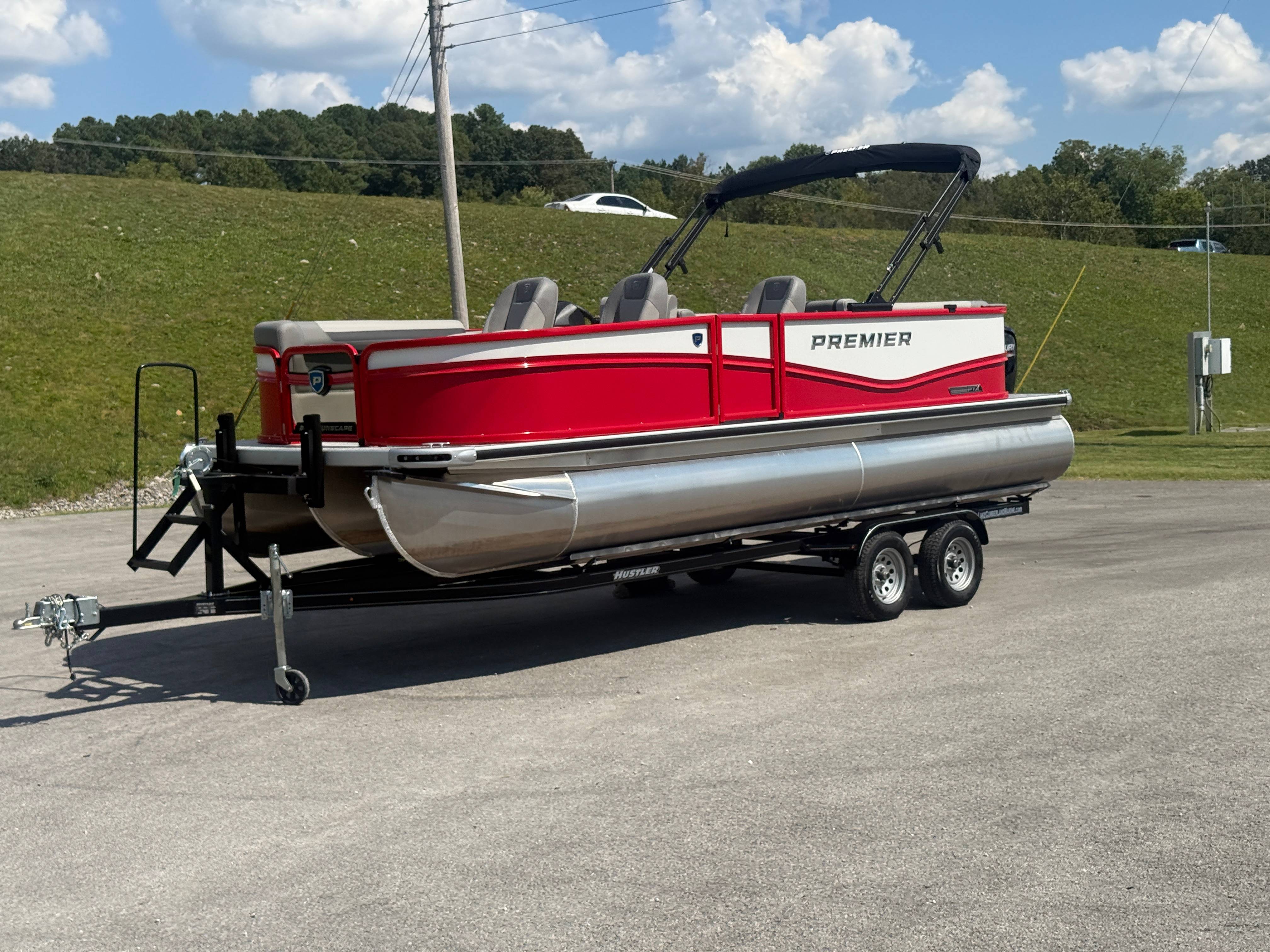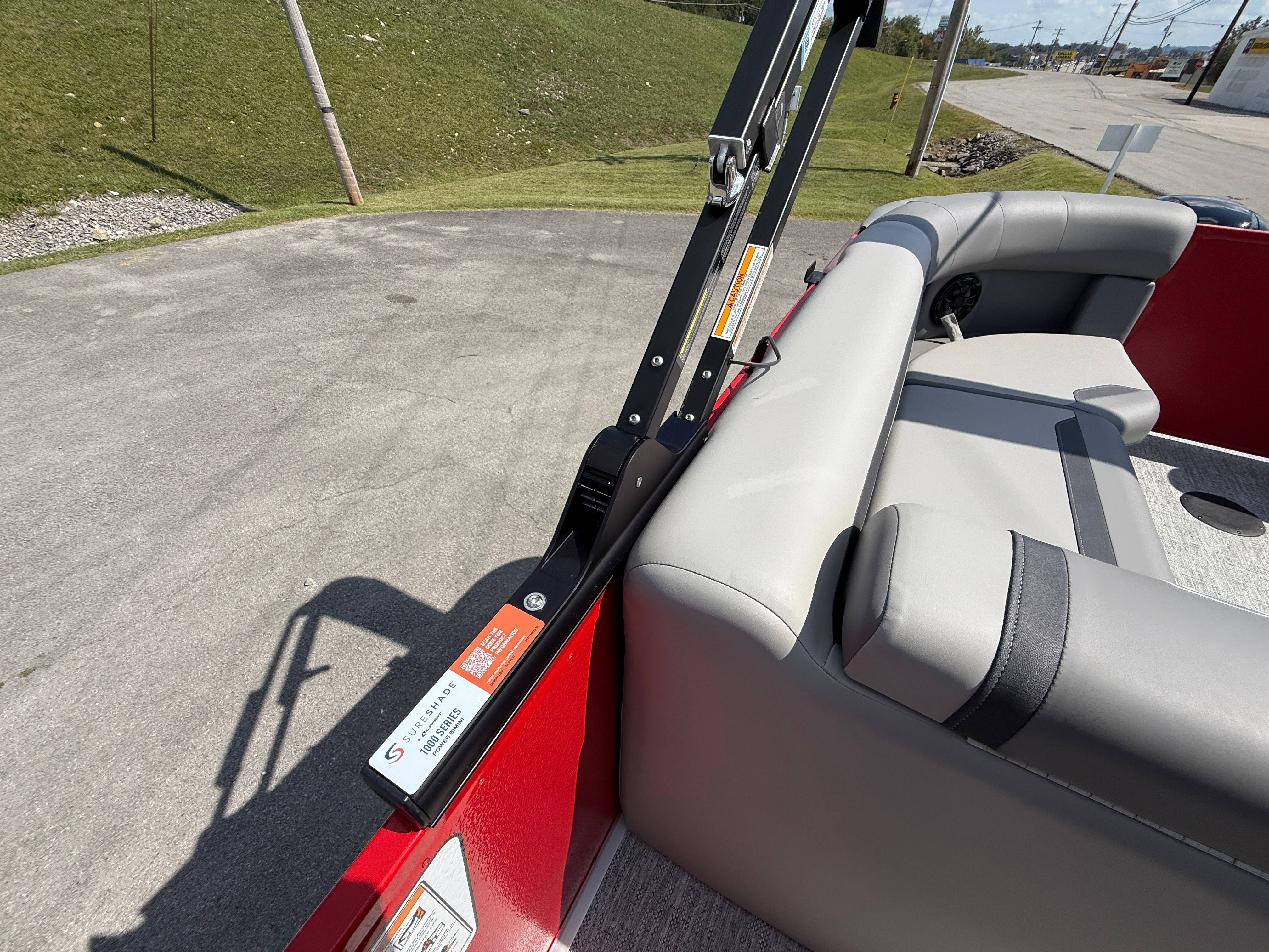 2026 Premier 220 Sunscape RF SELECTED OPTIONS Two Tone Panel- Crimson Red/White Pearl Railing Color- Red Standard Badging Vantage Tube Film- None Telescoping 4" Wide Step Ladder Gunnel Rubber Insert LED Dock Lights Fiberglass Helm Color- Mountain Gray Furniture Base Color- Mountain Gray Furniture Accent Color- Charcoal Coastline Flooring Color- Birchwood Filler Couch- None Fast-Charging USB-A/USB-C in Helm Lowrance Eagle 5" Display Wet Sounds MC-Round, RECON 6.5" Speakers (4) Dinette Layout (Port Bow, Includes Dual Chairs) 10' Power Arm Bimini Frame Color- Midnight Canvas Cover- Onyx PTX25 Package (w/ Lifting Strakes) Chassis 25" Transom Rig Mechanical Engine 200HP Max Rating Mercury Mechanical 115HP and Below Mercury 115EXLPT Command Thrust 4S Rotary Steering 33gal Fuel Capacity Transportation Protection- Cover Only