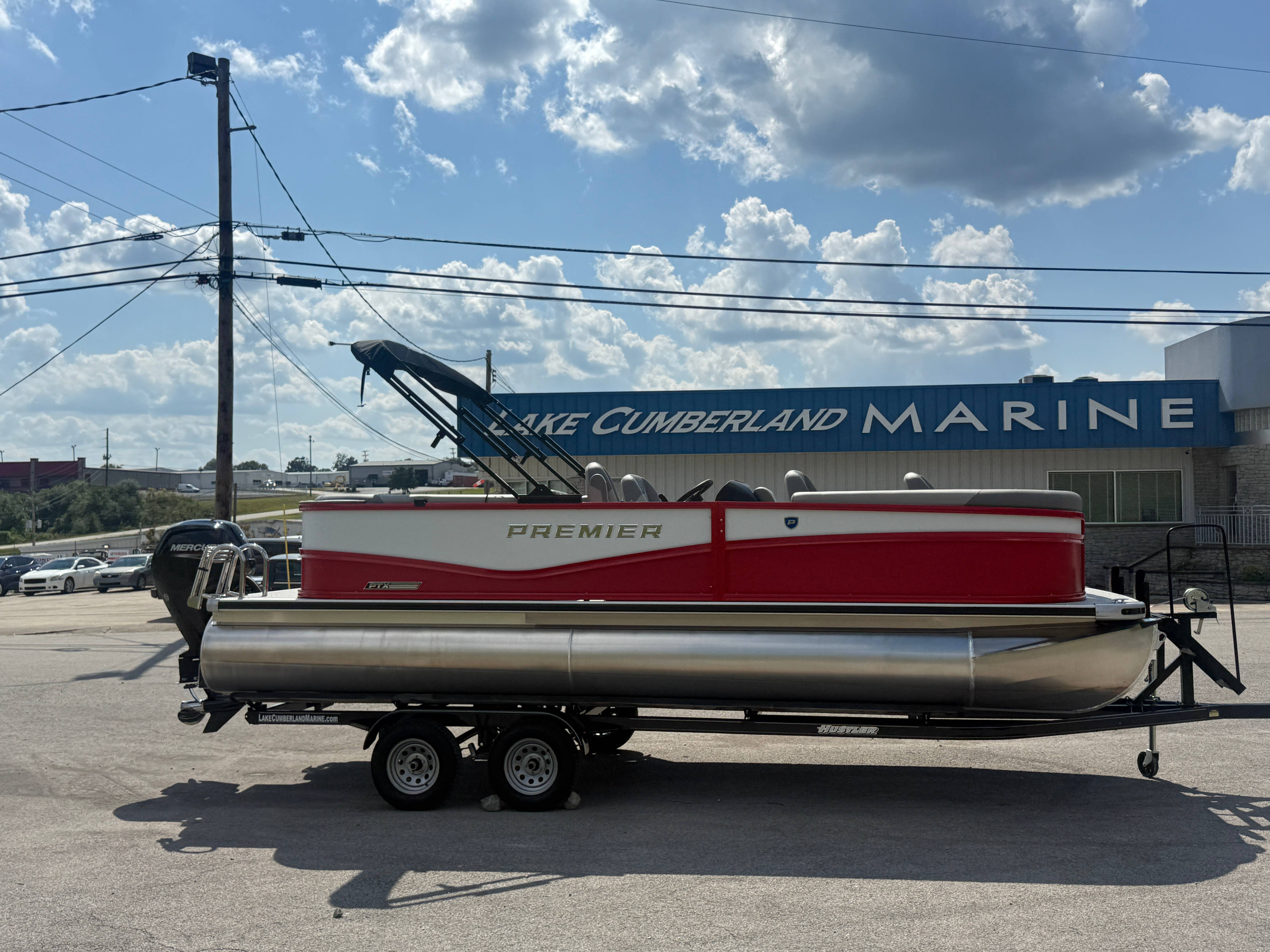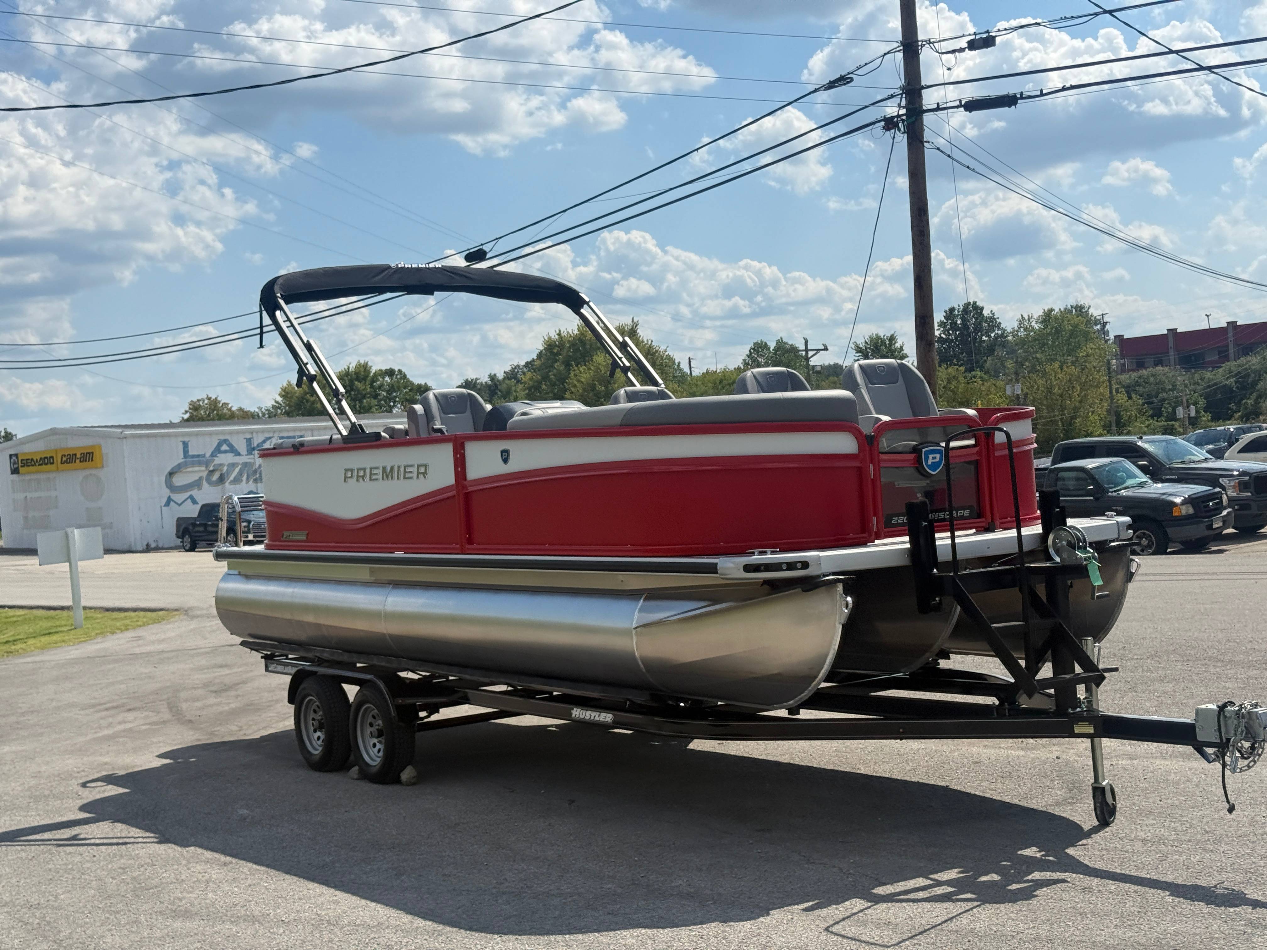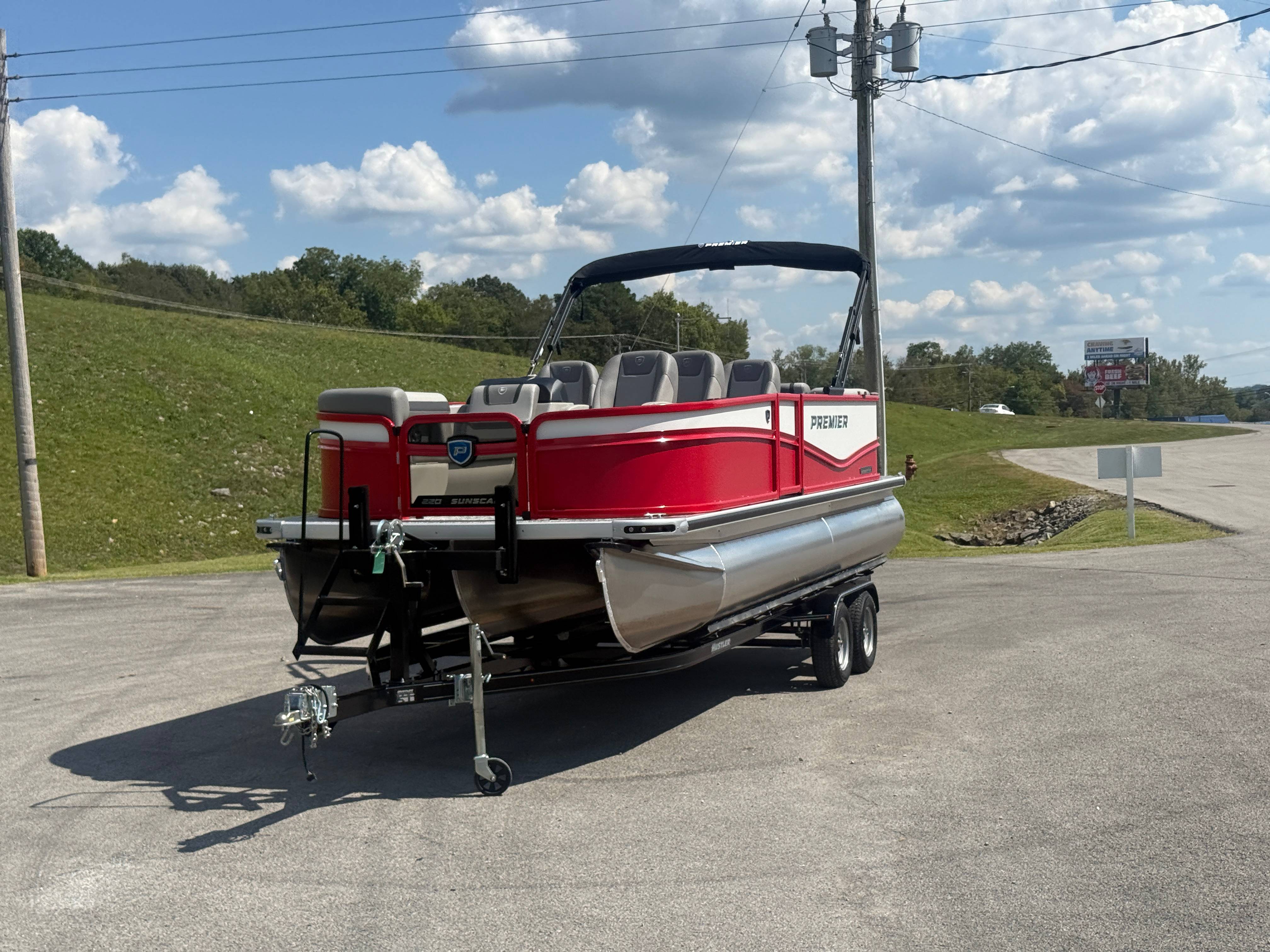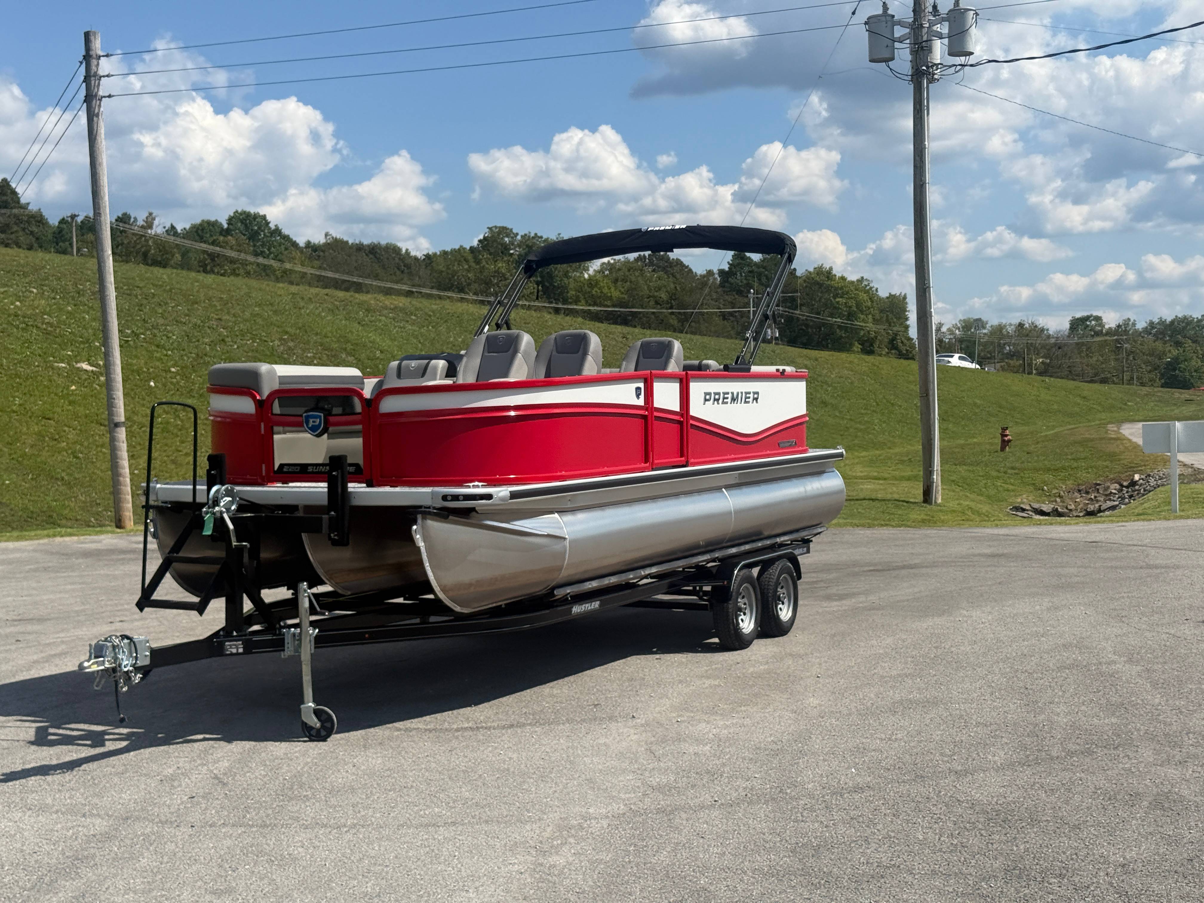 2026 Premier 220 Sunscape RF SELECTED OPTIONS Two Tone Panel- Crimson Red/White Pearl Railing Color- Red Standard Badging Vantage Tube Film- None Telescoping 4" Wide Step Ladder Gunnel Rubber Insert LED Dock Lights Fiberglass Helm Color- Mountain Gray Furniture Base Color- Mountain Gray Furniture Accent Color- Charcoal Coastline Flooring Color- Birchwood Filler Couch- None Fast-Charging USB-A/USB-C in Helm Lowrance Eagle 5" Display Wet Sounds MC-Round, RECON 6.5" Speakers (4) Dinette Layout (Port Bow, Includes Dual Chairs) 10' Power Arm Bimini Frame Color- Midnight Canvas Cover- Onyx PTX25 Package (w/ Lifting Strakes) Chassis 25" Transom Rig Mechanical Engine 200HP Max Rating Mercury Mechanical 115HP and Below Mercury 115EXLPT Command Thrust 4S Rotary Steering 33gal Fuel Capacity Transportation Protection- Cover Only