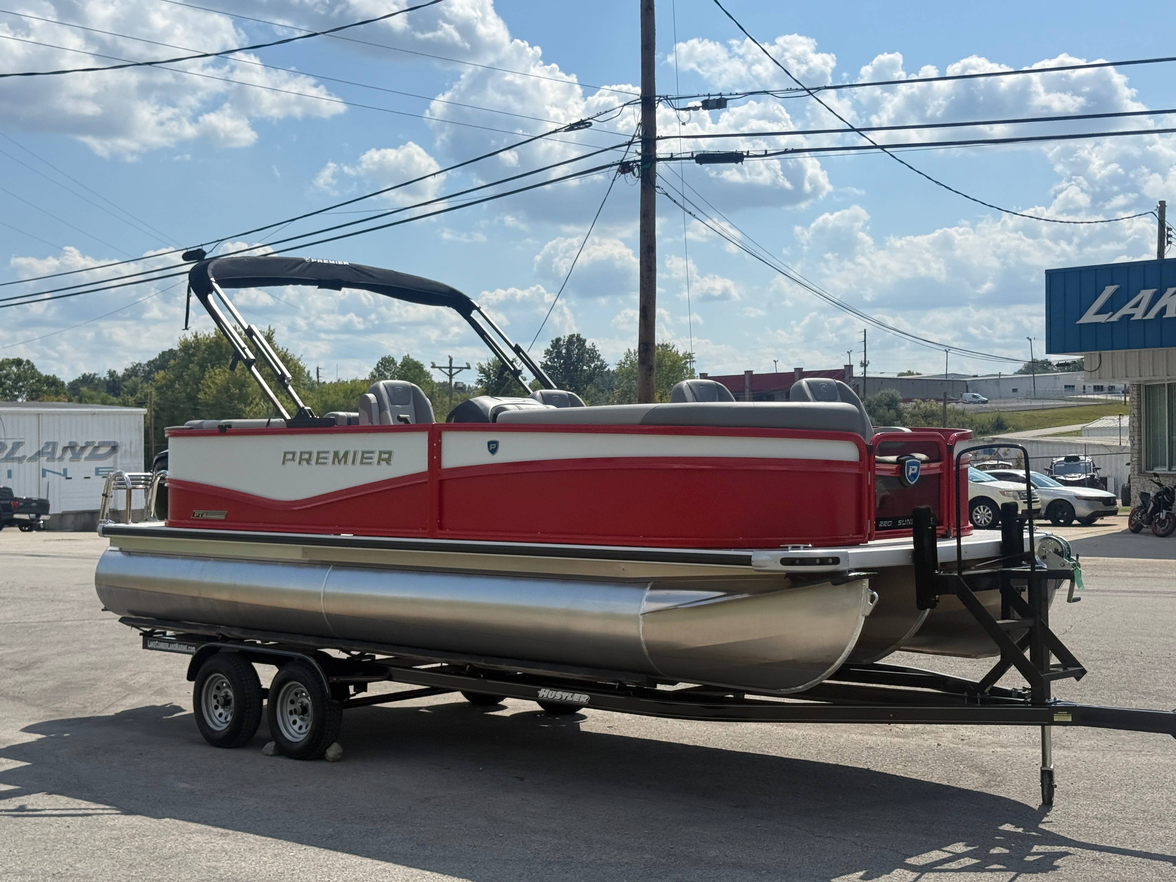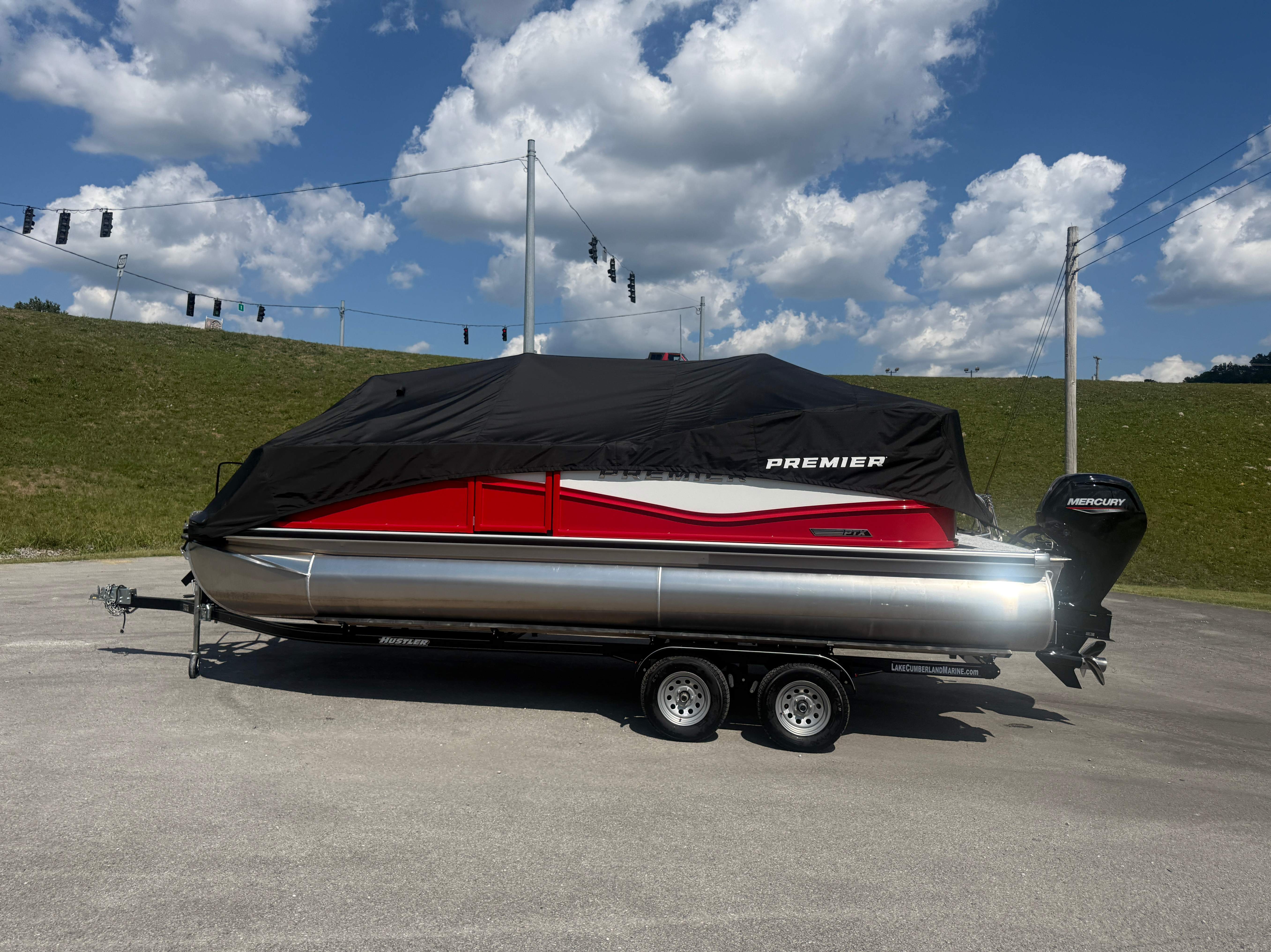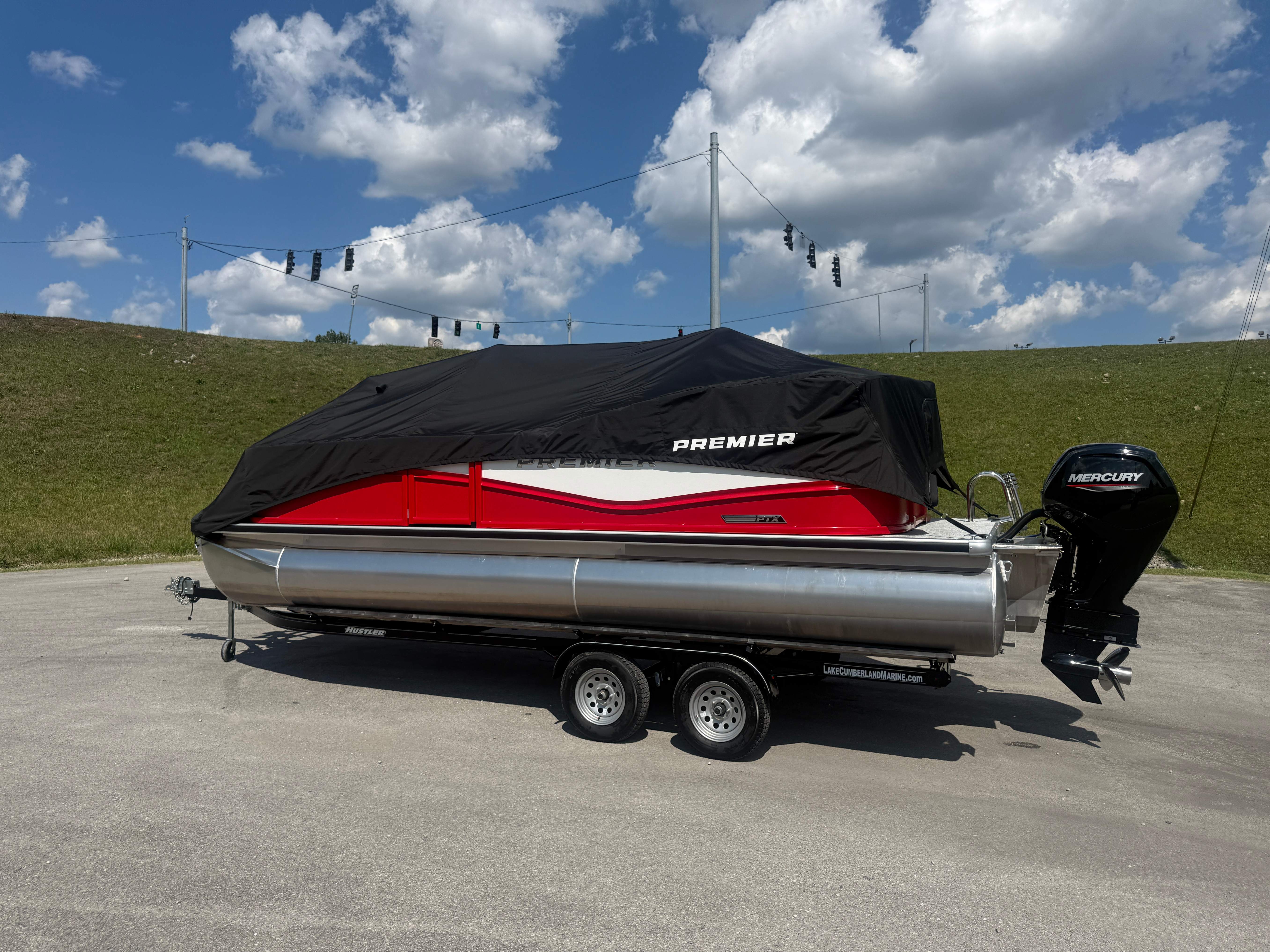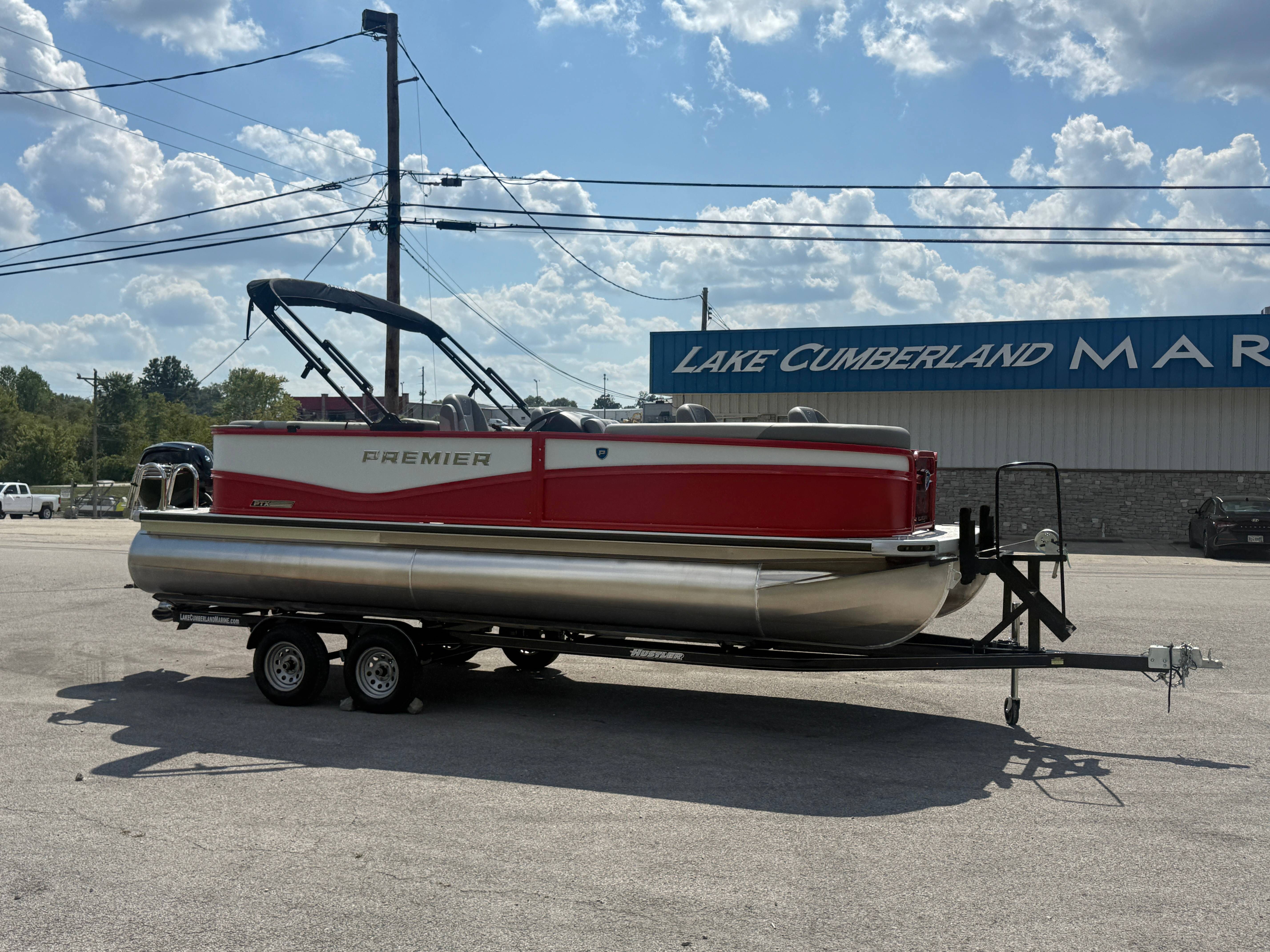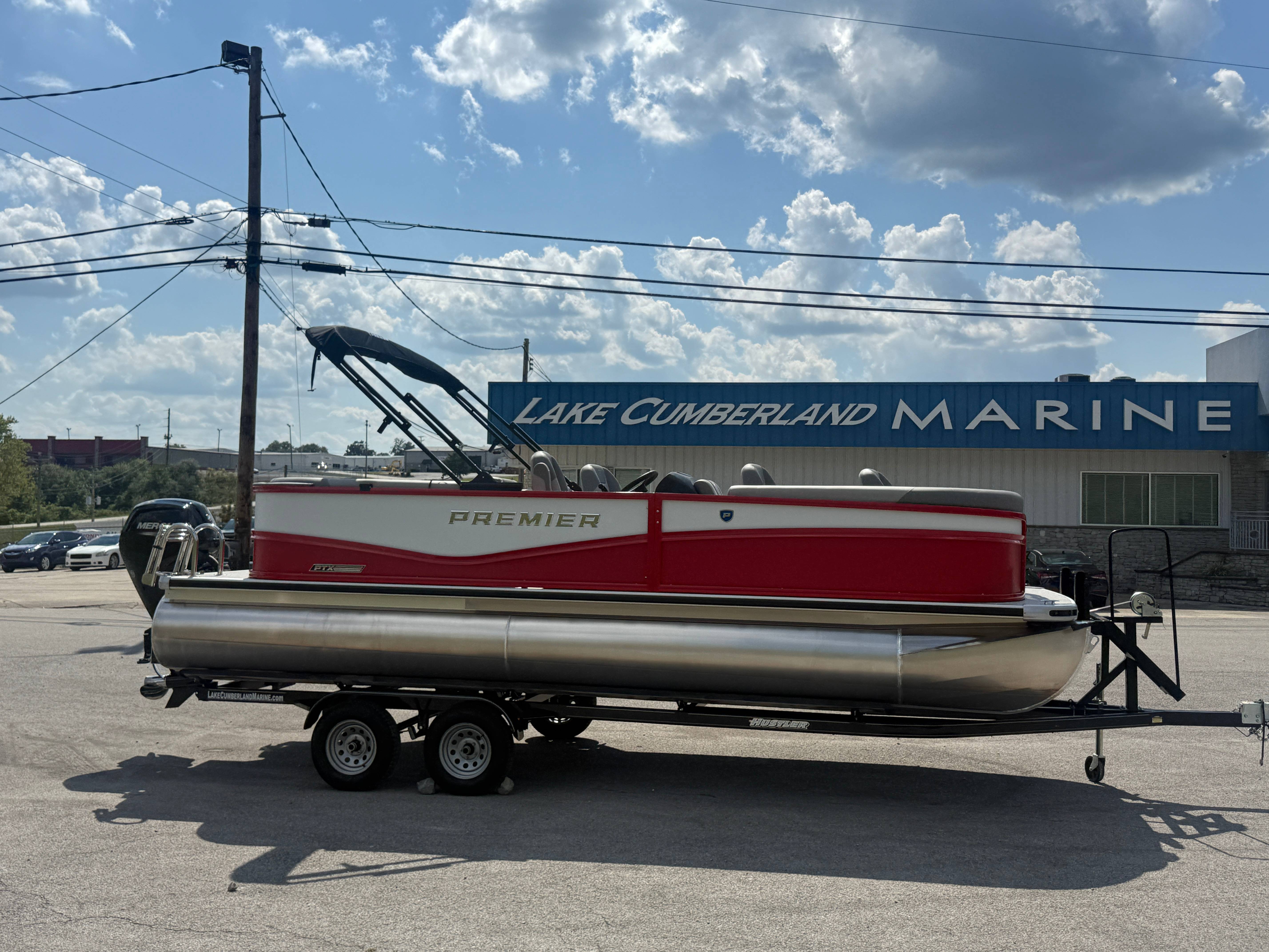 2026 Premier 220 Sunscape RF SELECTED OPTIONS Two Tone Panel- Crimson Red/White Pearl Railing Color- Red Standard Badging Vantage Tube Film- None Telescoping 4" Wide Step Ladder Gunnel Rubber Insert LED Dock Lights Fiberglass Helm Color- Mountain Gray Furniture Base Color- Mountain Gray Furniture Accent Color- Charcoal Coastline Flooring Color- Birchwood Filler Couch- None Fast-Charging USB-A/USB-C in Helm Lowrance Eagle 5" Display Wet Sounds MC-Round, RECON 6.5" Speakers (4) Dinette Layout (Port Bow, Includes Dual Chairs) 10' Power Arm Bimini Frame Color- Midnight Canvas Cover- Onyx PTX25 Package (w/ Lifting Strakes) Chassis 25" Transom Rig Mechanical Engine 200HP Max Rating Mercury Mechanical 115HP and Below Mercury 115EXLPT Command Thrust 4S Rotary Steering 33gal Fuel Capacity Transportation Protection- Cover Only