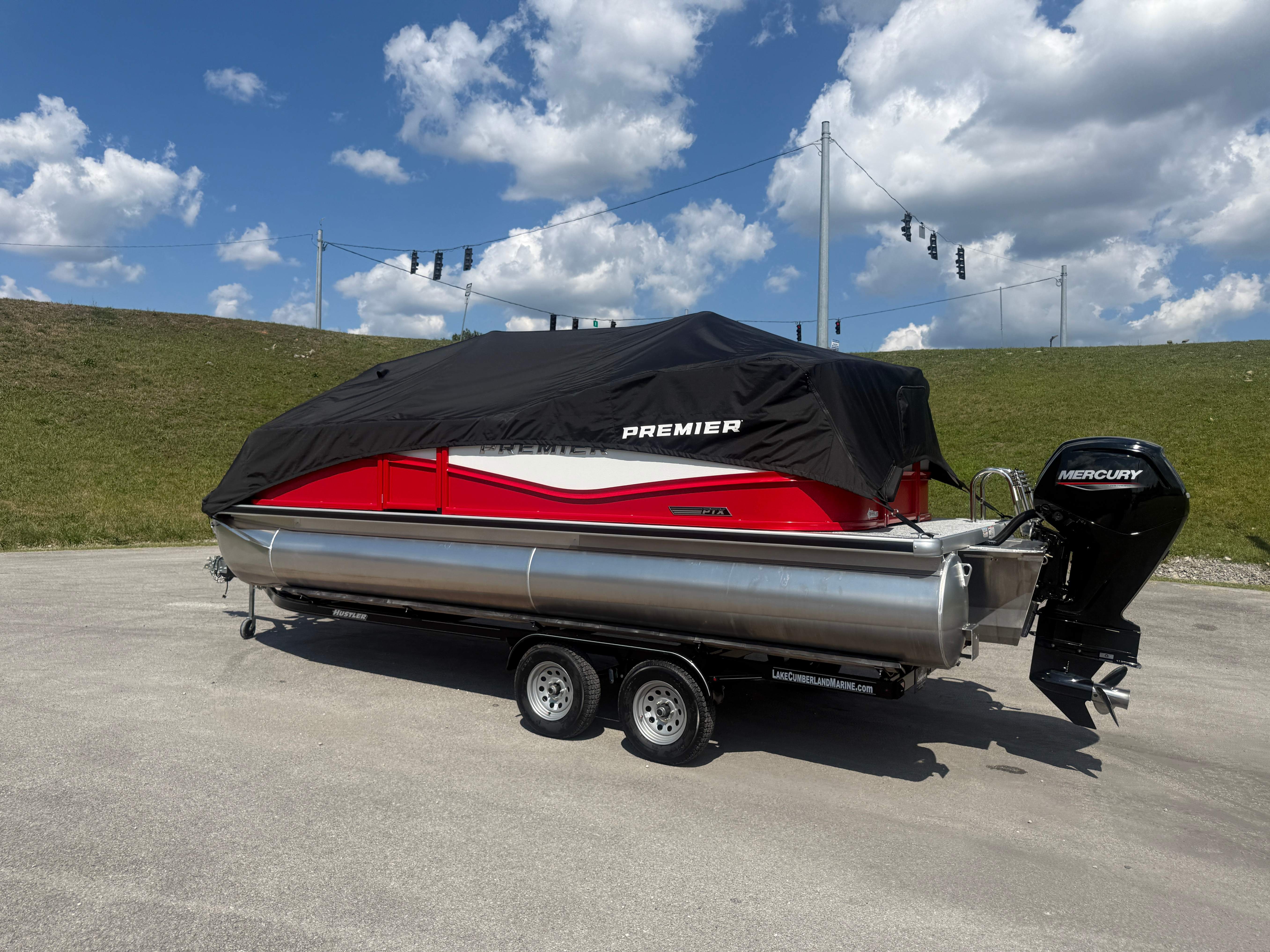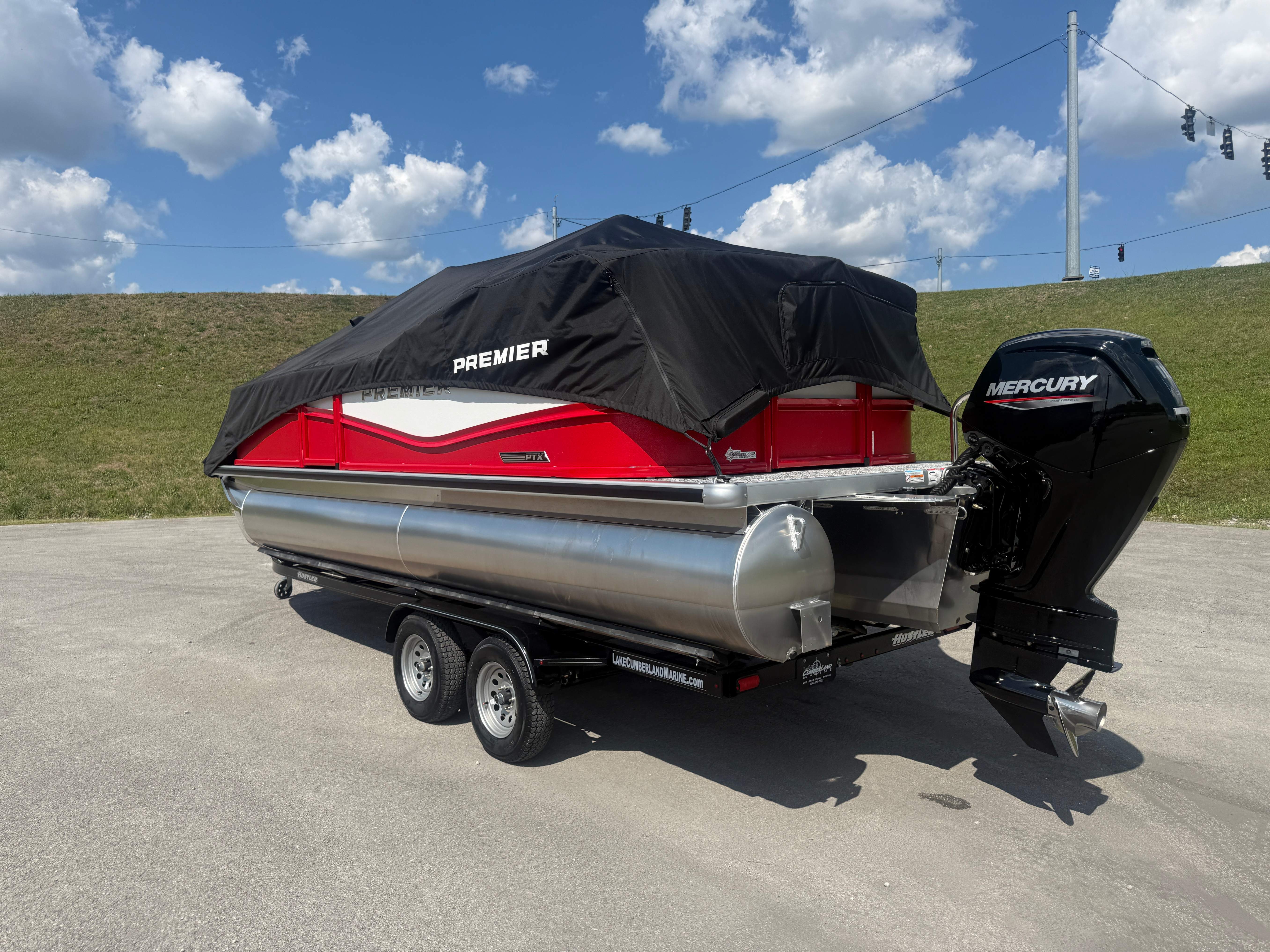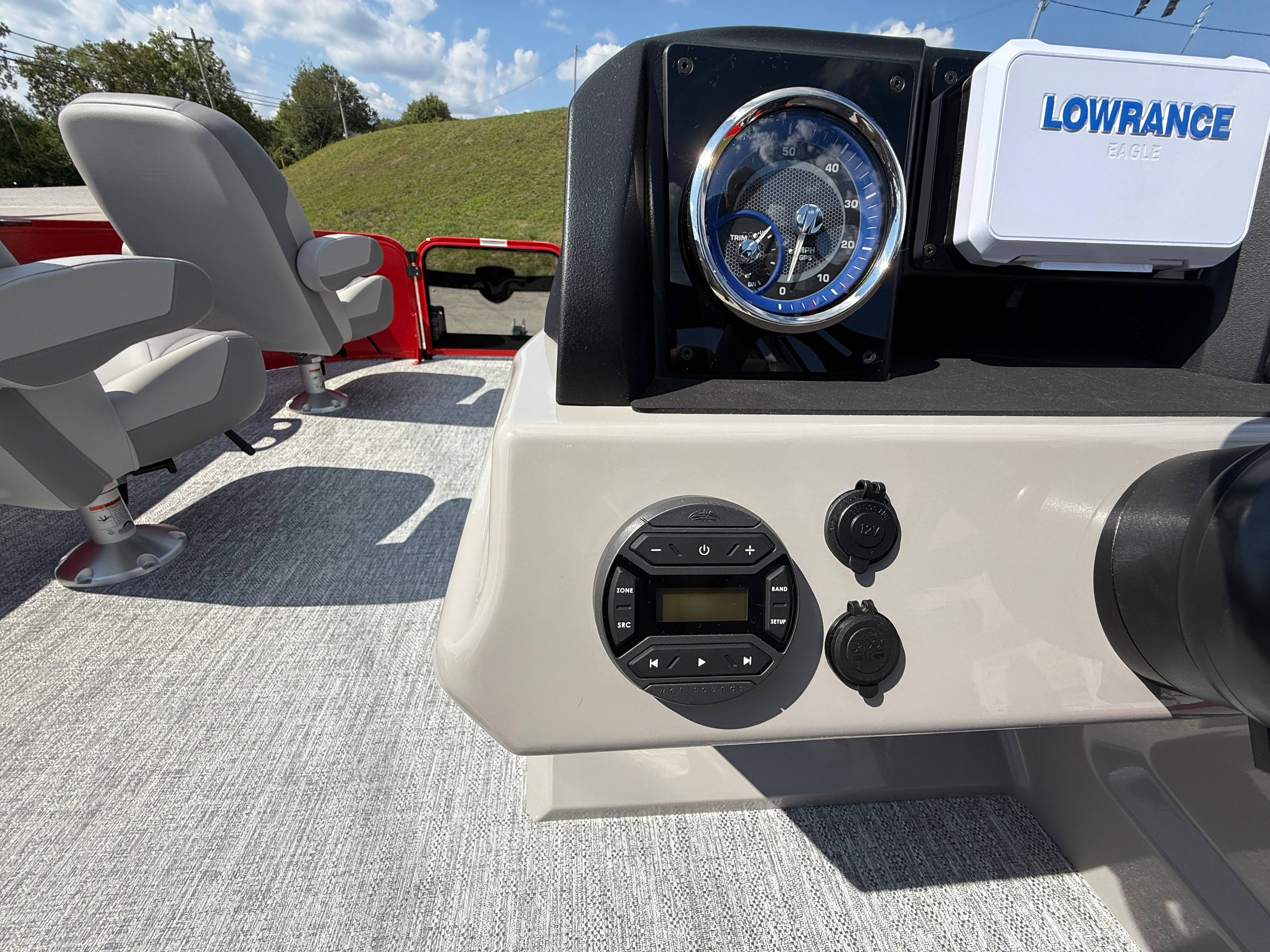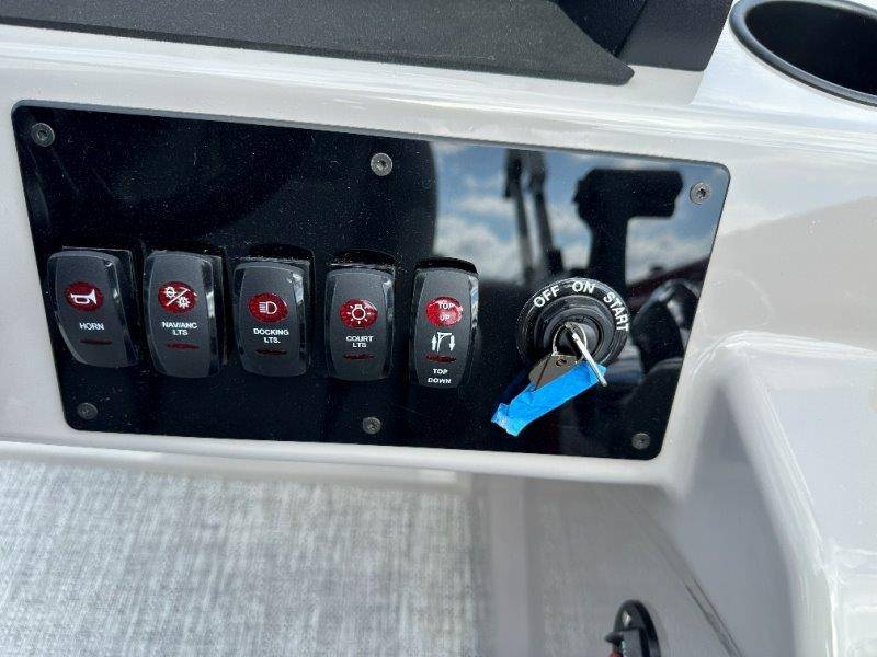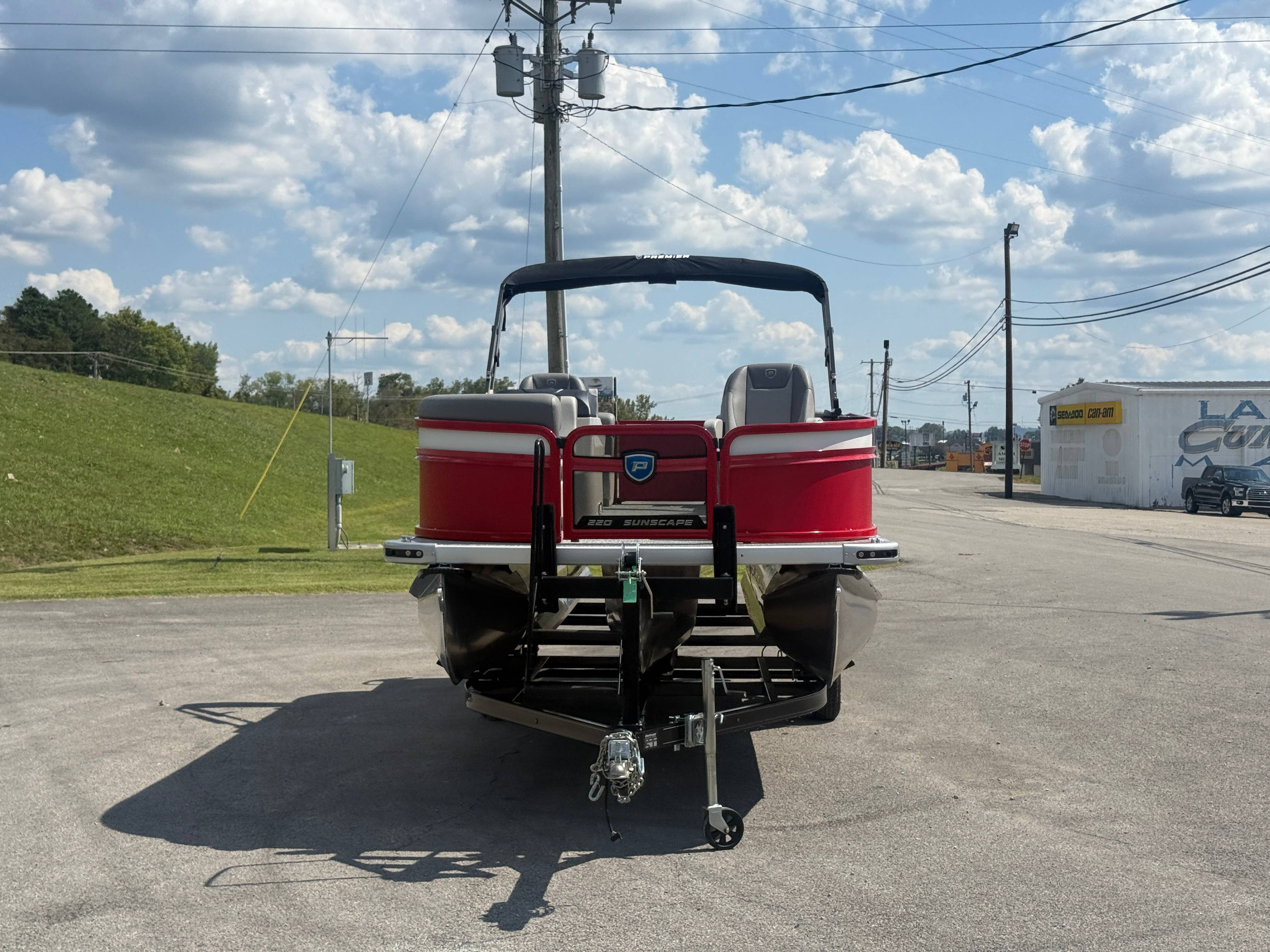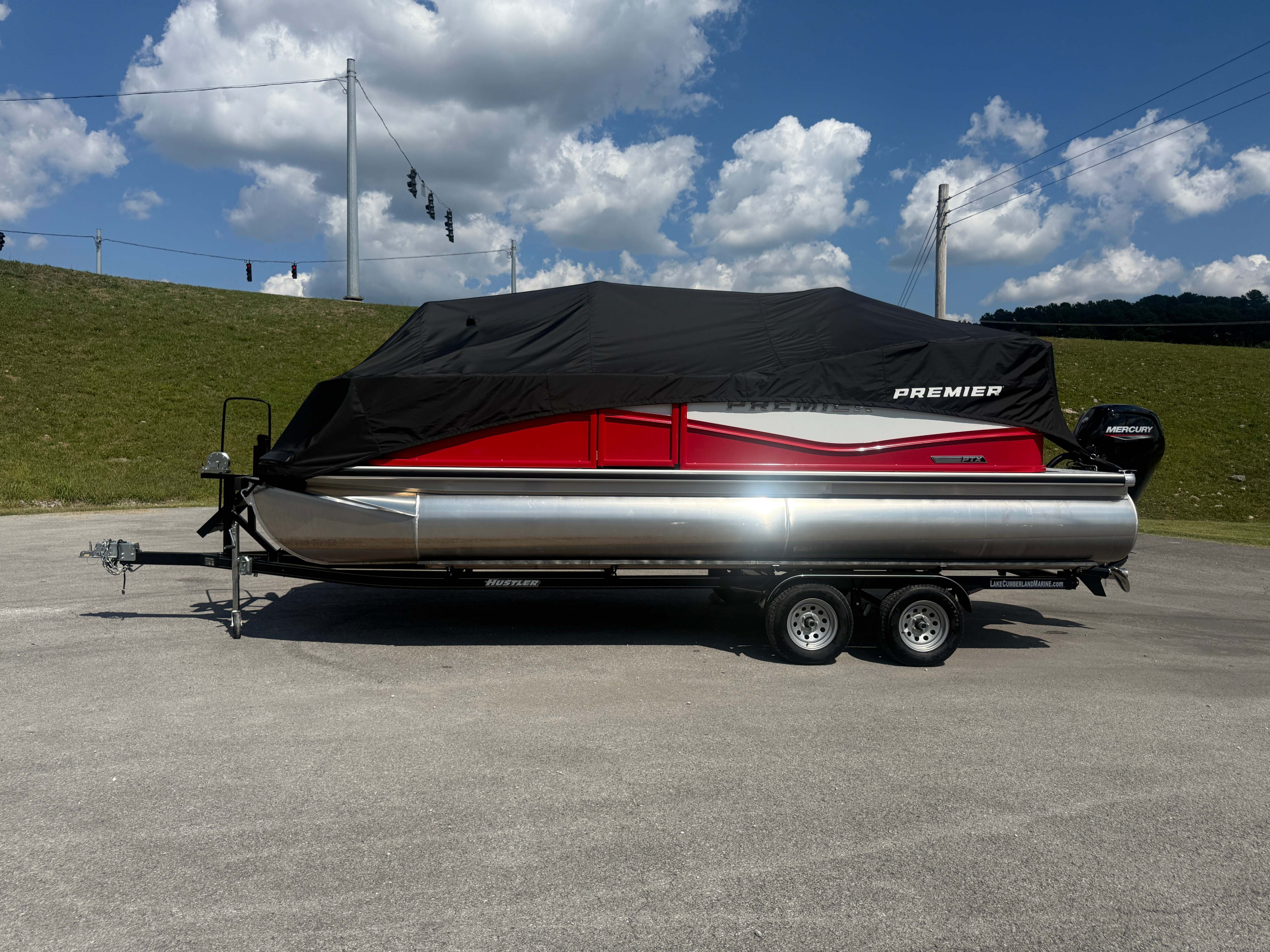 2026 Premier 220 Sunscape RF SELECTED OPTIONS Two Tone Panel- Crimson Red/White Pearl Railing Color- Red Standard Badging Vantage Tube Film- None Telescoping 4" Wide Step Ladder Gunnel Rubber Insert LED Dock Lights Fiberglass Helm Color- Mountain Gray Furniture Base Color- Mountain Gray Furniture Accent Color- Charcoal Coastline Flooring Color- Birchwood Filler Couch- None Fast-Charging USB-A/USB-C in Helm Lowrance Eagle 5" Display Wet Sounds MC-Round, RECON 6.5" Speakers (4) Dinette Layout (Port Bow, Includes Dual Chairs) 10' Power Arm Bimini Frame Color- Midnight Canvas Cover- Onyx PTX25 Package (w/ Lifting Strakes) Chassis 25" Transom Rig Mechanical Engine 200HP Max Rating Mercury Mechanical 115HP and Below Mercury 115EXLPT Command Thrust 4S Rotary Steering 33gal Fuel Capacity Transportation Protection- Cover Only