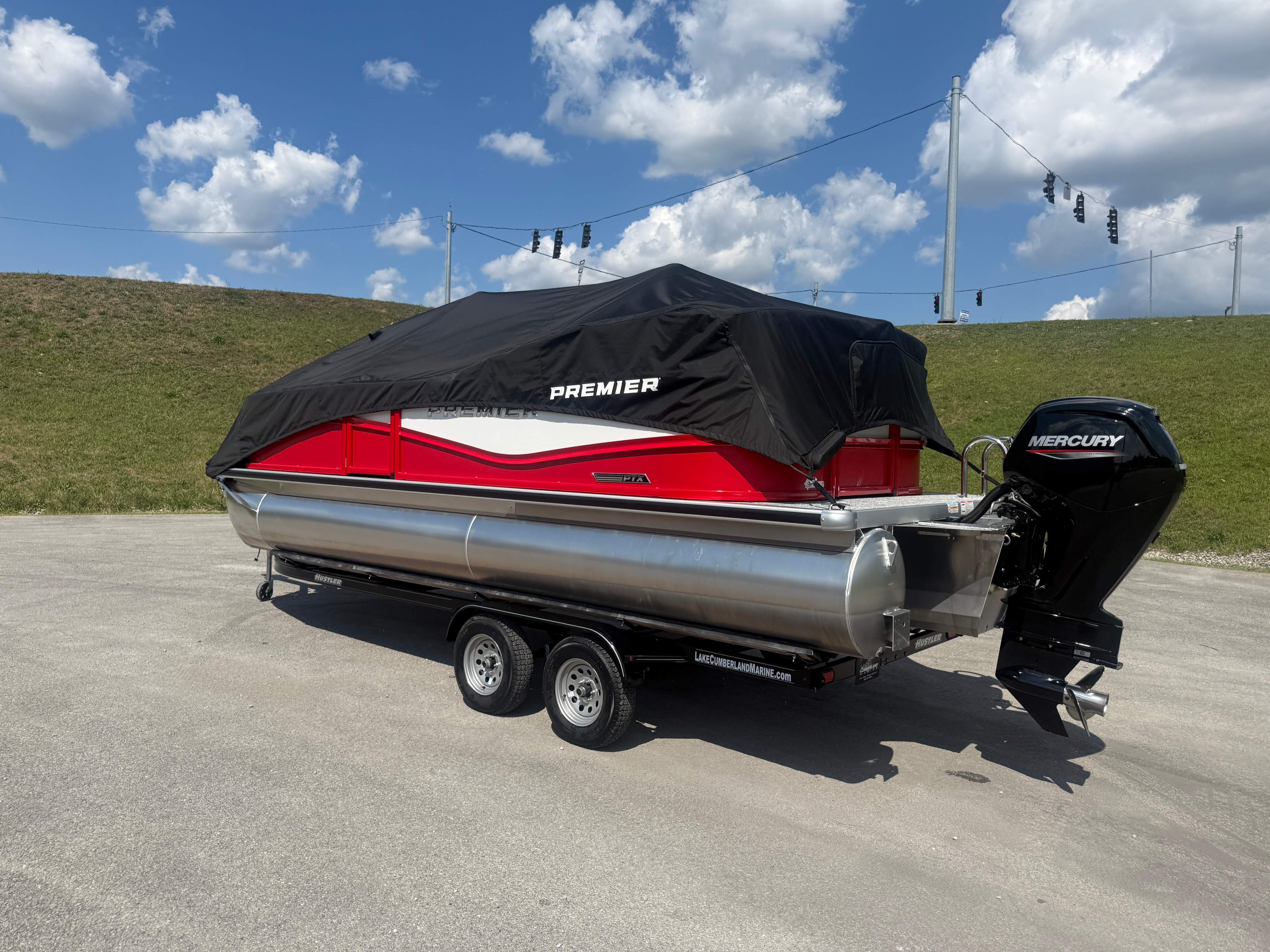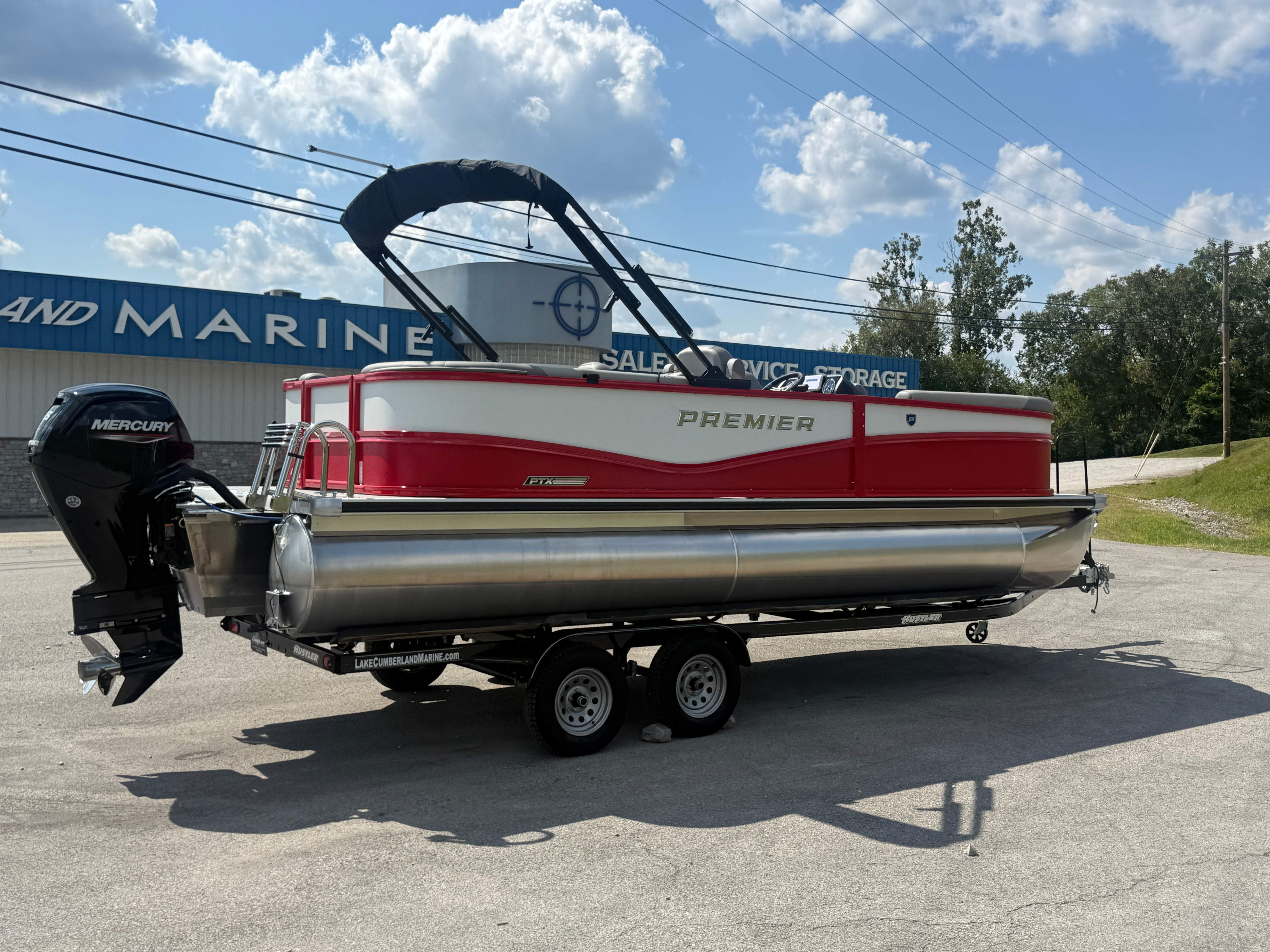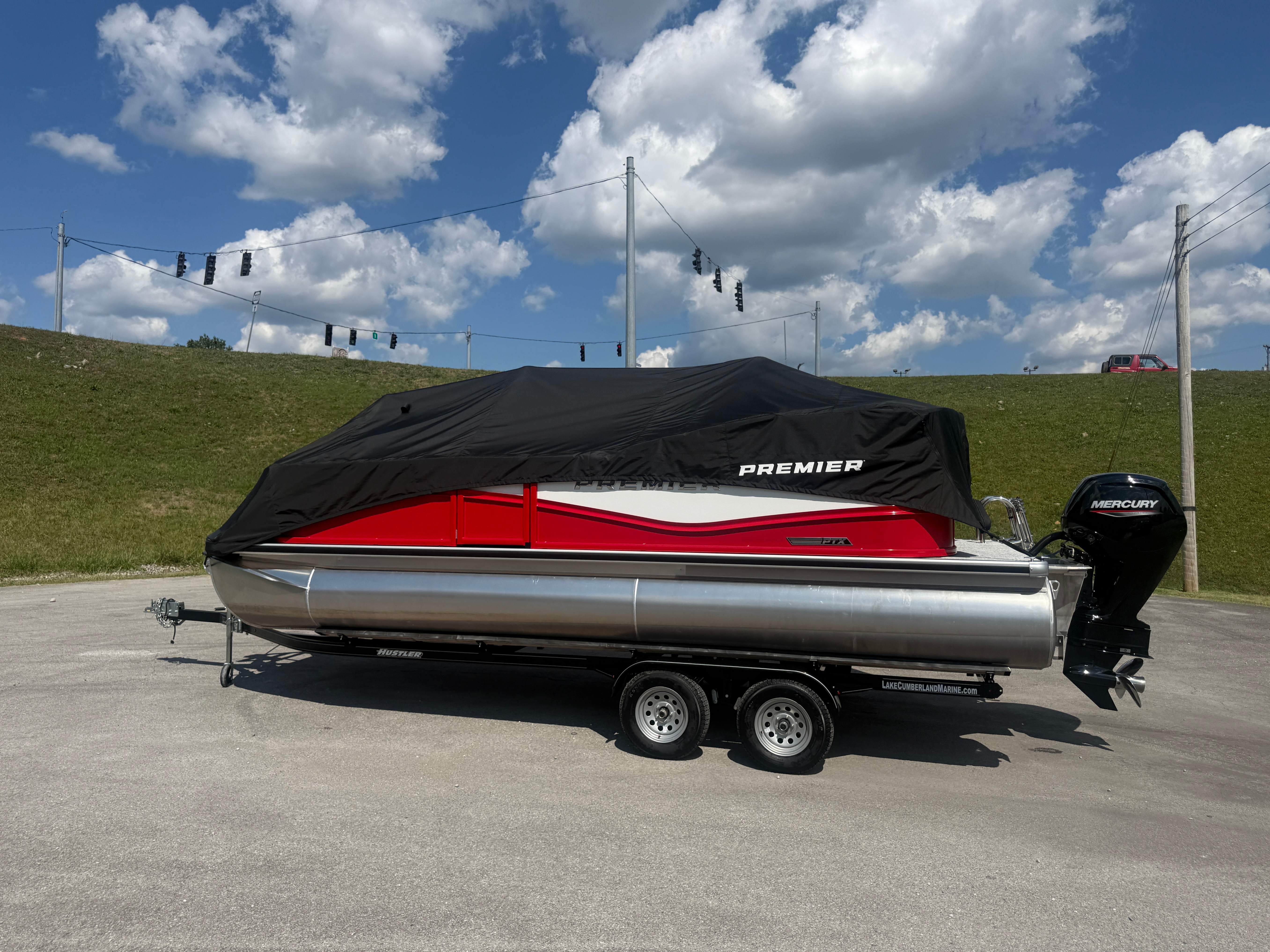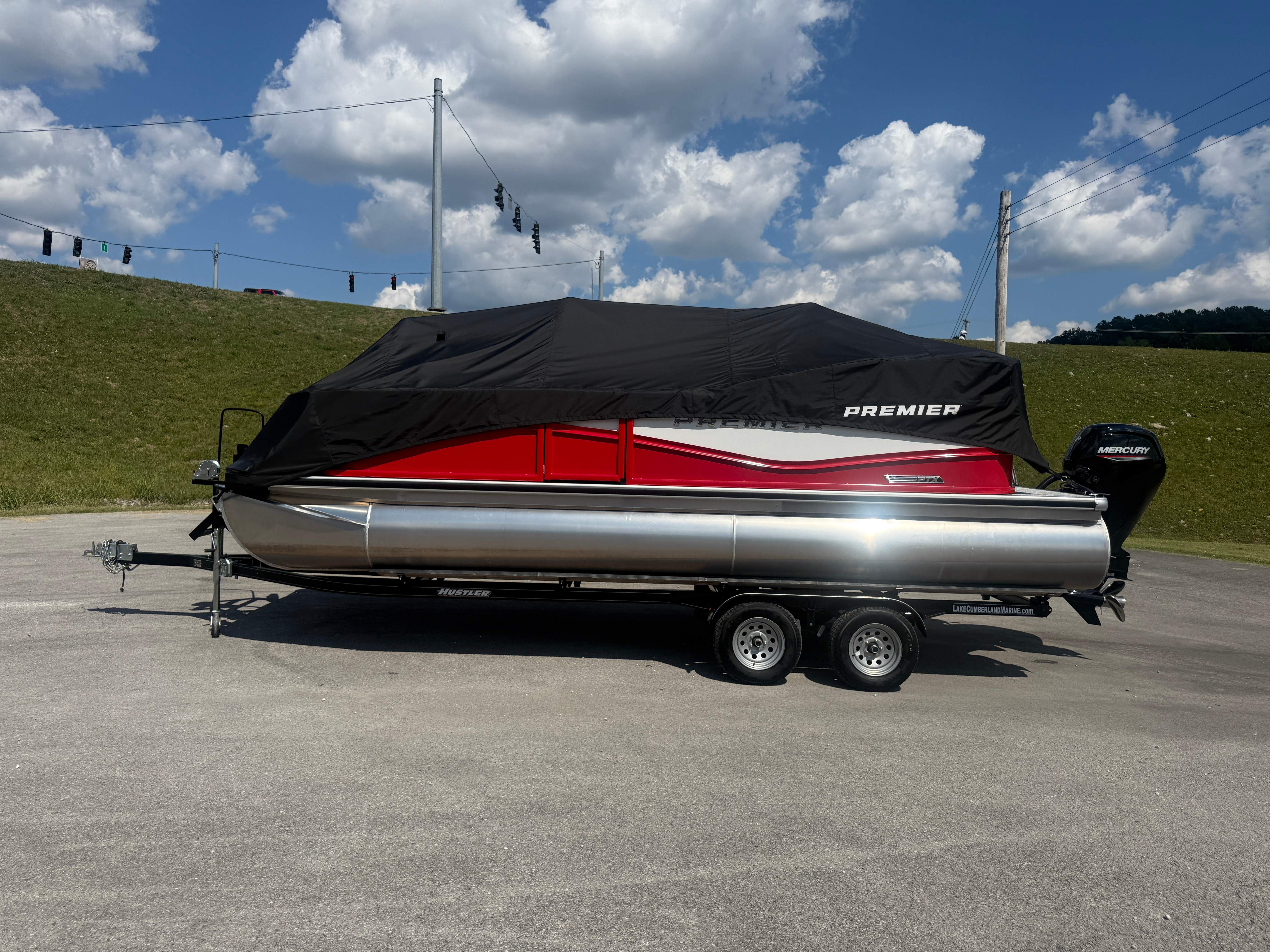 2026 Premier 220 Sunscape RF SELECTED OPTIONS Two Tone Panel- Crimson Red/White Pearl Railing Color- Red Standard Badging Vantage Tube Film- None Telescoping 4" Wide Step Ladder Gunnel Rubber Insert LED Dock Lights Fiberglass Helm Color- Mountain Gray Furniture Base Color- Mountain Gray Furniture Accent Color- Charcoal Coastline Flooring Color- Birchwood Filler Couch- None Fast-Charging USB-A/USB-C in Helm Lowrance Eagle 5" Display Wet Sounds MC-Round, RECON 6.5" Speakers (4) Dinette Layout (Port Bow, Includes Dual Chairs) 10' Power Arm Bimini Frame Color- Midnight Canvas Cover- Onyx PTX25 Package (w/ Lifting Strakes) Chassis 25" Transom Rig Mechanical Engine 200HP Max Rating Mercury Mechanical 115HP and Below Mercury 115EXLPT Command Thrust 4S Rotary Steering 33gal Fuel Capacity Transportation Protection- Cover Only