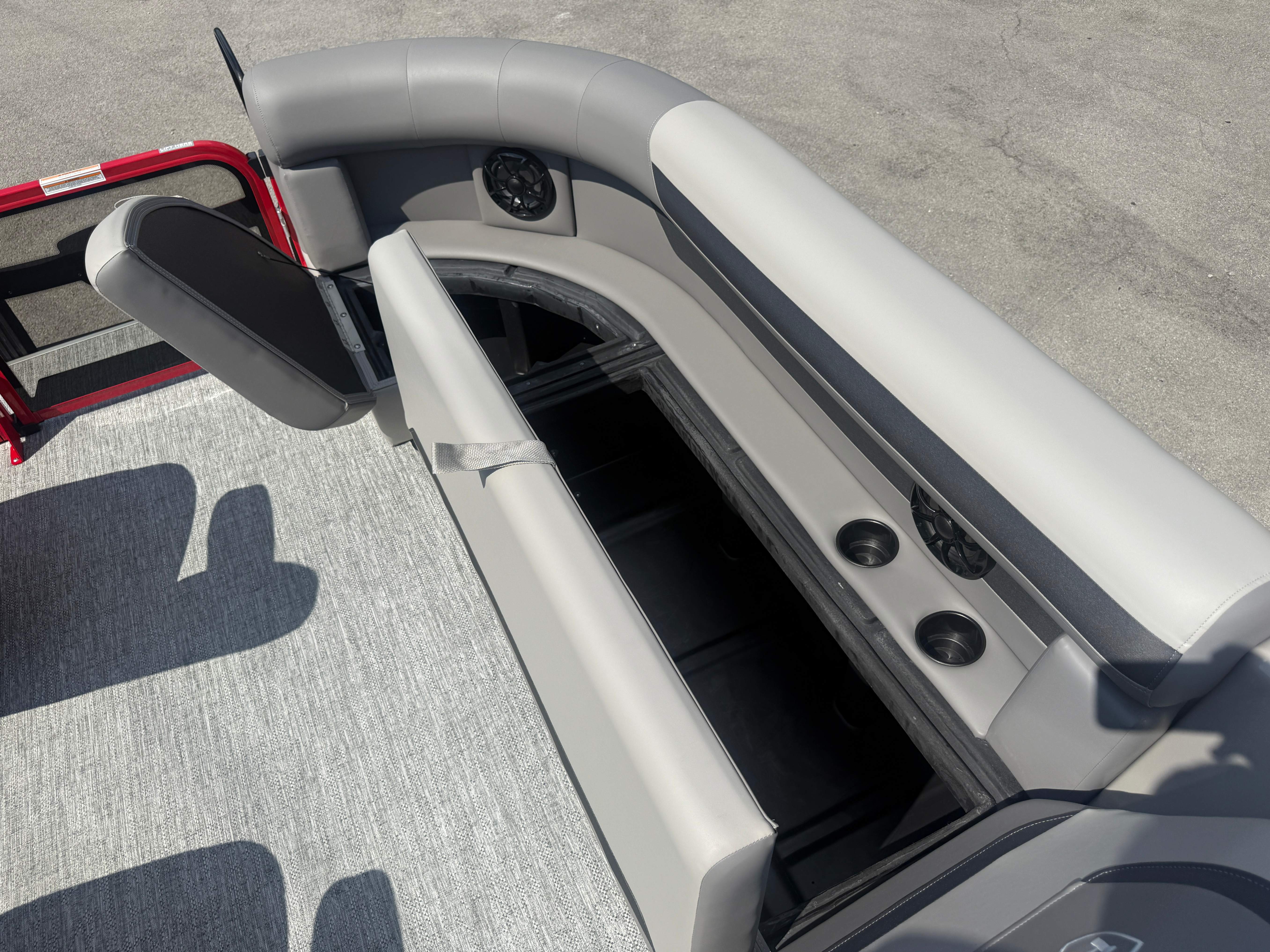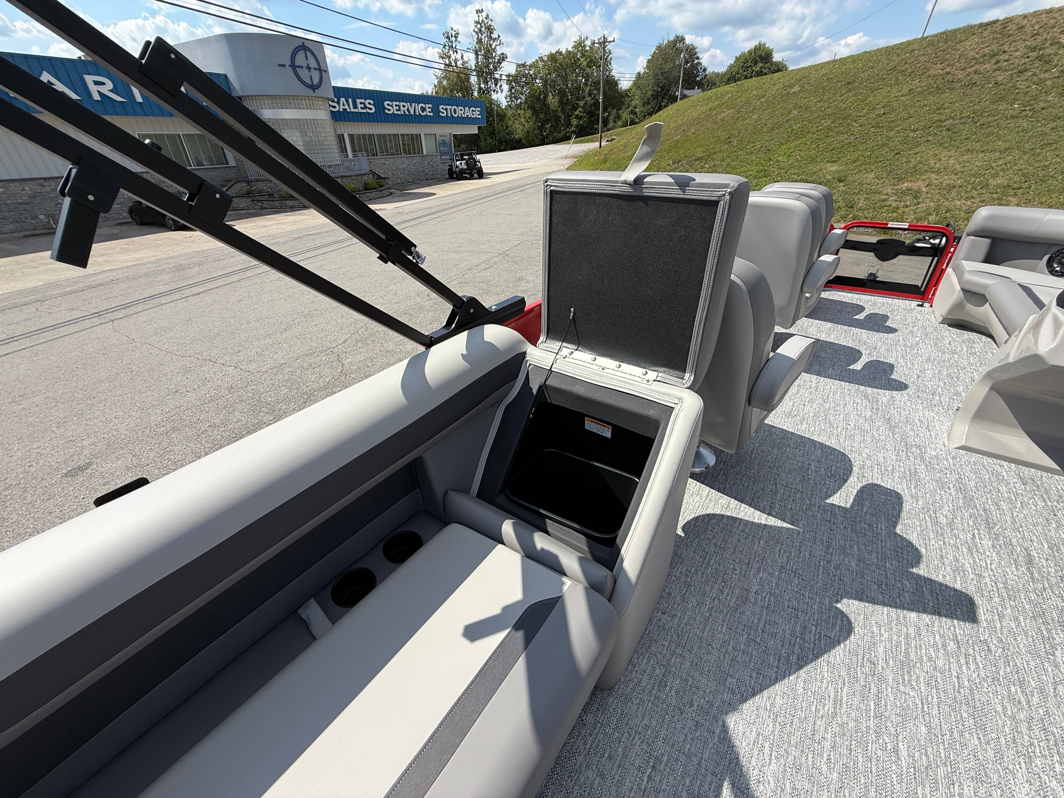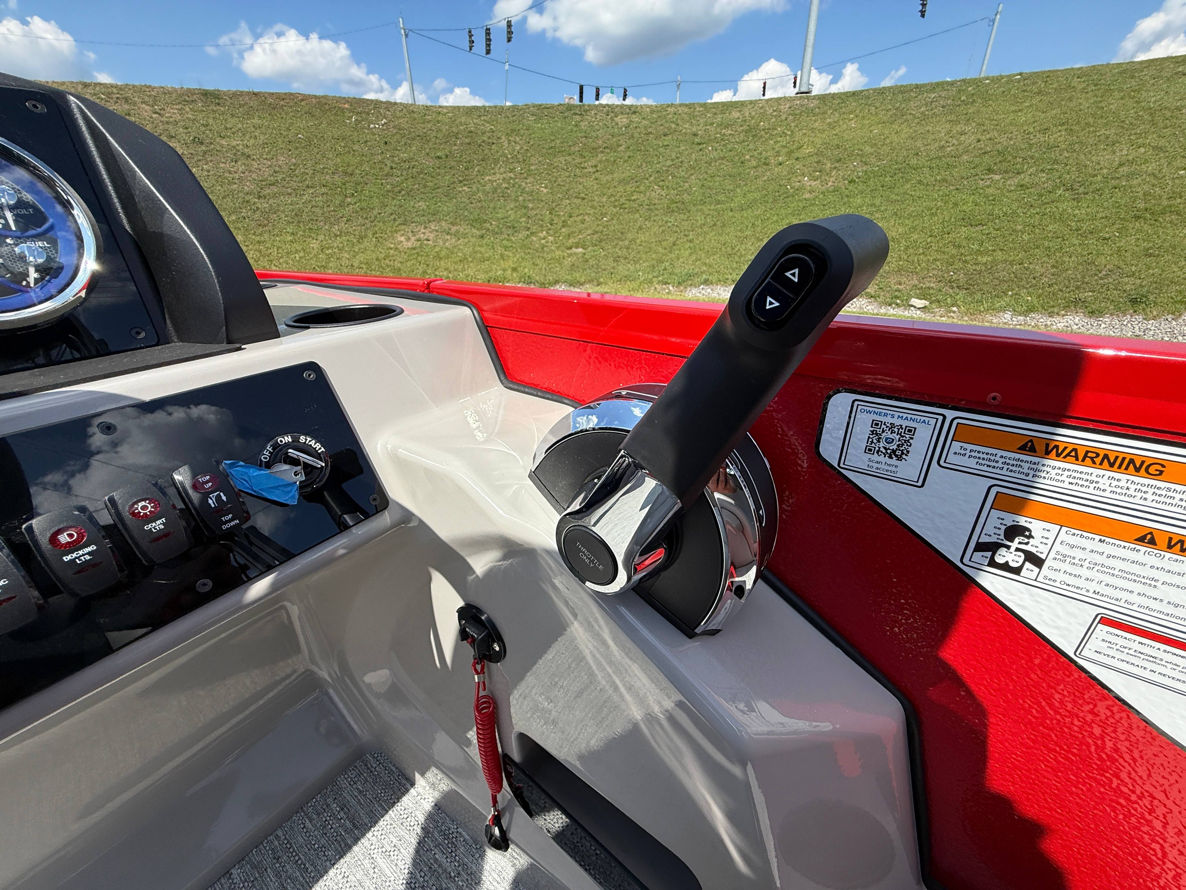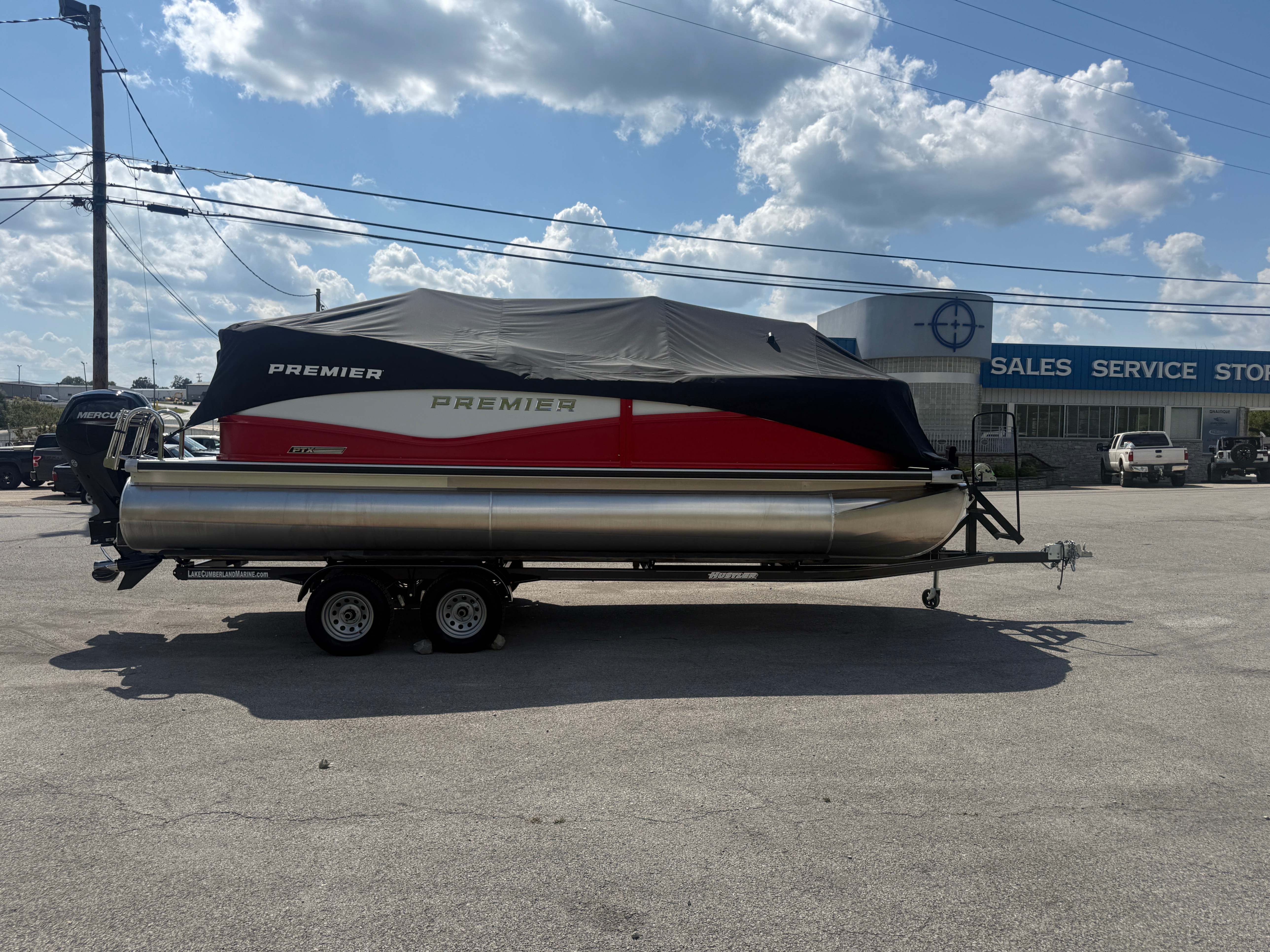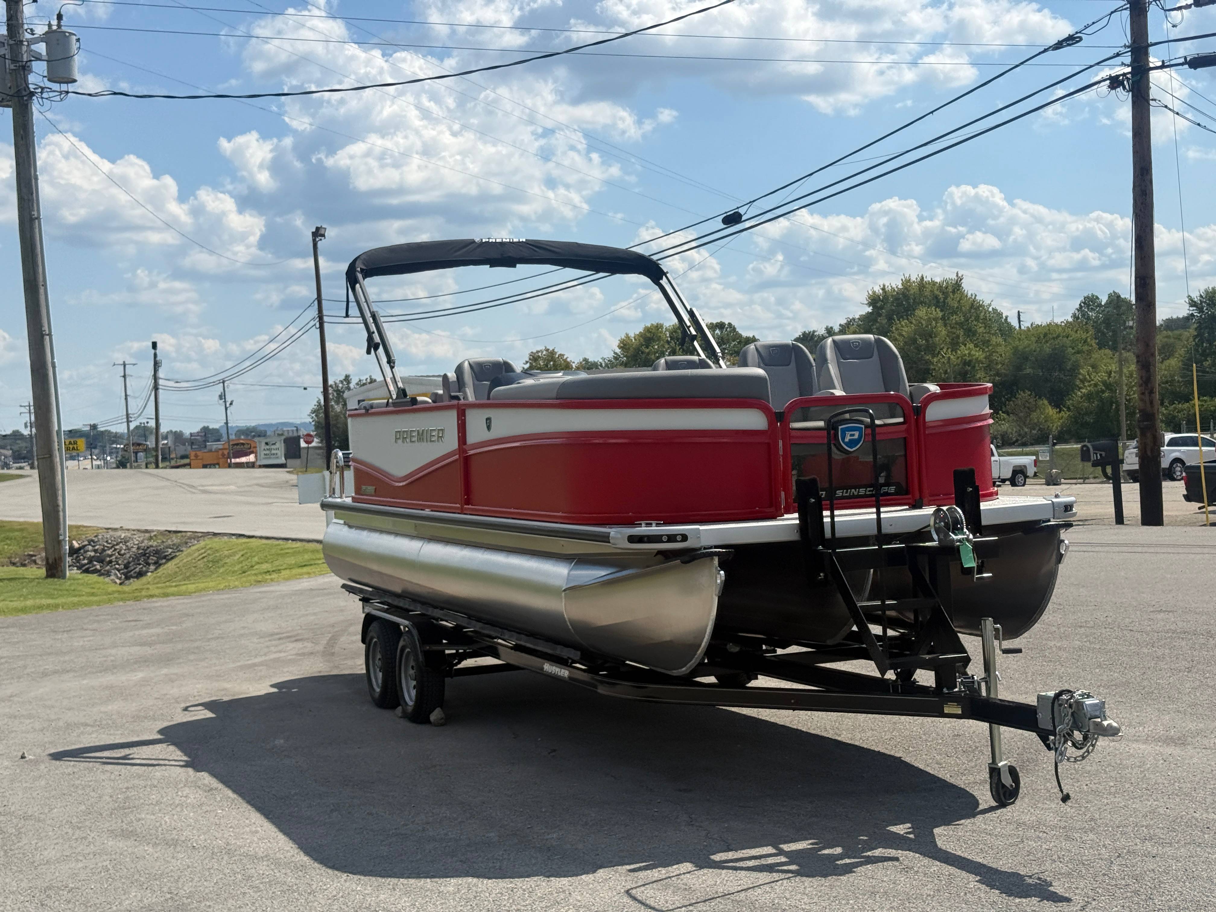 2026 Premier 220 Sunscape RF SELECTED OPTIONS Two Tone Panel- Crimson Red/White Pearl Railing Color- Red Standard Badging Vantage Tube Film- None Telescoping 4" Wide Step Ladder Gunnel Rubber Insert LED Dock Lights Fiberglass Helm Color- Mountain Gray Furniture Base Color- Mountain Gray Furniture Accent Color- Charcoal Coastline Flooring Color- Birchwood Filler Couch- None Fast-Charging USB-A/USB-C in Helm Lowrance Eagle 5" Display Wet Sounds MC-Round, RECON 6.5" Speakers (4) Dinette Layout (Port Bow, Includes Dual Chairs) 10' Power Arm Bimini Frame Color- Midnight Canvas Cover- Onyx PTX25 Package (w/ Lifting Strakes) Chassis 25" Transom Rig Mechanical Engine 200HP Max Rating Mercury Mechanical 115HP and Below Mercury 115EXLPT Command Thrust 4S Rotary Steering 33gal Fuel Capacity Transportation Protection- Cover Only