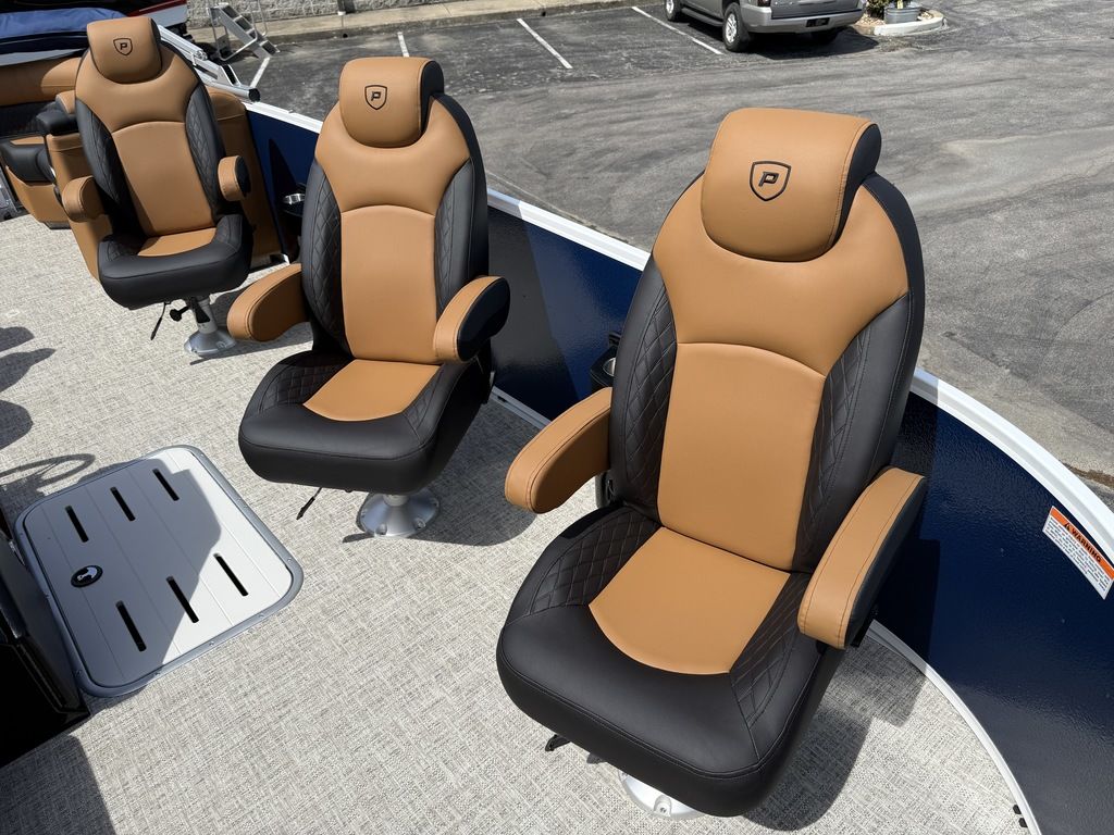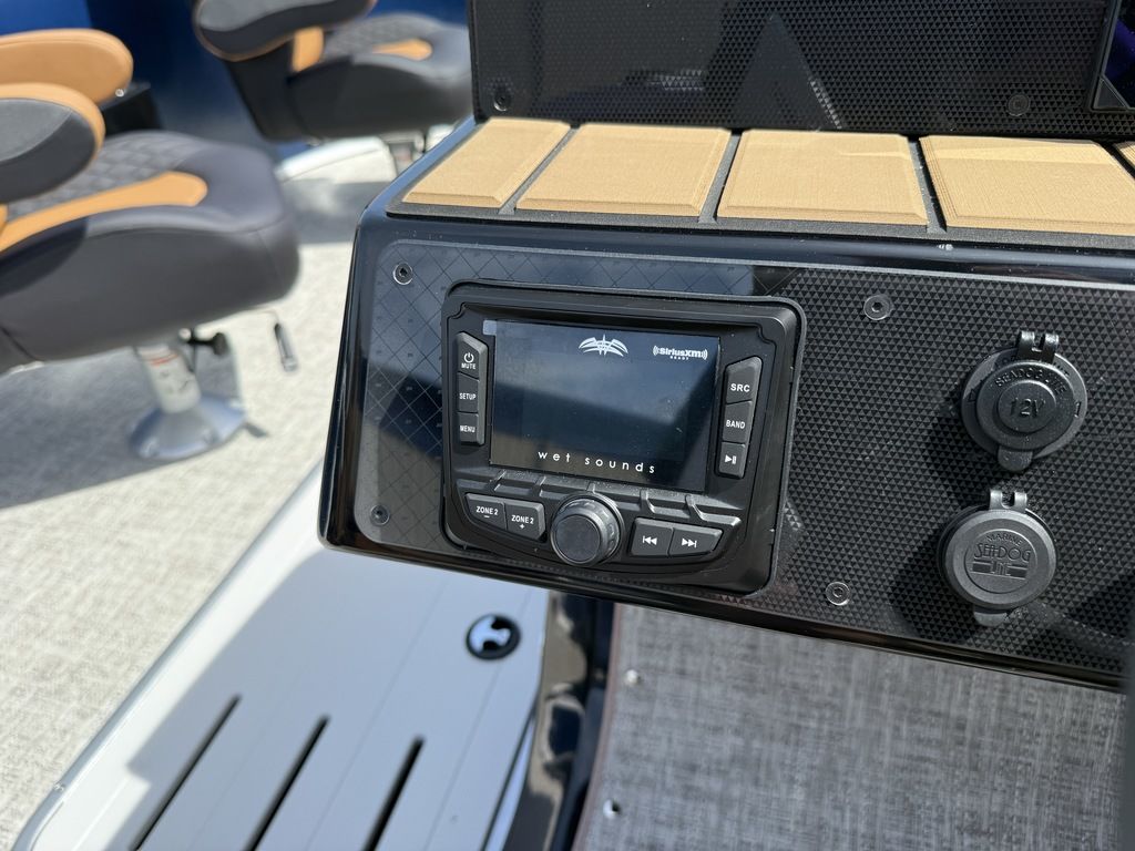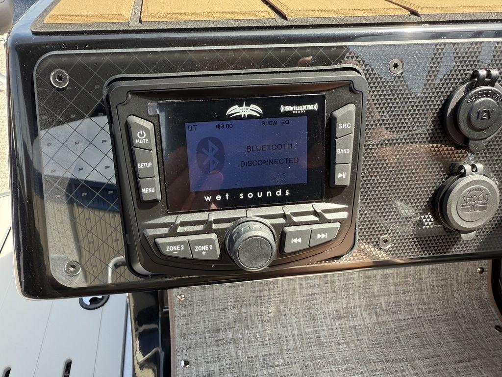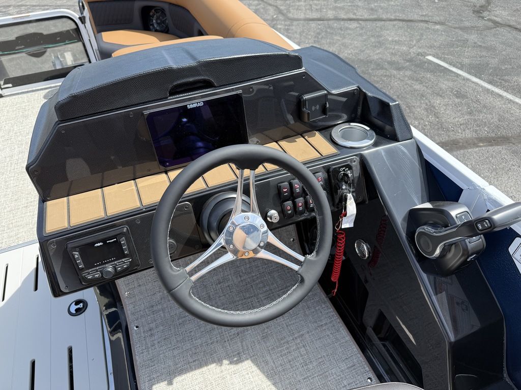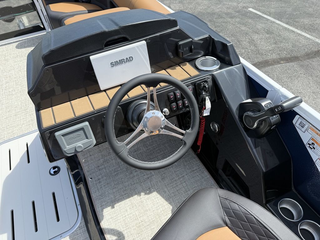 9" Simrad GPS Helm Screen, Two Tone Panel Color, 10' power Bimini Top, Eclipse Black Out Package, Quilted Furniture Accents, Slate Teak Flooring, 3M Vantage Tube Film, Hammered Rails, Hydraulic Driver Seat Pedestal, Full Mooring Cover, LED Ski-Tow Bar, Upgraded Fiberglass Helm Color (Black), Clear View Front Gate, Dual Battery Switch, LED Docking Lights, Cupholders (23), In-Floor Ski Locker, Refrigerated Cup Holder (Helm), Hydraulic Power Assist Steering, 90 Gallon Fuel Tank and PTX 32 Triple Tube Package