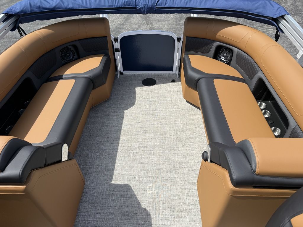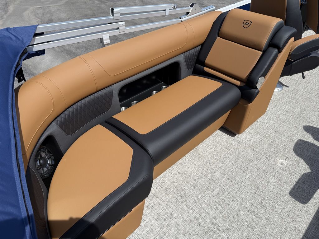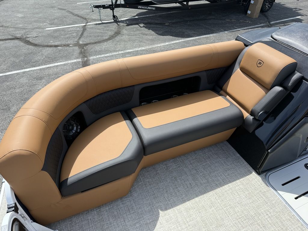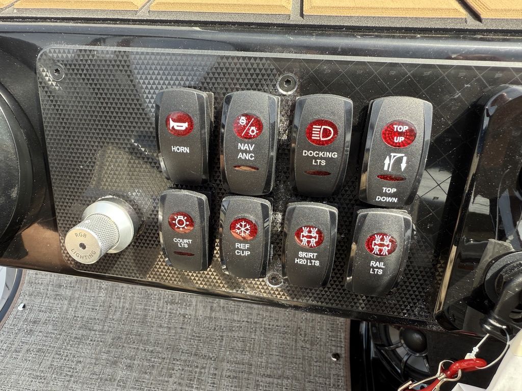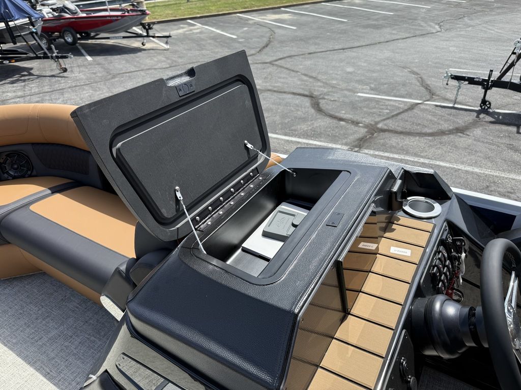 9" Simrad GPS Helm Screen, Two Tone Panel Color, 10' power Bimini Top, Eclipse Black Out Package, Quilted Furniture Accents, Slate Teak Flooring, 3M Vantage Tube Film, Hammered Rails, Hydraulic Driver Seat Pedestal, Full Mooring Cover, LED Ski-Tow Bar, Upgraded Fiberglass Helm Color (Black), Clear View Front Gate, Dual Battery Switch, LED Docking Lights, Cupholders (23), In-Floor Ski Locker, Refrigerated Cup Holder (Helm), Hydraulic Power Assist Steering, 90 Gallon Fuel Tank and PTX 32 Triple Tube Package