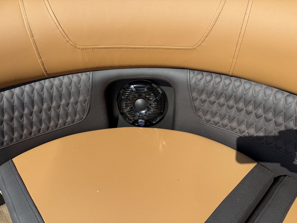 Loaded with dual Simrad NSX9 displays for advanced navigation. Includes wireless charging throughout the lounges and a wireless phone mount at the helm. Outfitted with a premium Wet Sounds audio system featuring multiple speakers, subwoofer, and digital amplifier. Also includes an onboard battery charging system.