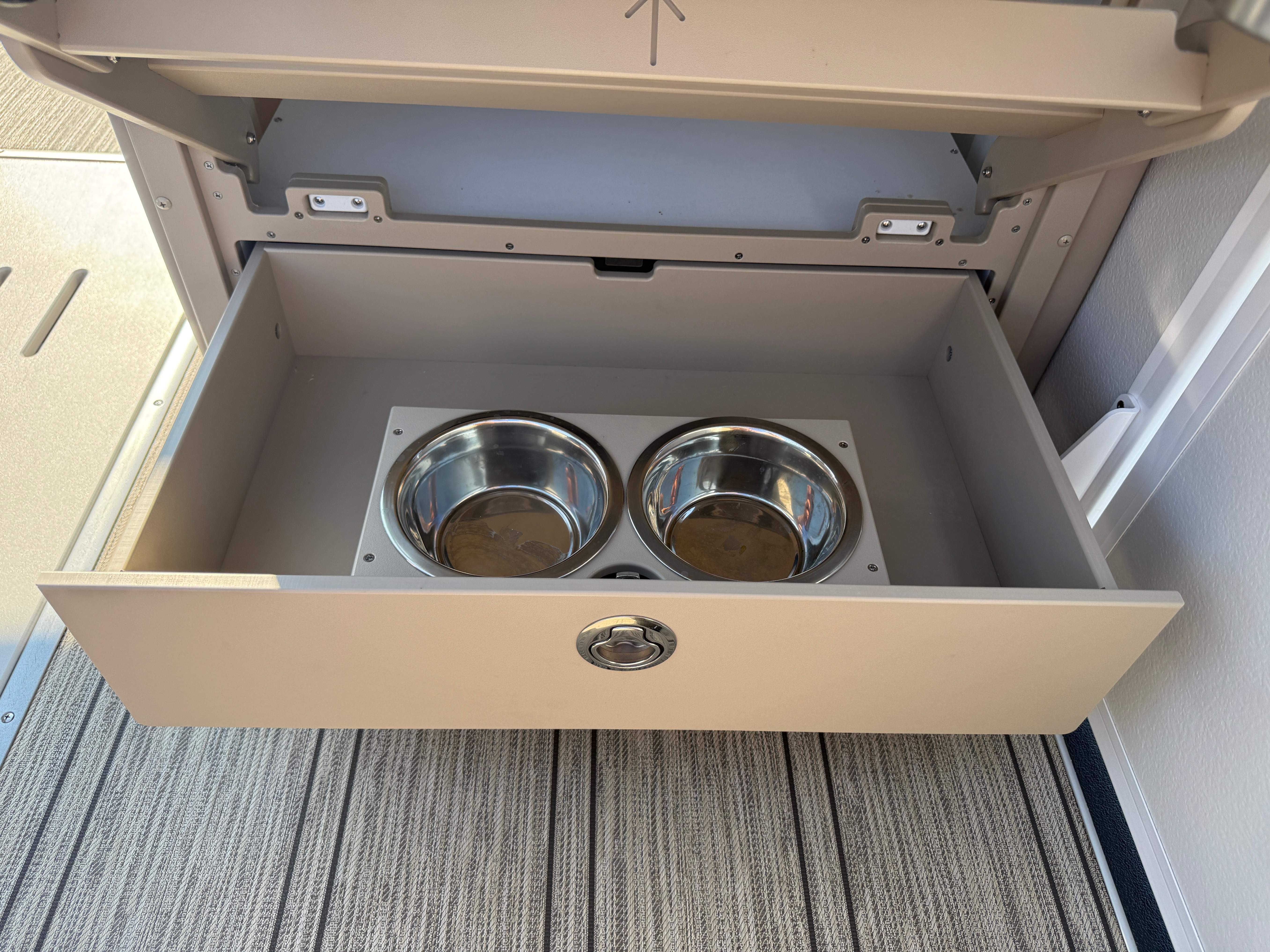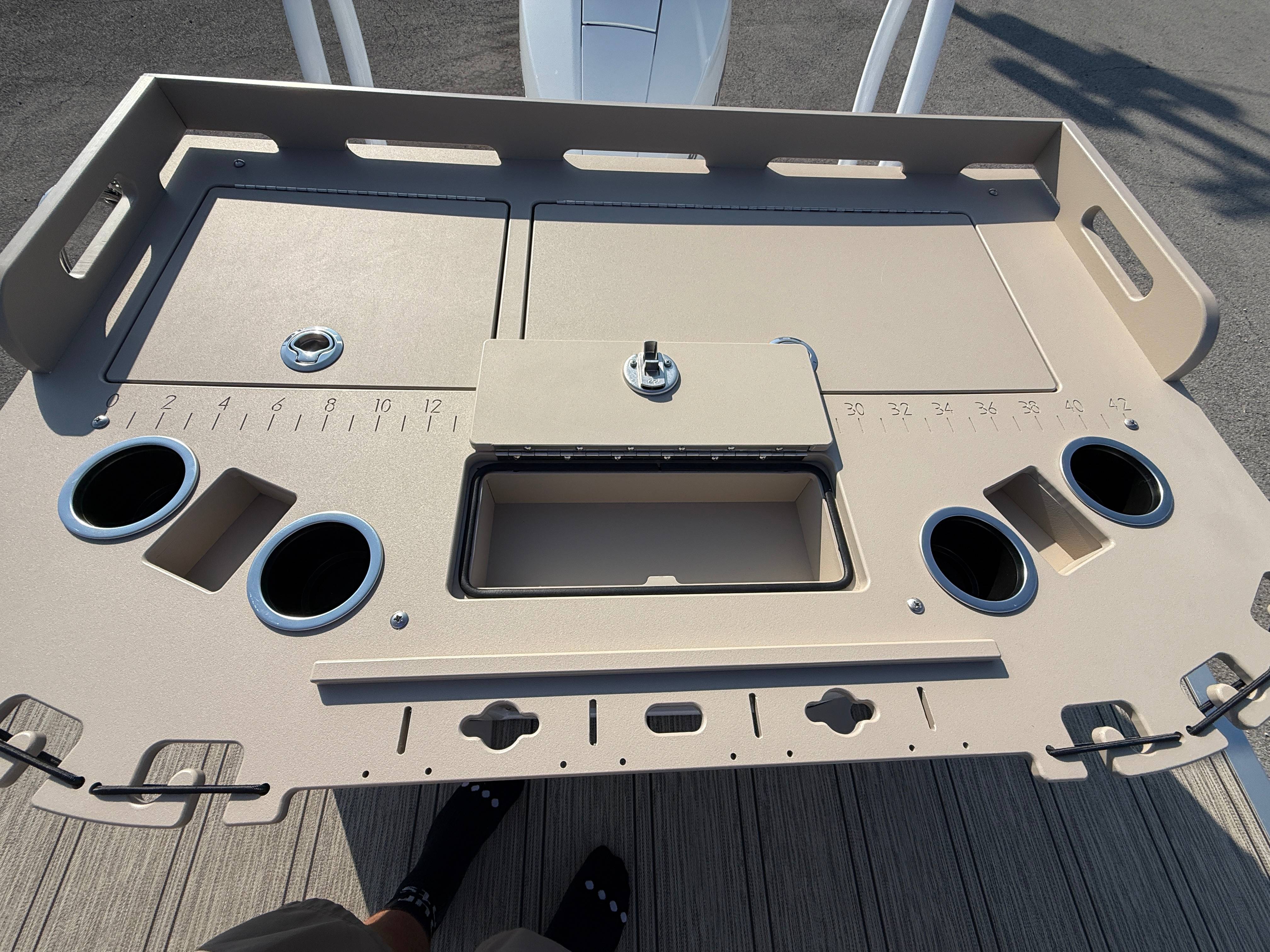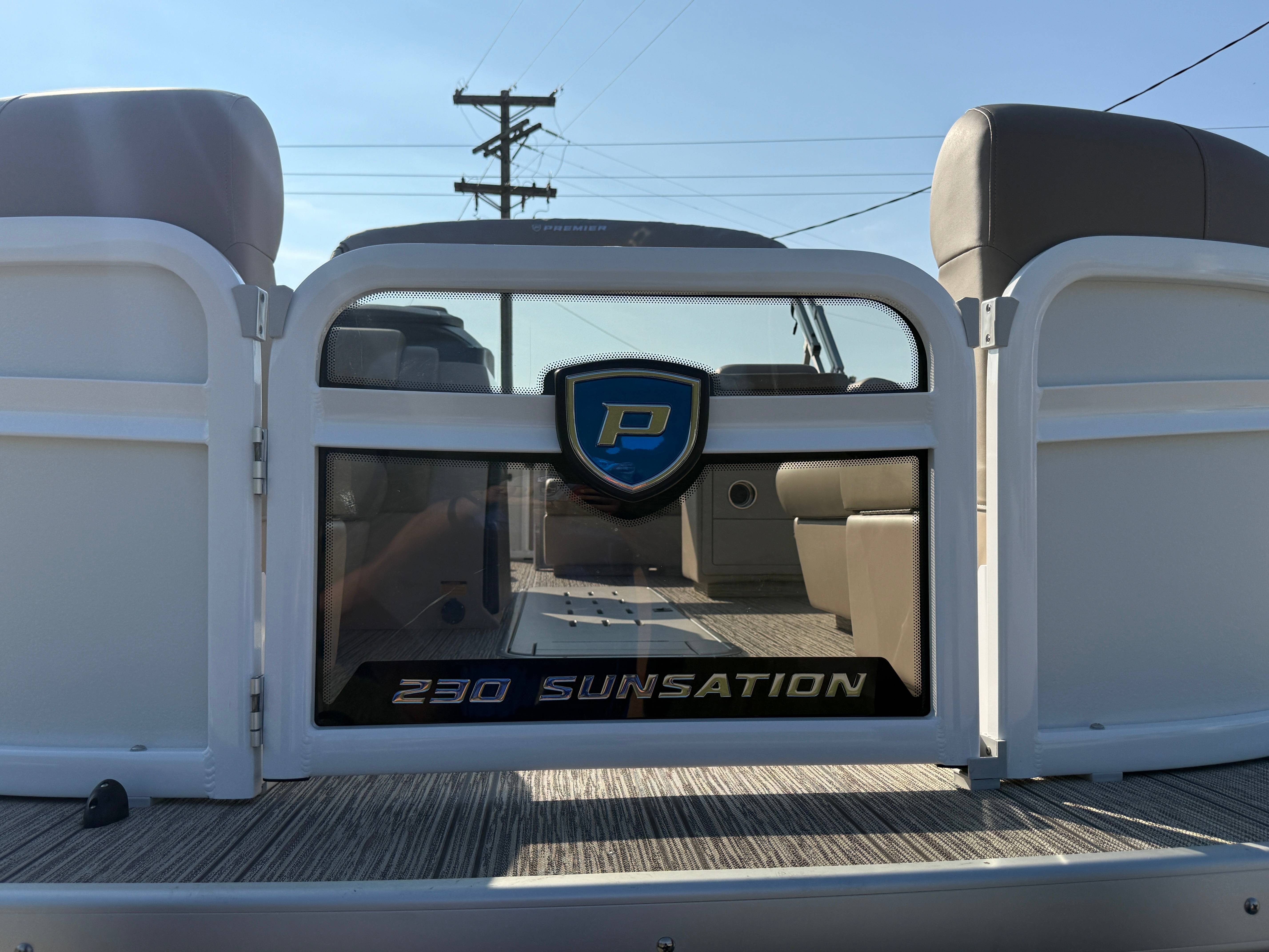 2026 Premier 230 Sunsation Angler 2PT SELECTED OPTIONS Panel(s) Color Single Panel Color Railing Color Exterior graphics package Vantage Tube Film Ladder Fiberglass Helm Color Furniture Base Color Furniture Accent Color Flooring Color Lounge Back Upgrade Double Desert Teak Couch Flip-out Table w/ Pet Dish Drawer Filler Couch None Interior Accessories Couch Toe Kick Lights Charging Stations Fast charging USB-A/USB-C in all couches Helm Mats Woven - Flooring Match Navigation Gauges & Displays Lowrance EaglesĀ· display Sound System Wet Sounds MC-5 stereo, RECON 6.5" speakers (6) Troll & Stow Troll & Stow (up to 60" Shaft) Minn Kota Ulterra trolling motor 60" 80 lb. with DSC Trolling Motor On Board Charger Trolling Motor Battery Recharge System (Dual Battery) Onboard battery recharge Onboard1ng Battery Charging Station Biminis Ei Towers Front Biminis 6 Extensions Bimini Frame Color Canvas Color system 10' Power Arm None Satin Silver Harbor Gray Tower Speakers None . PTX28 package (.125" rough water nose cones, ski Chassis Type . . locker, hft1ng strakes) Transom Height Order Engine Method Engine Max Horsepower Select Engine Make Engine Pre Rigging Engine Model Steering Fuel Tank Size Extended Perl Ski Tow Bars Transportation Protection 25" Transom Rig mechanical engine 250hp Max Rating Mercury Mercury Mechanical 200HP & Above Mercury 200XL 45 4.8" 1.85 White Hydr. Power Assist (Required) 33 gallon Full Performance Sheeting Ski tow bar unlit Cover only