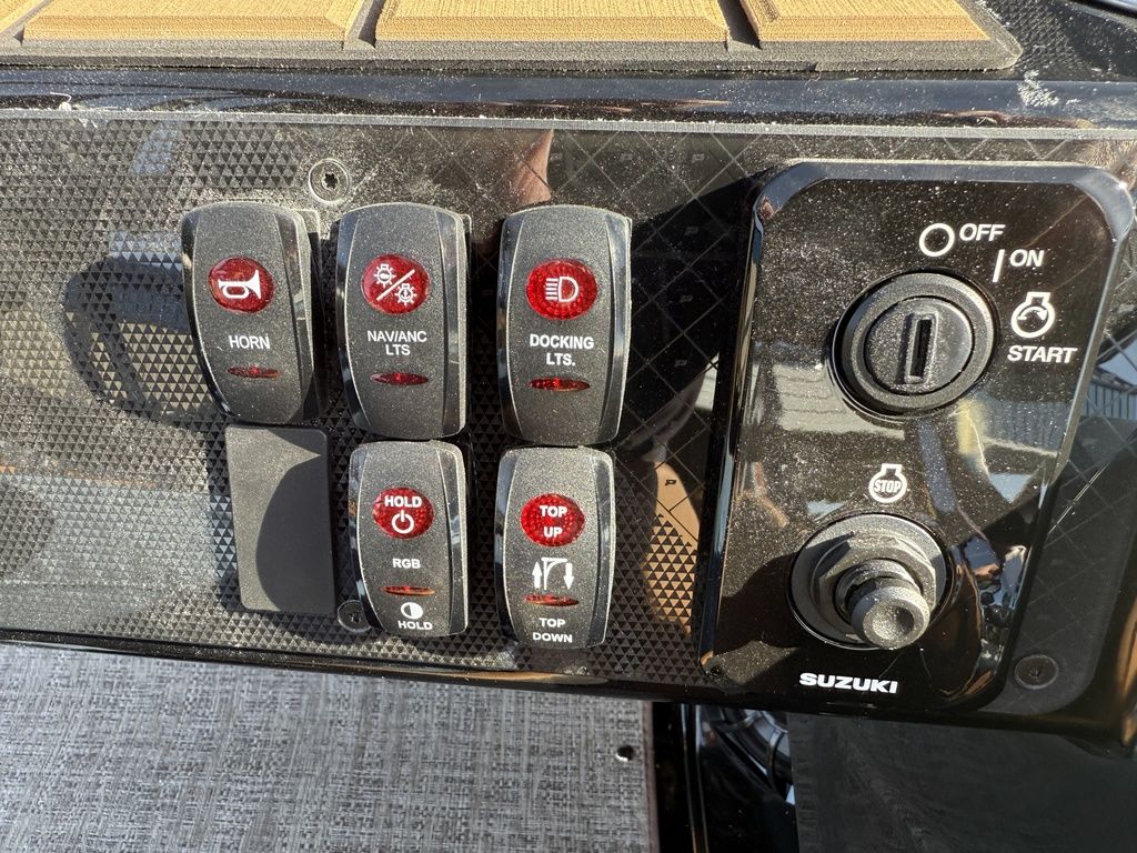 Quick Fit Mooring Cover, Firewood Interior, Black Powder Coated Rails, Power Bimini Top, Raised Driver's Helm, Full Instrumentation w/Engine Hour Meter, Ski-Tow, Wet Sounds 6 Speaker AM/FM Bluetooth Stereo w/RGB Speaker Lighting and Sub Woofer, Dual Battery System w/Switch, In-Floor Ski Locker, Hydraulic Steering System, Soft Touch Vinyl Seating, LED Docking Lights and PTX Triple Tube Package.Trailer Not Included.
