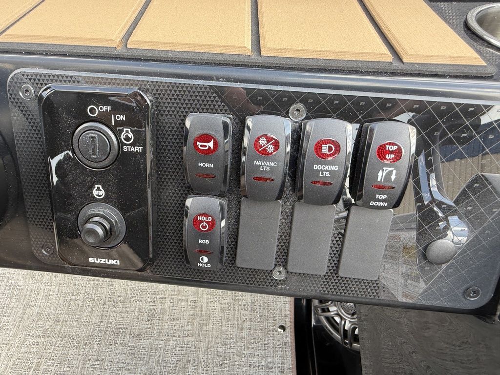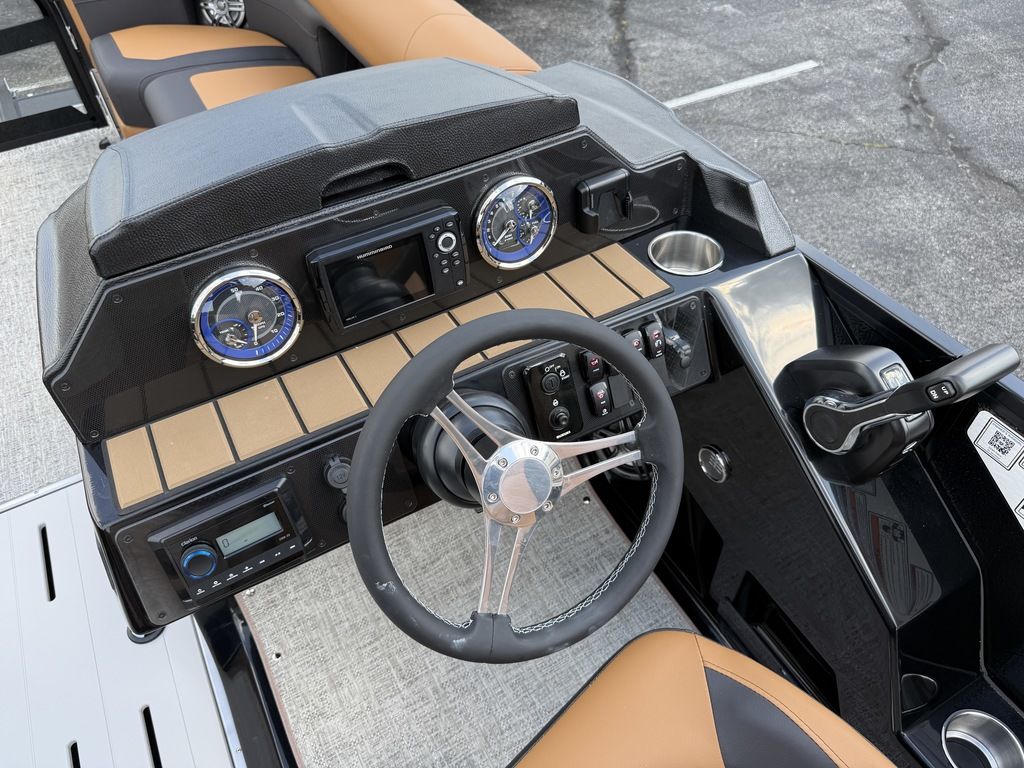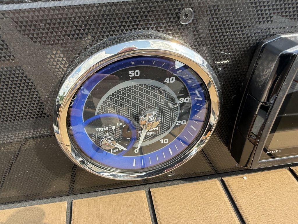 Features IncludeQuick Fit Mooring Cover, Power Bimini Top, Raised Driver's Helm, Full Instrumentation w/Engine Hour Meter, Humminbird GPS/Fish Finder, 6 Speaker AM/FM Bluetooth Stereo w/RGB Speaker Lighting, In-Floor Ski Locker, Hydraulic Steering System, Cool Touch Vinyl Seating, LED Docking Lights and PTX Triple Tube Package.