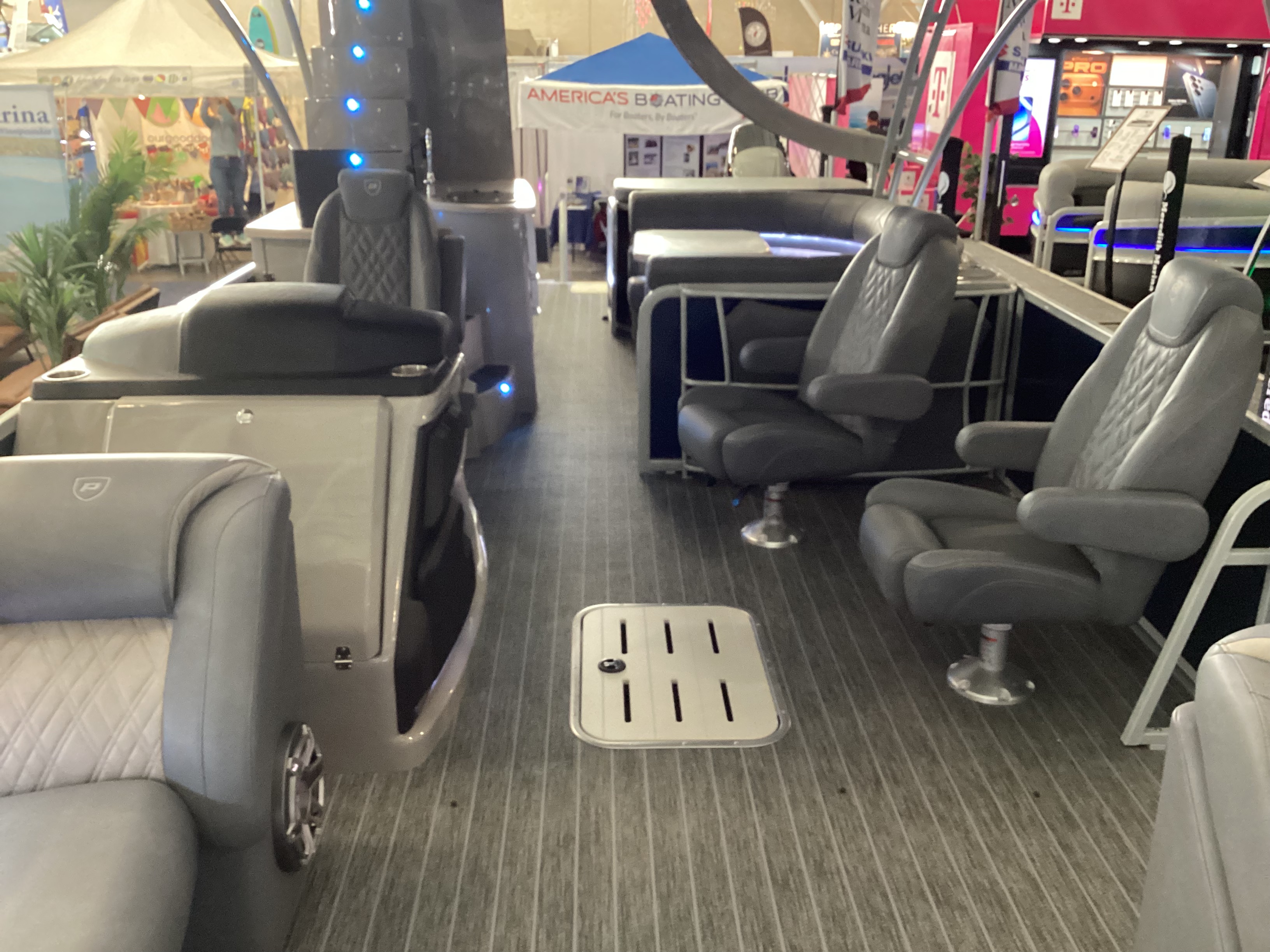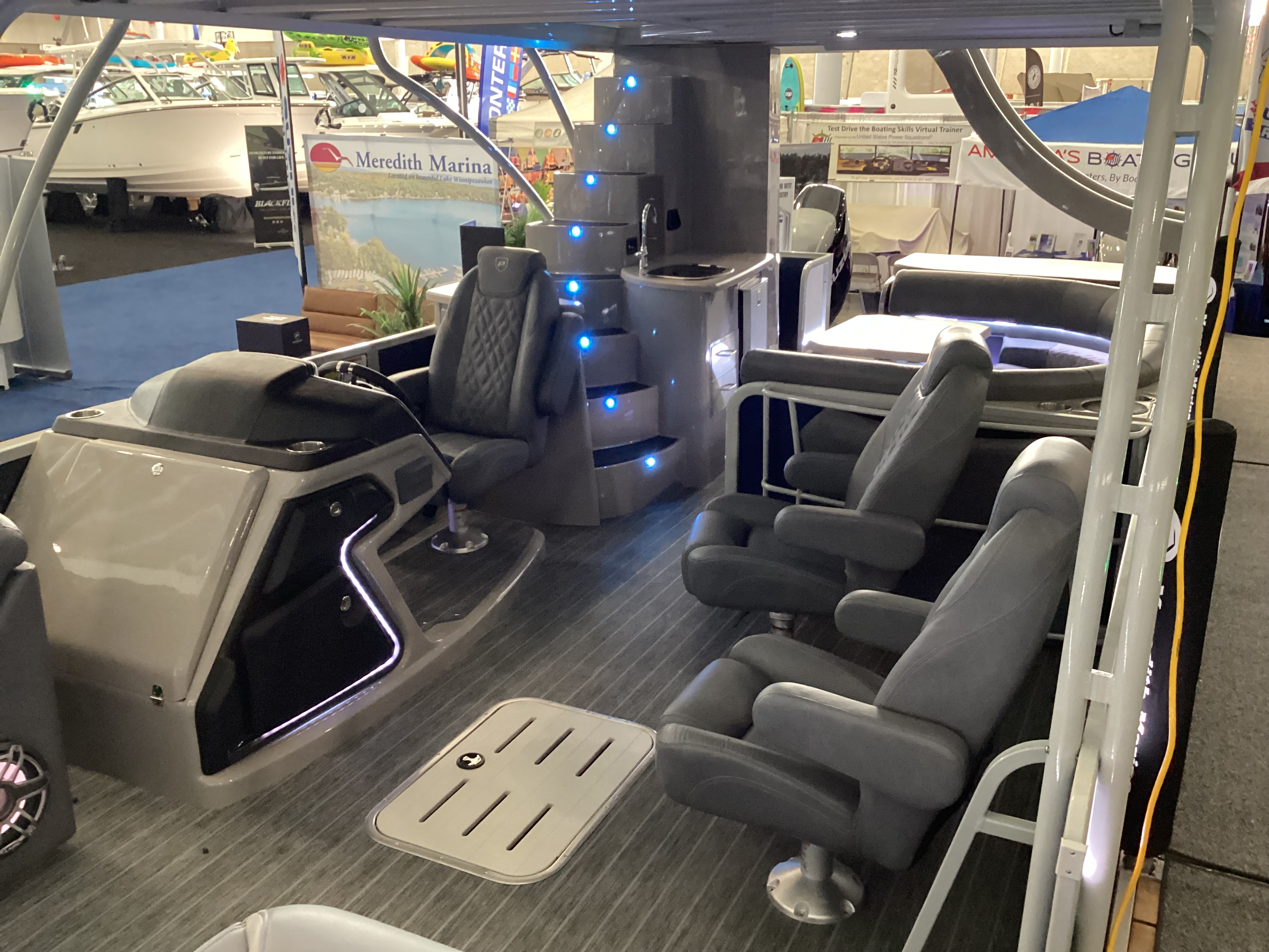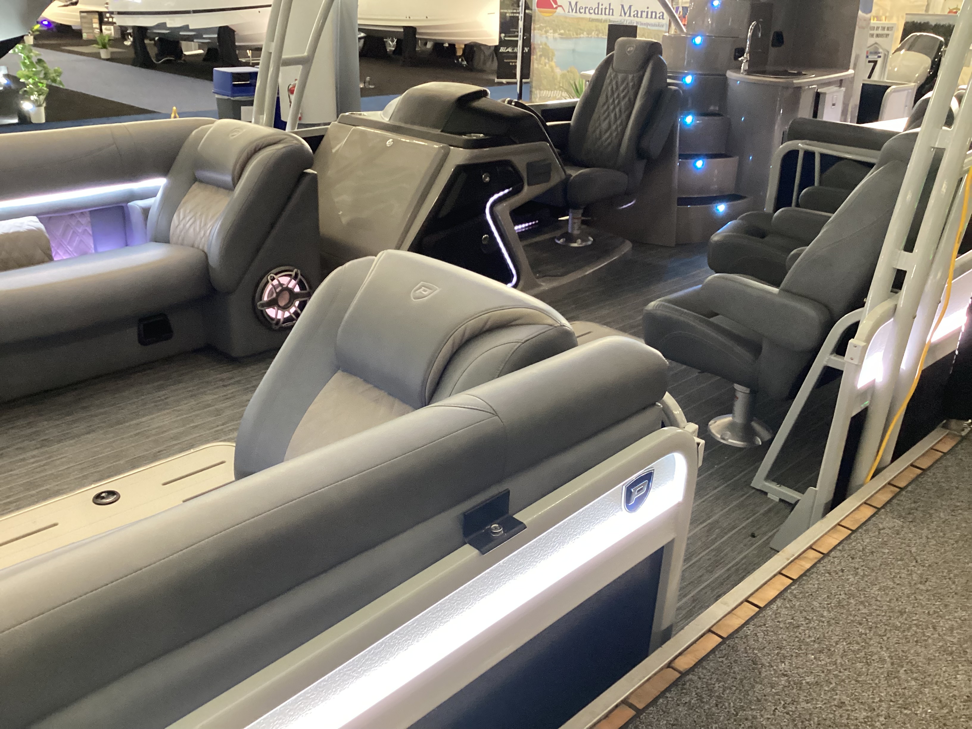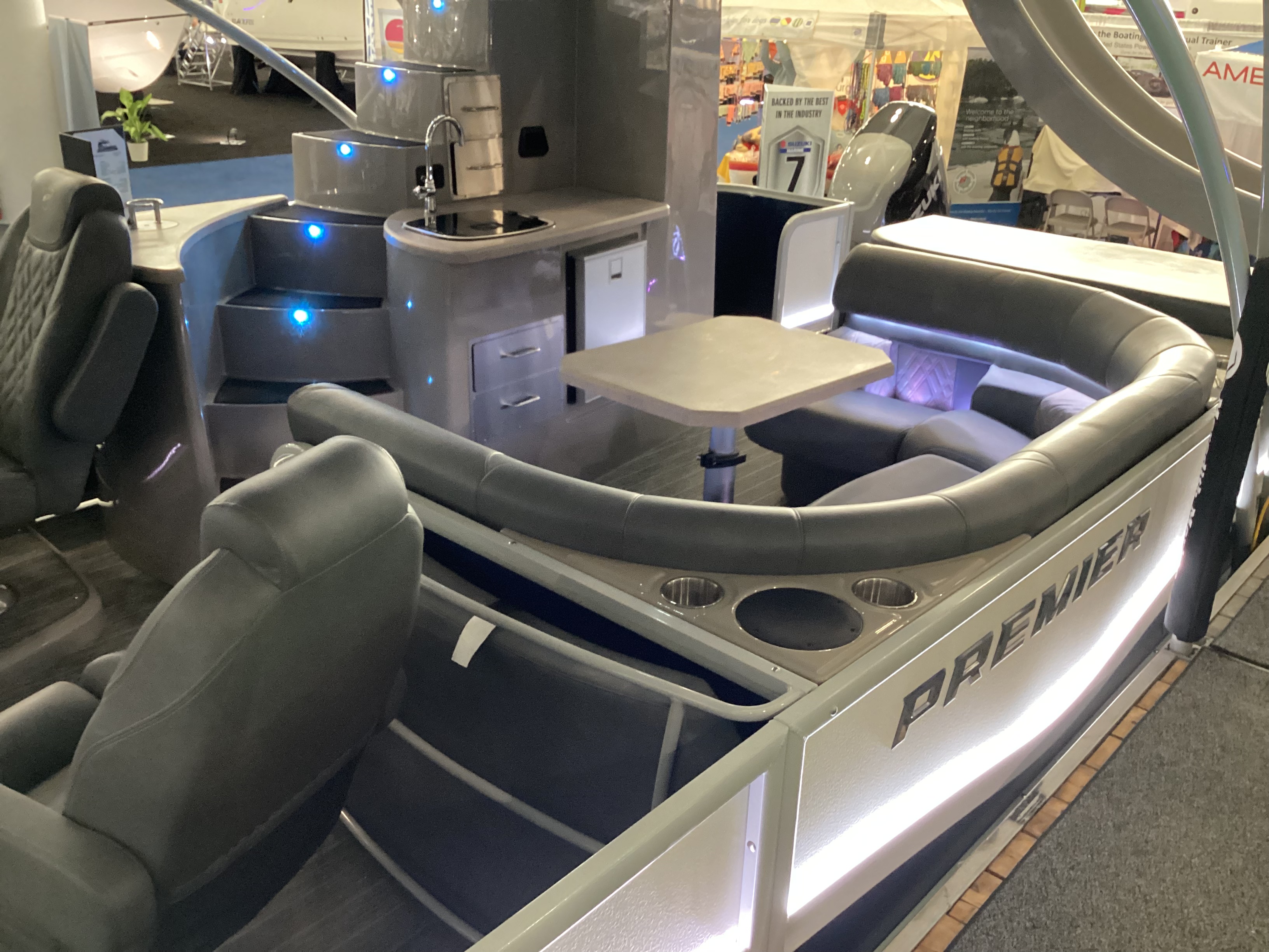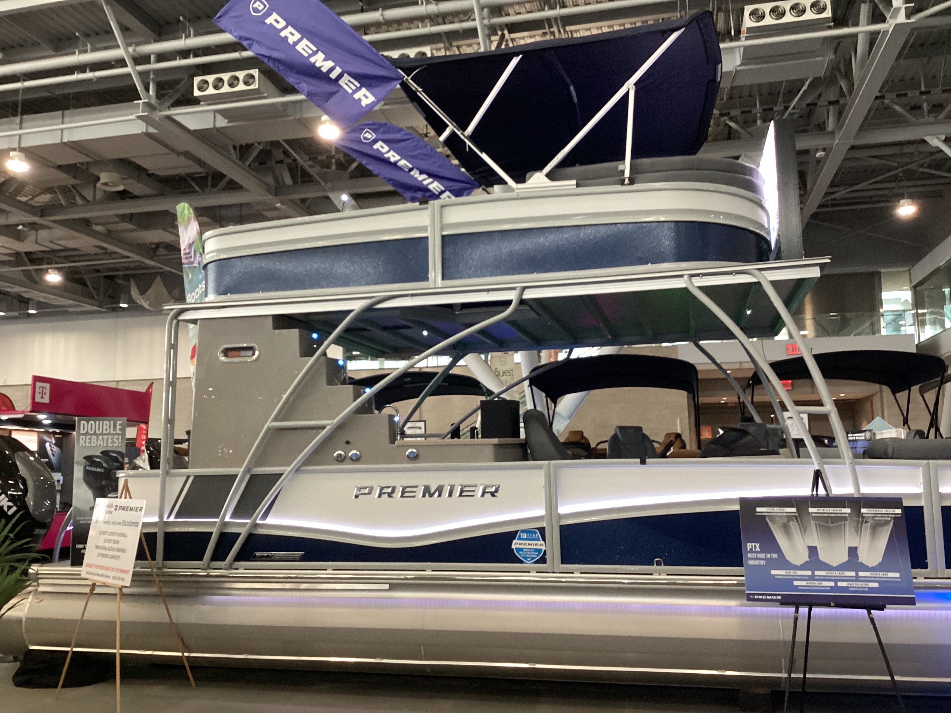 Premier Pontoons are known for luxury craftsmanship and premium performance, showcasing a patented PTX hull with a shaped tube that adds lift, reduces drag, and allows for tight turning and high-speed stability, providing a ride like no other pontoon boat. There’s a wide range of models and family-friendly features, and most can handle water-skiers and tubes with ease and superior drivability. Premier also makes the largest pontoon boat on the market, a double-decker slide boat the Escalante, which was a hit at the Boston Boat Show. The company has won the NMMA Innovation award for the last three years in a row, as it continues to add features to its premium lines as well as its angler series pontoons for fishing.