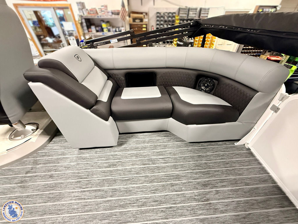 The 21' Sunsation RF from Premier Pontoons delivers style and functionality with rear and bow facing couches on both the starboard and port sides. Powered by the ultra-reliable 115hp Yamaha engine, this boat features a Mountain Grey Fiberglass Helm with Fast Charging USB-A/USB-C Ports, Dual Analog Gauges, Simrad NSX 7 Display, Ski Tow Bar, Wet Sounds MC-2 Stereo, RECON 6.5" RGB speakers (6) and a 10" Subwoofer with Digital Amp!