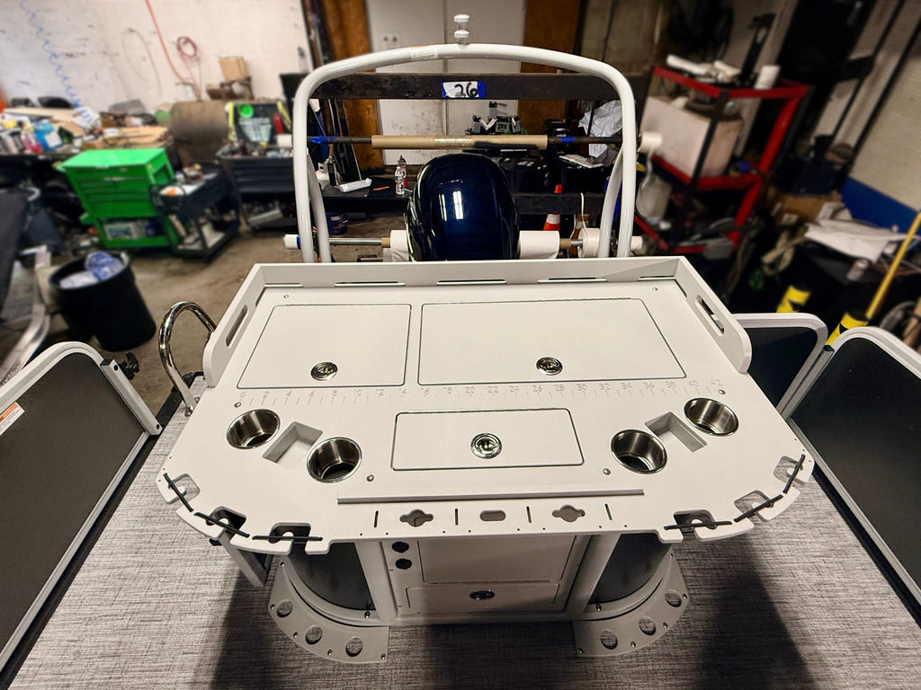 So intelligently designed, we had to warn the fish.The Angler Series is the smartest fish-ready pontoon in the industry. Packed with innovation for a better fishing experience, and paired with a level of unmatched versatility, it’s quite possibly the only boat you’ll ever need. Available in three dedicated fishing floorplans, each fishing station features a personal Caddie or Angler Station with everything you need within easy reach. Our exclusive Open Water Panels easily swing open and stow out of the way, giving you direct access to the water, while the award-winning Troll & Stow revolutionizes the trolling motor experience.