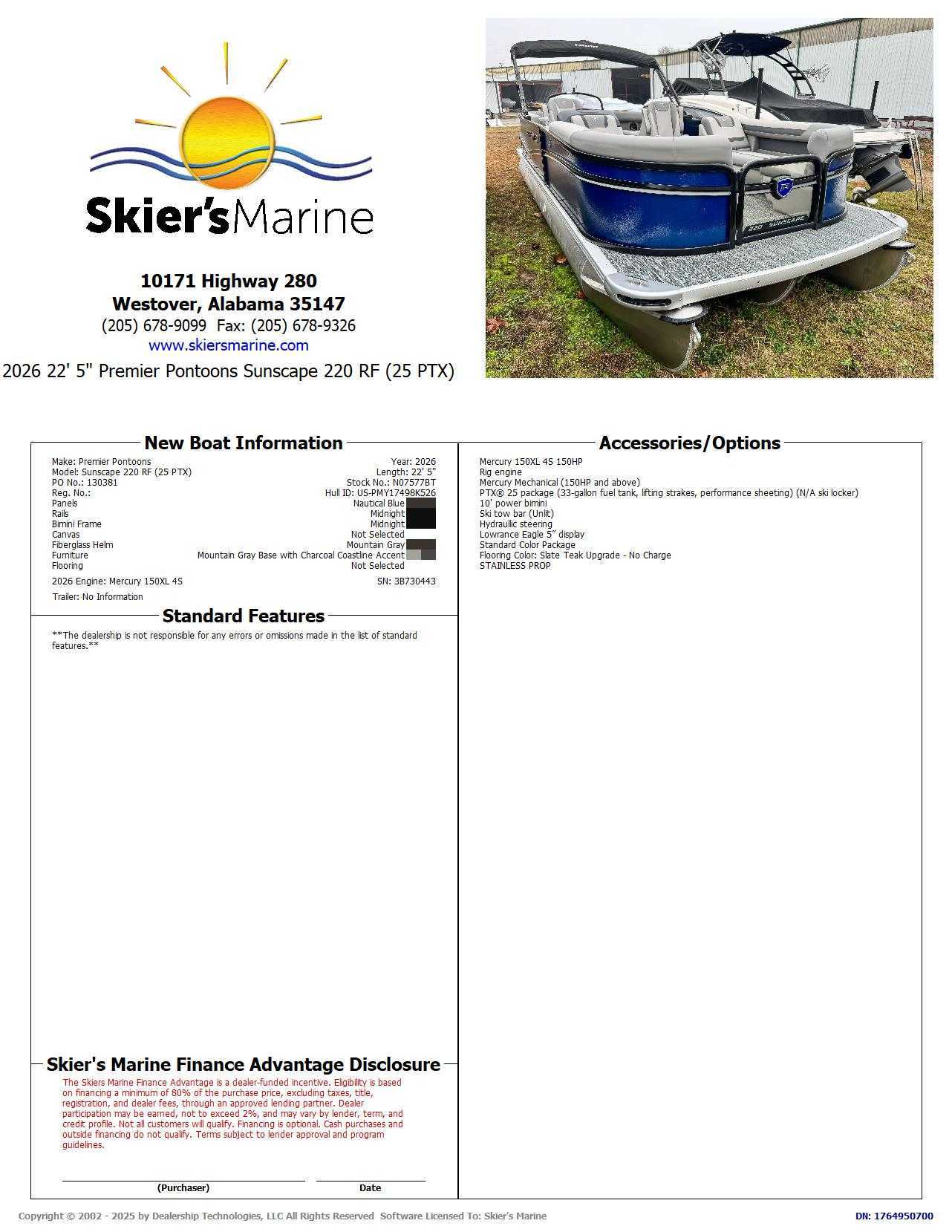 2026 Premier Sunscape 220 Rf 25 Ptx
