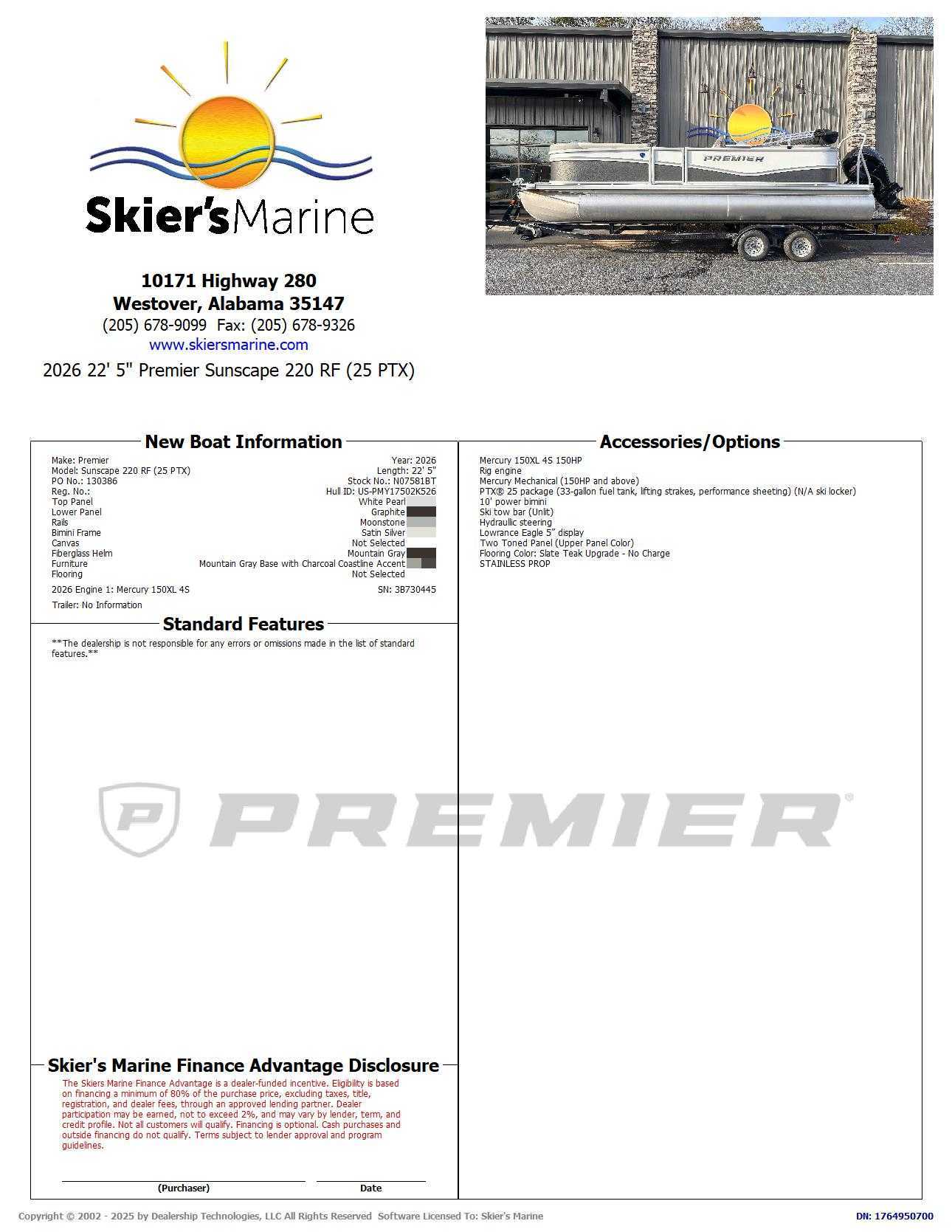 2026 Premier Sunscape 220 Rf 25 Ptx