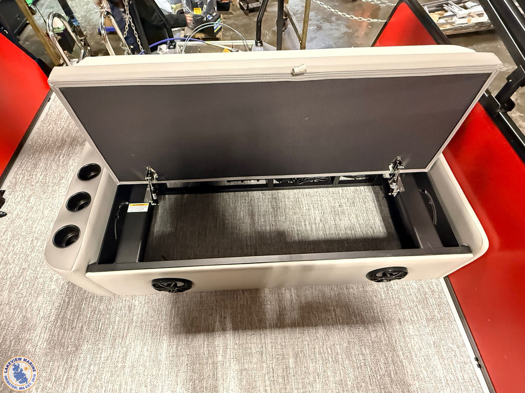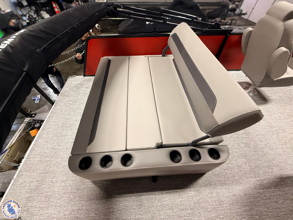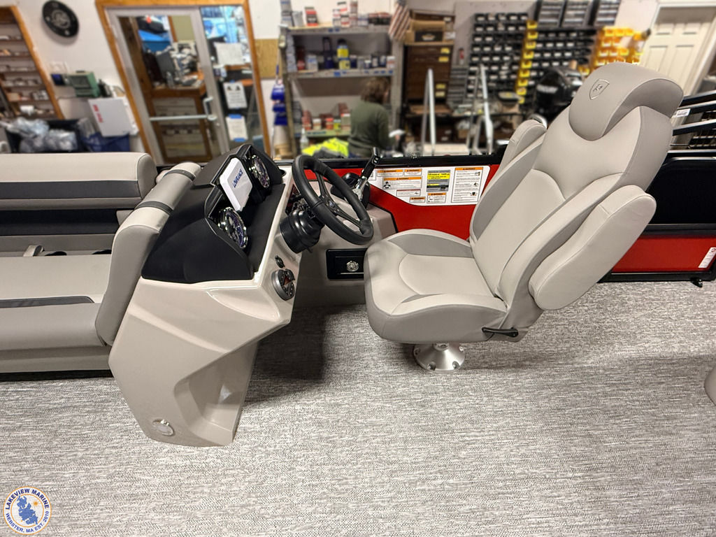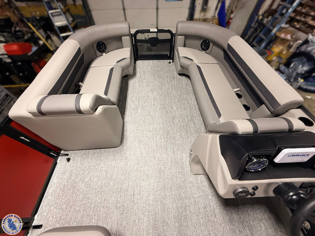 This pontoon floorplan offers a convertible rear lounge/bed with bow starboard and port side couches. Paired with the Yamaha 115hp V-Max SHO engine, features include a 10' Power Bimini, Wet Sounds Speakers (4), Captain & Co-Captain High Back Chairs, Lowrance Eagle 5" display and Ski Tow Bar with Rear Lounge Stainless Steel Chains for added safety!