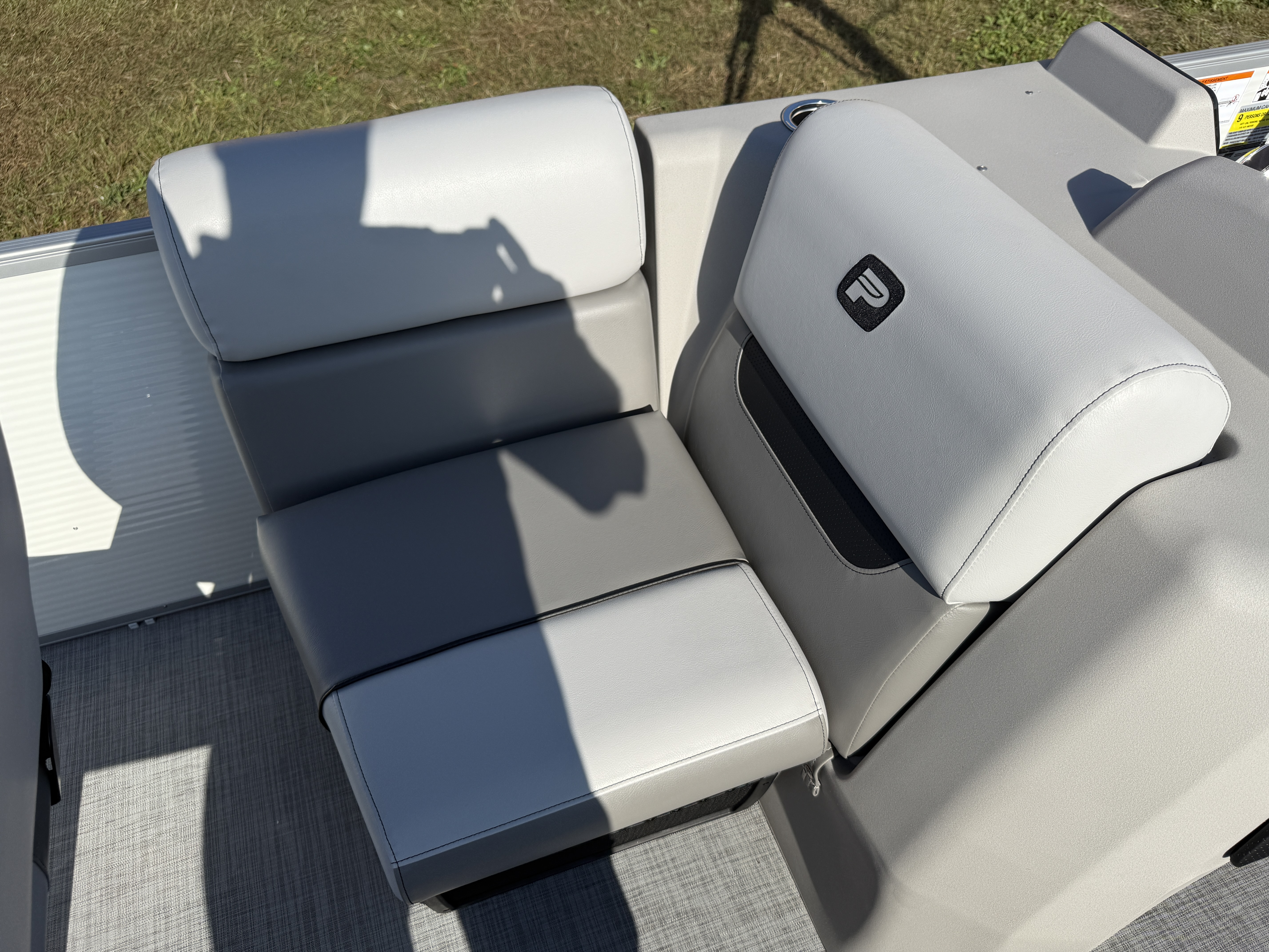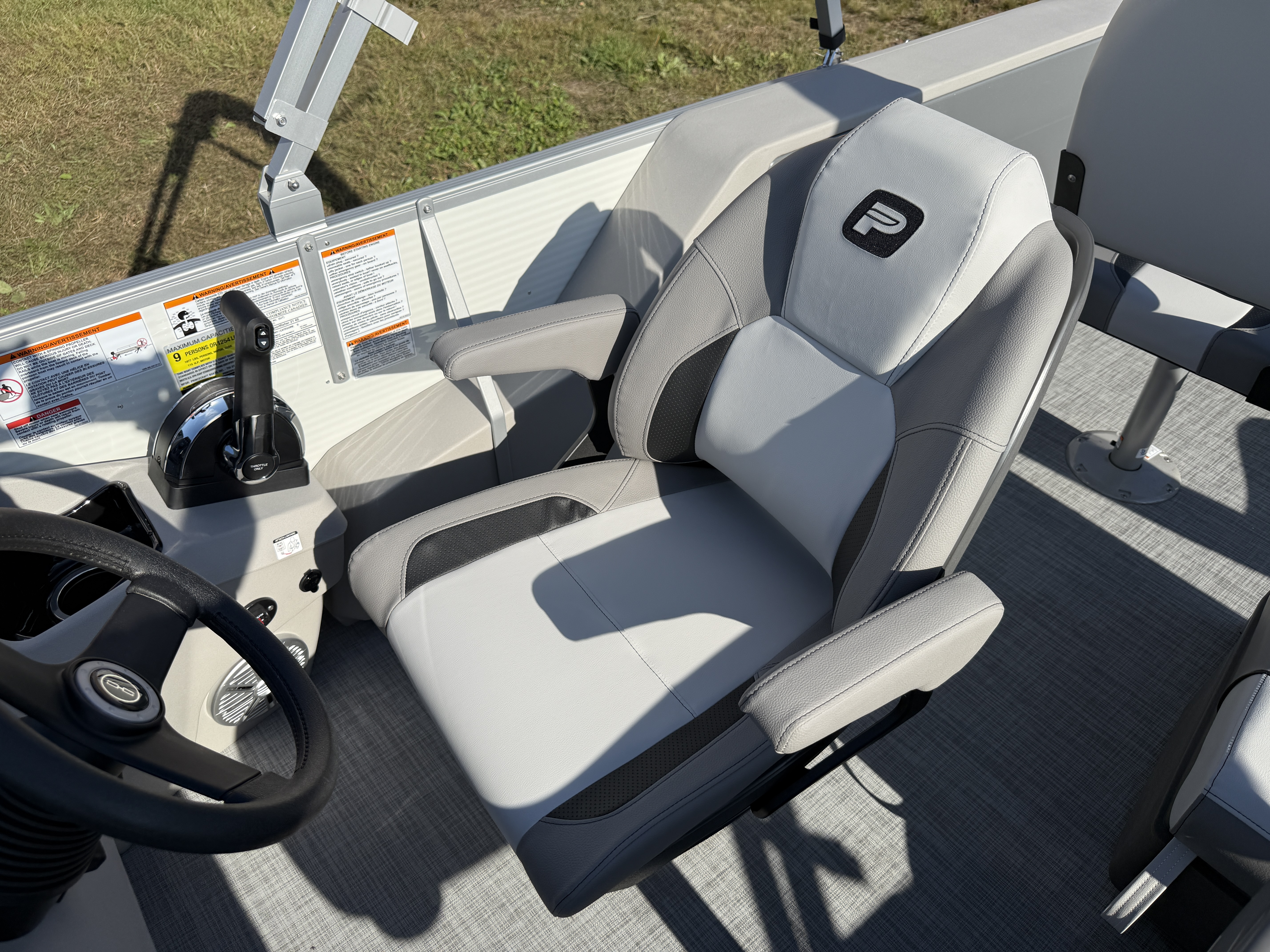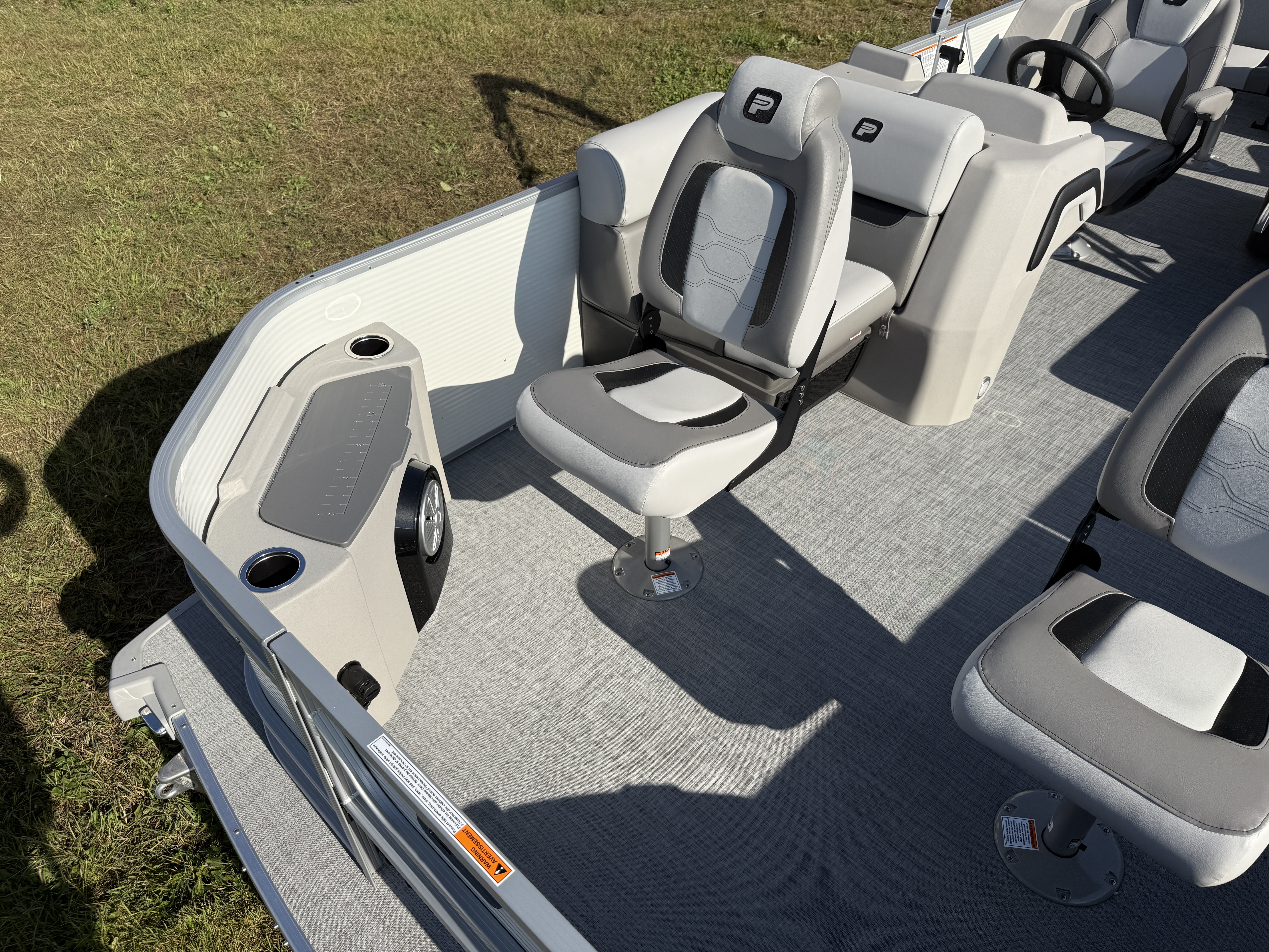 This 21' Quad Fish Pontoon Has 2 Fishing Seats Up Front w/Arms, Chaise Lounge