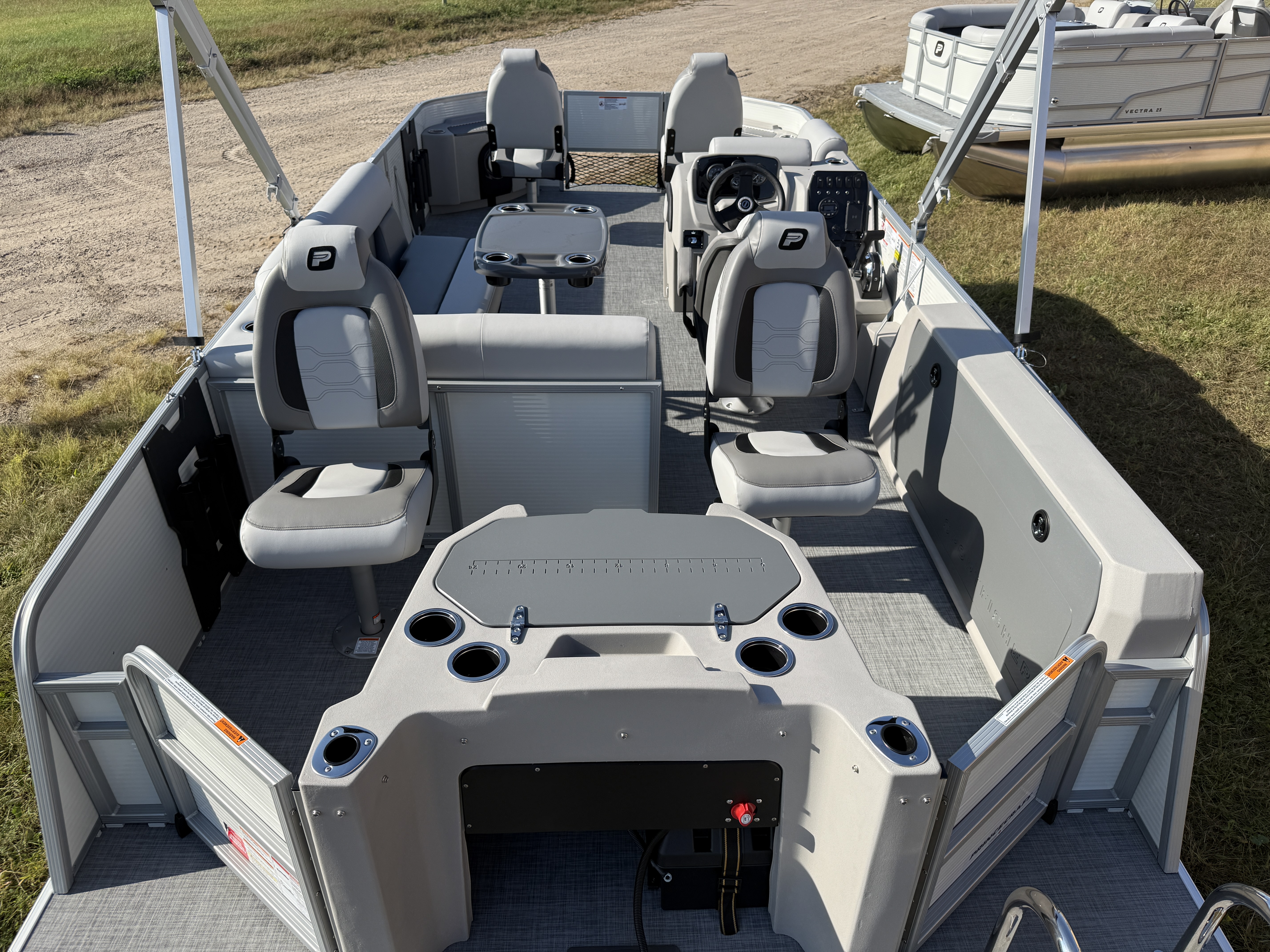 2026 Princecraft Sportfisher 21-4S Quad Fish Pontoon & Mercury 4-Stroke EFI. This 21' Quad Fish Pontoon Has 2 Fishing Seats Up Front w/Arms, Chaise Lounge Seat In Front Of Helm w/Storage, Wrap Around Lounge Seating With Storage, 2 Fishing Seats In The Back, Rear Live Well, Lockable Rod Storage, Bow & Aft Vertical Rod Holders, Advance Fishing Package (1/2 Front Gate w/Net, Trolling Motor Installation, Front Live Well, Battery Switch) Select Dark Gray Vinyl Floor, Bluetooth Radio/MP3 Player With 4 Speakers, Multiple Cup Holders, New Battery, Bimini Top, Mooring Cover, LED Docking Lights, LED Nav Lights, Table, 2 Rear Gates, Built-In 30 Gallon Gas Tank, Glove Box, Mood Lighting, Tilt Steering, Helm Storage, 4 Step Stainless Steel Ladder, 25" Tubes. Rated For 9 People.