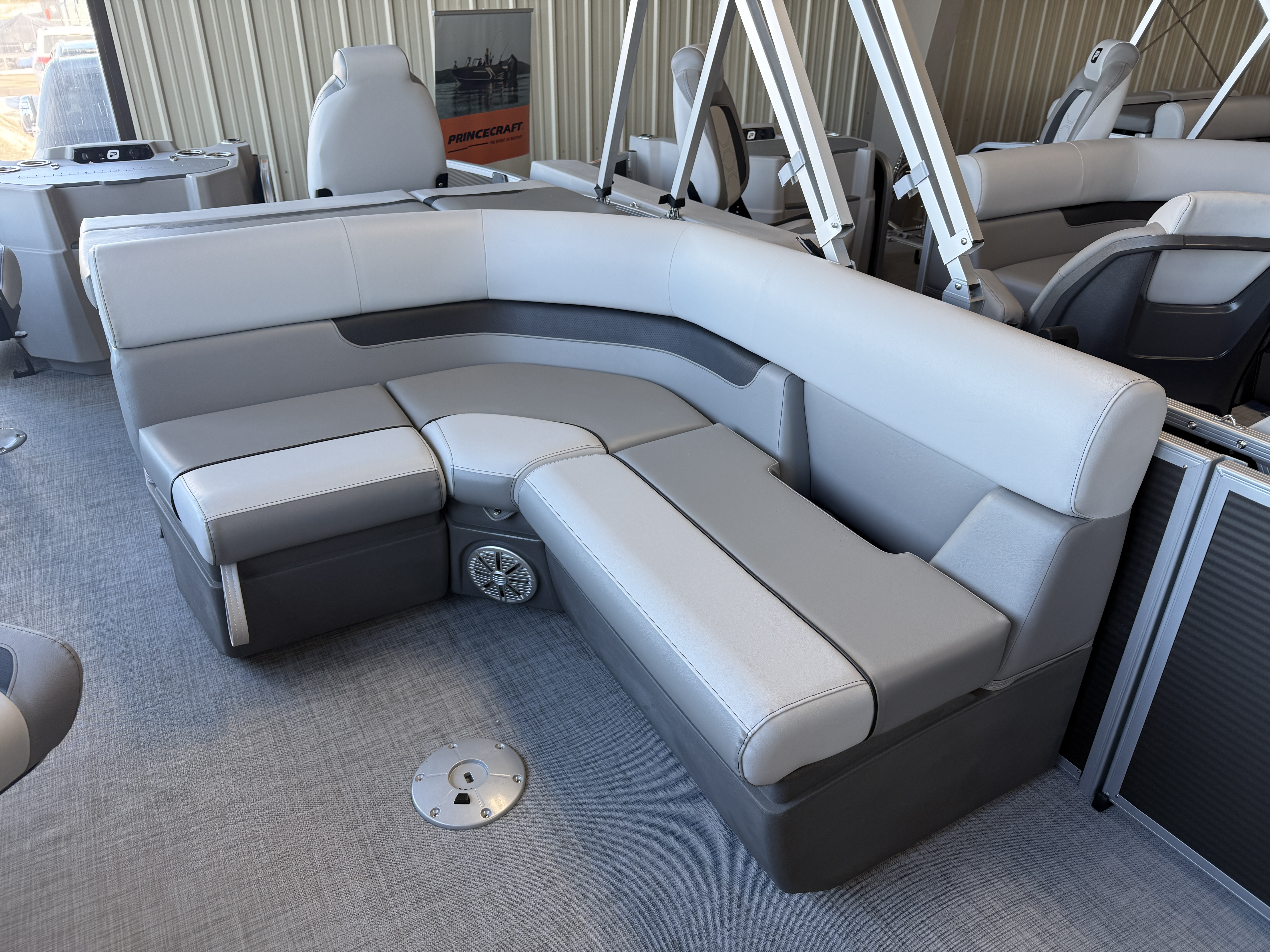 2026 Princecraft 23 Sportfisher 2-RS Pontoon & Mercury 4-Stroke EFI. This 22' Rear Fish Pontoon Has Bench Seating Up Front With Storage & Lounge Back, Wrap Around Seating With Storage, Rear Sun Pad With Storage, 2 Fishing Seats In The Back, Rear Live Well, Rod Holders, Select Gray Vinyl Floor, Mooring Cover, Built-In 30 Gallon Gas Tank, Table, Tilt Steering, Multiple Cup Holders, New Battery, LED Docking Lights, LED Nav Lights, Two Rear Gates, Front Deck, Rear 4 Step Stainless Steel Ladder, Bimini Top, AM/FM/Bluetooth Jensen Stereo, 25" Tubes. Rated For 11 People. Great Space In This Pontoon