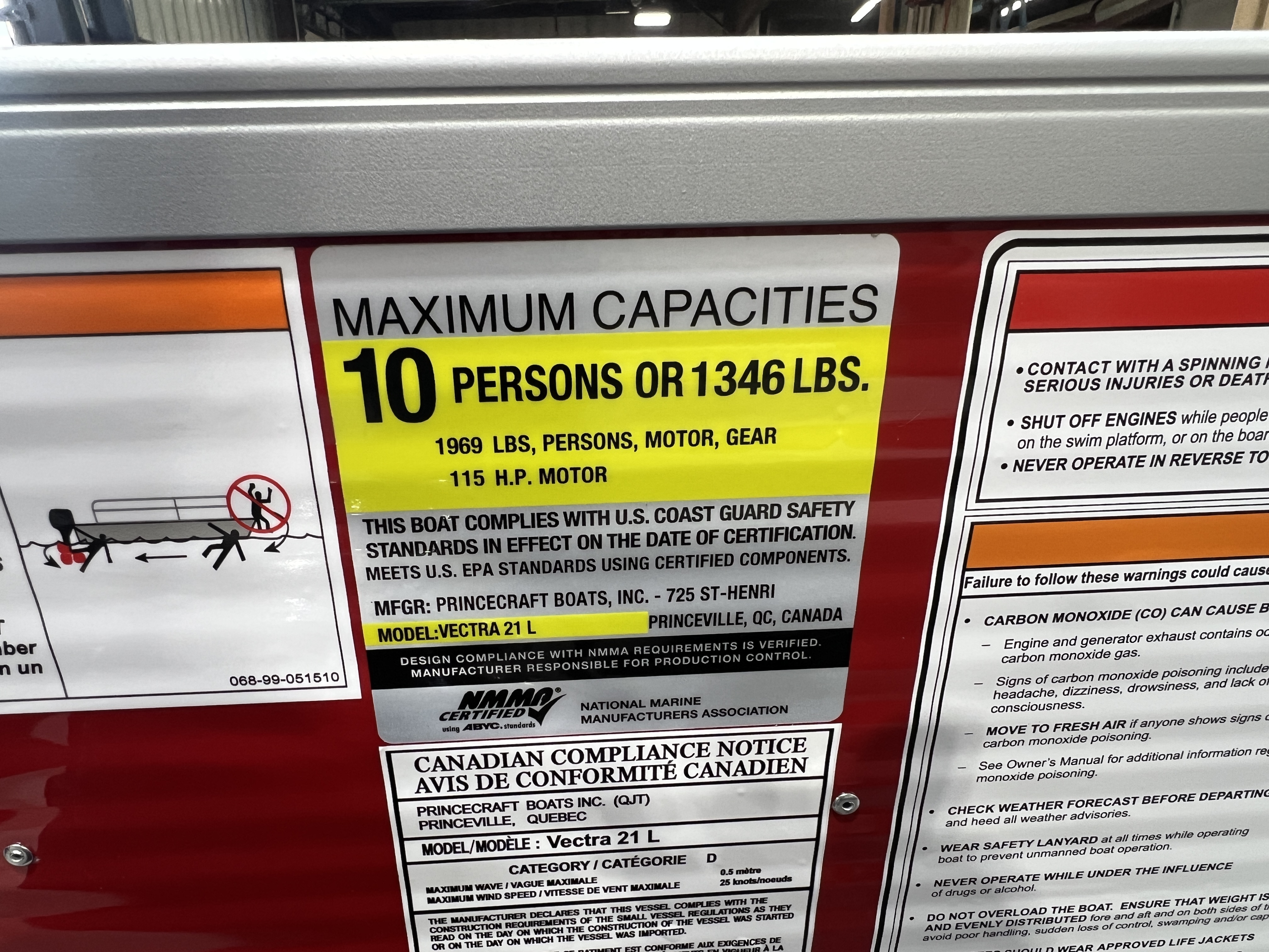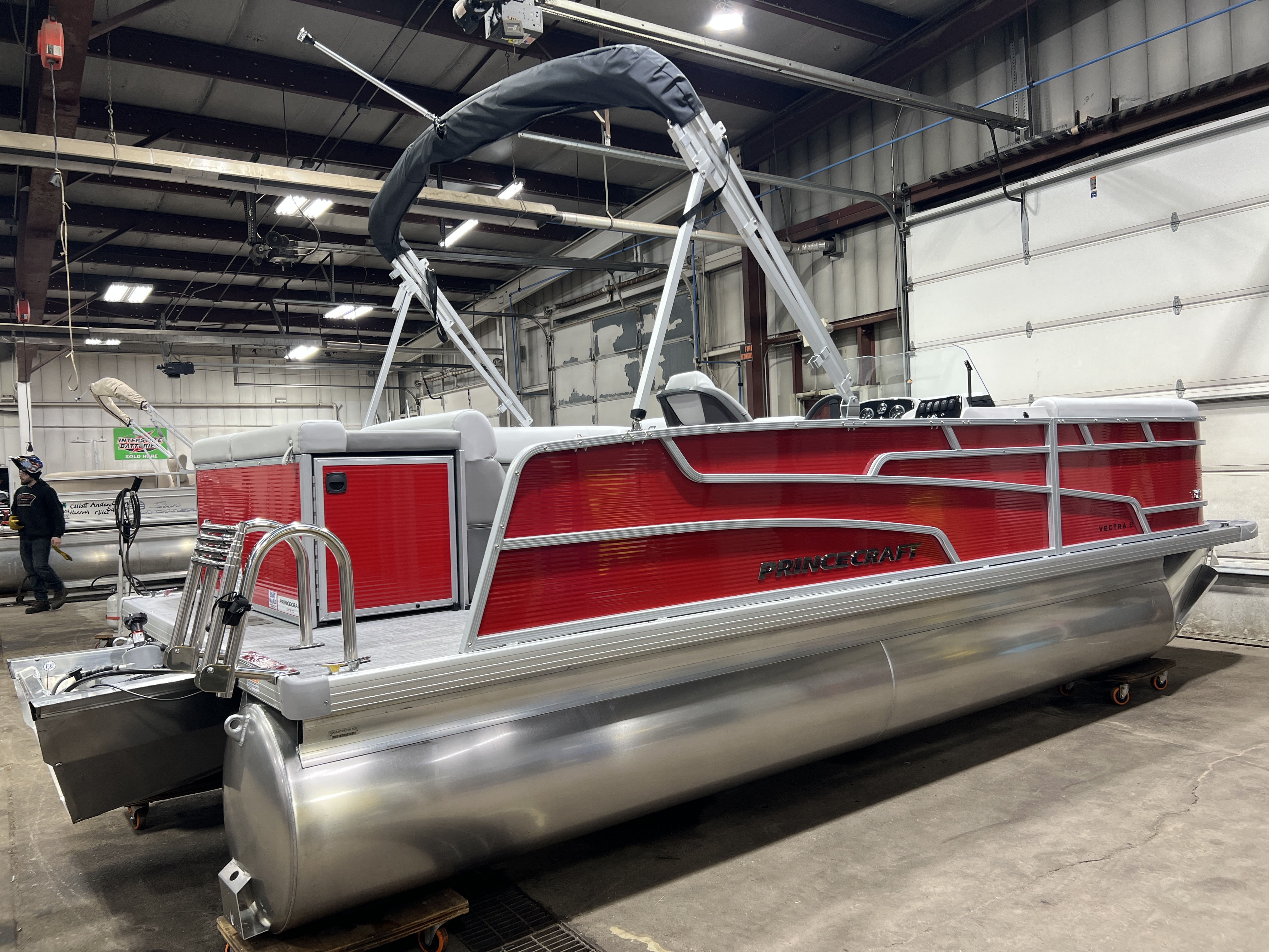 2026 Princecraft Vectra 21 Cruise Lounge Pontoon & Mercury 4-Stroke EFI. This 20' Pontoon Has Chaise Lounge Seating Up Front With Storage, Wrap Around Lounge Seating With Storage, Captain's Chair, Rear Sun Pad w/Storage, All Vinyl Flooring, Bluetooth Radio/MP3 Player, Table, Bimini Top, Mooring Cover, LED Docking Lights, LED Nav Lights, Helm Storage, Rear Sun Deck, Mood Package, 3 Gates, 4 Step Rear Ladder, 25" Tubes, Multiple Cup Holders, Built-In 29 Gallon Gas Tank, New Battery, Tilt Steering. Rated For 10 People.