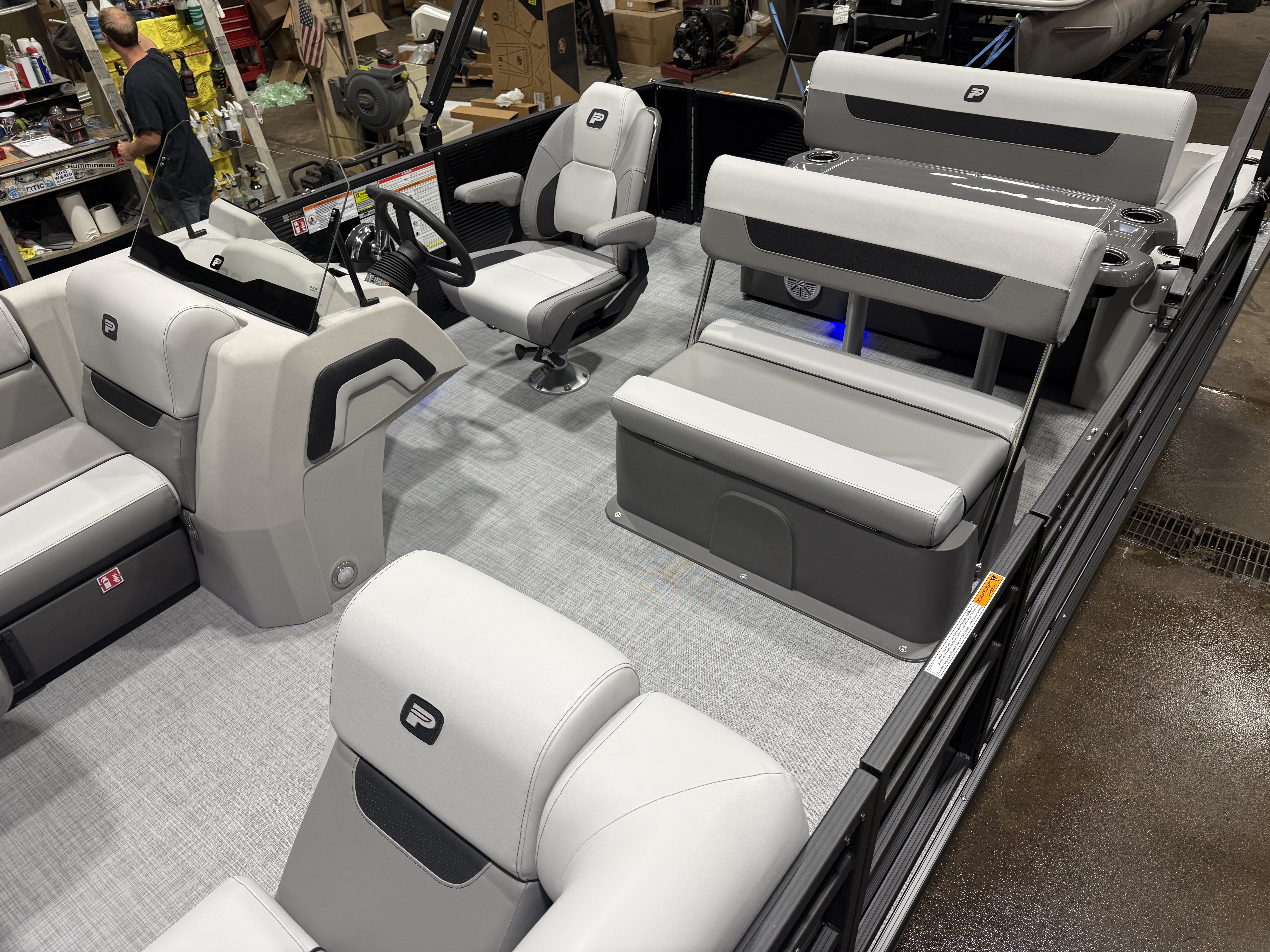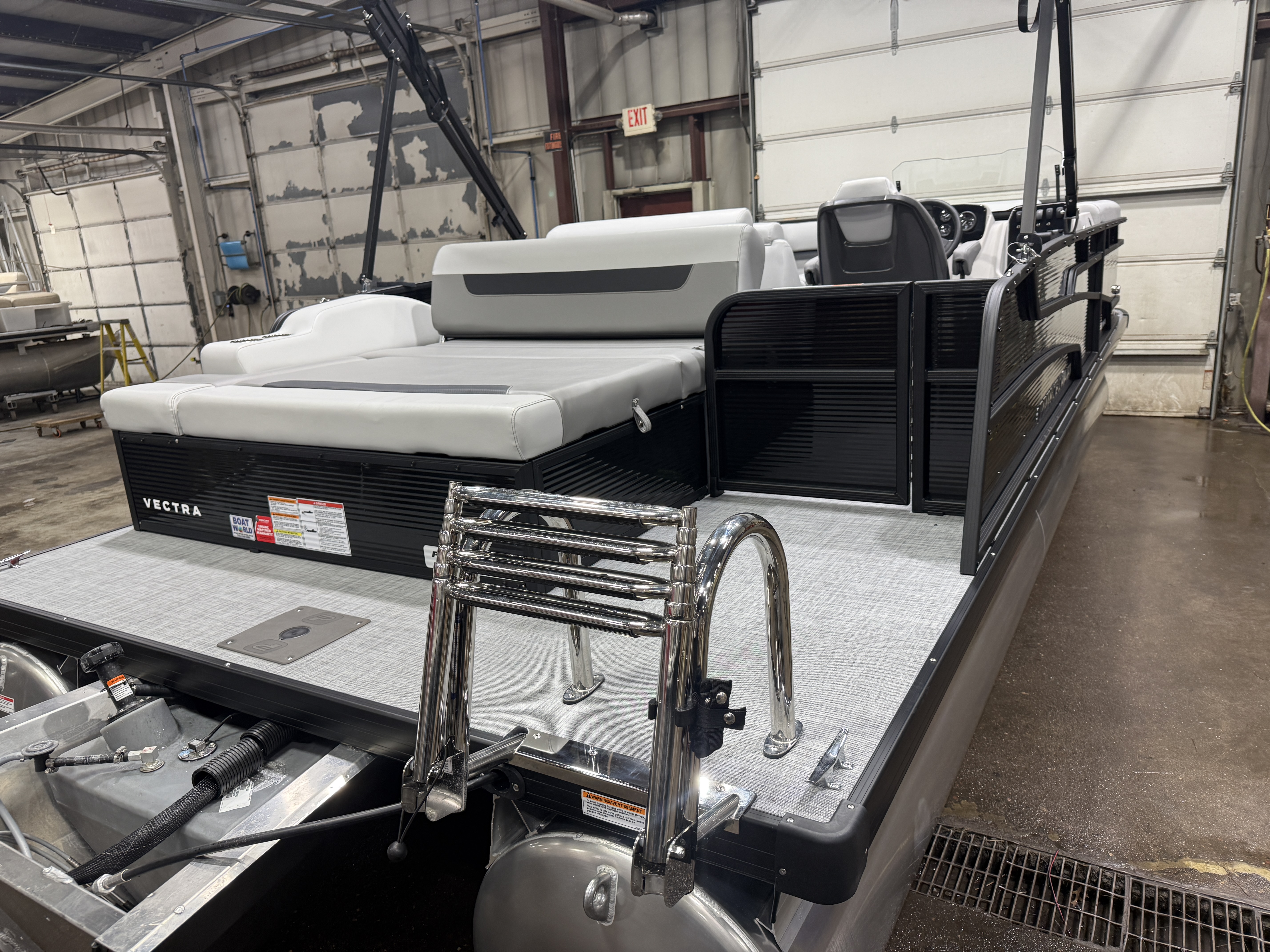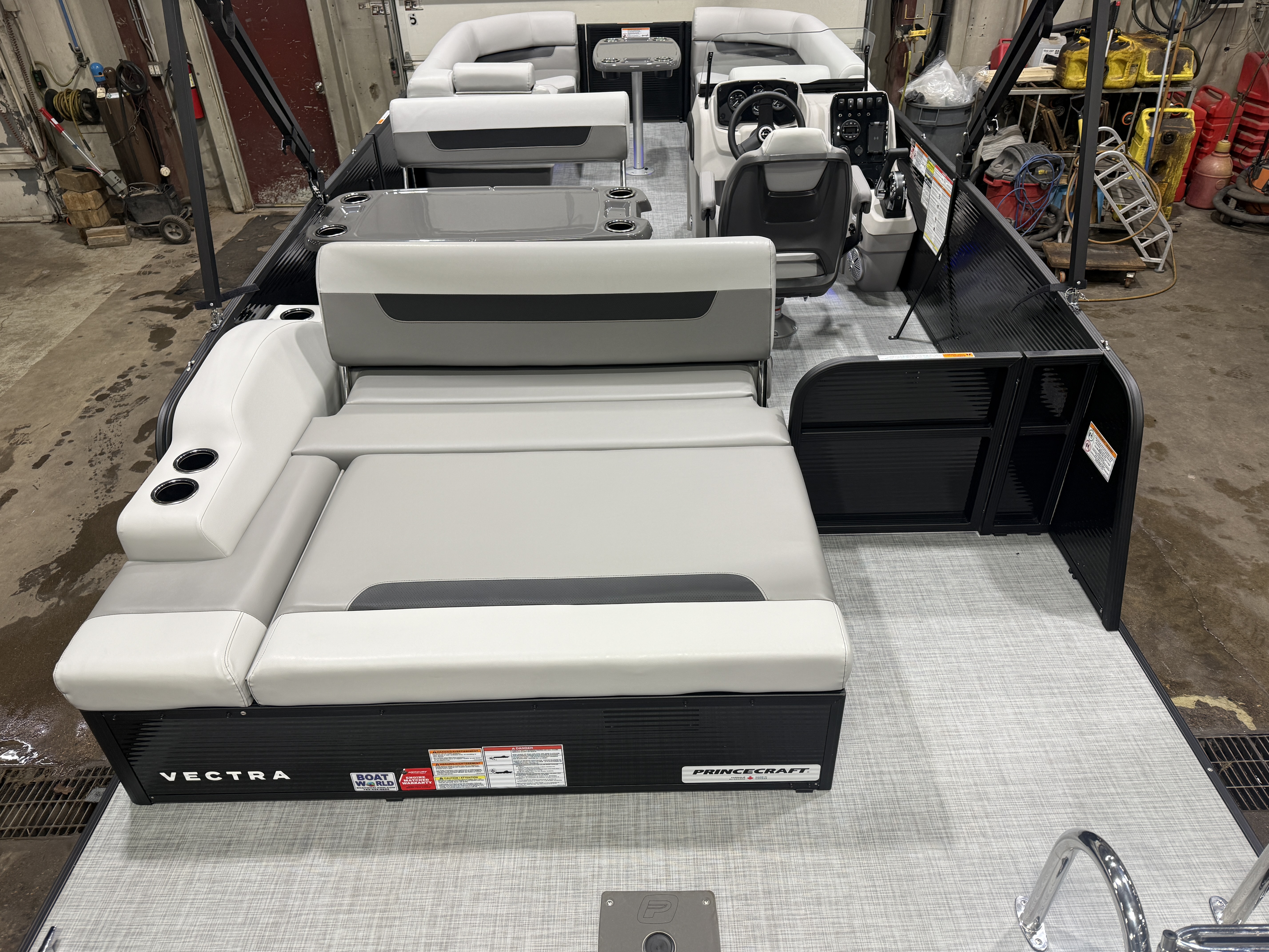 2026 Princecraft Vectra 23 RL Dinette Swingback Pontoon & Mercury 4-Stroke EFI. This 22' Rear Lounger Pontoon Has Chaise Lounge Seating Up Front With Storage, Flip Flop Seating With Built-In Cooler, Rear Facing Lounge Seating With Storage, Captain's Chair, Black Out Package (Black Bimini, Corner Caps, Wall Rails, Rub Rail), All Vinyl Floor, Bluetooth Radio/MP3 Player With 4 Speakers, Multiple Cup Holders, Mood Package, New Battery, Bimini Top, Mooring Cover, LED Docking Lights, LED Nav Lights, Two Tables, Built-In 29 Gallon Gas Tank, Tilt Steering, Helm Storage, Rear Swim Deck With 4 Step Stainless Steel Ladder, Front Deck, 25" Tubes. Rated For 12 People.