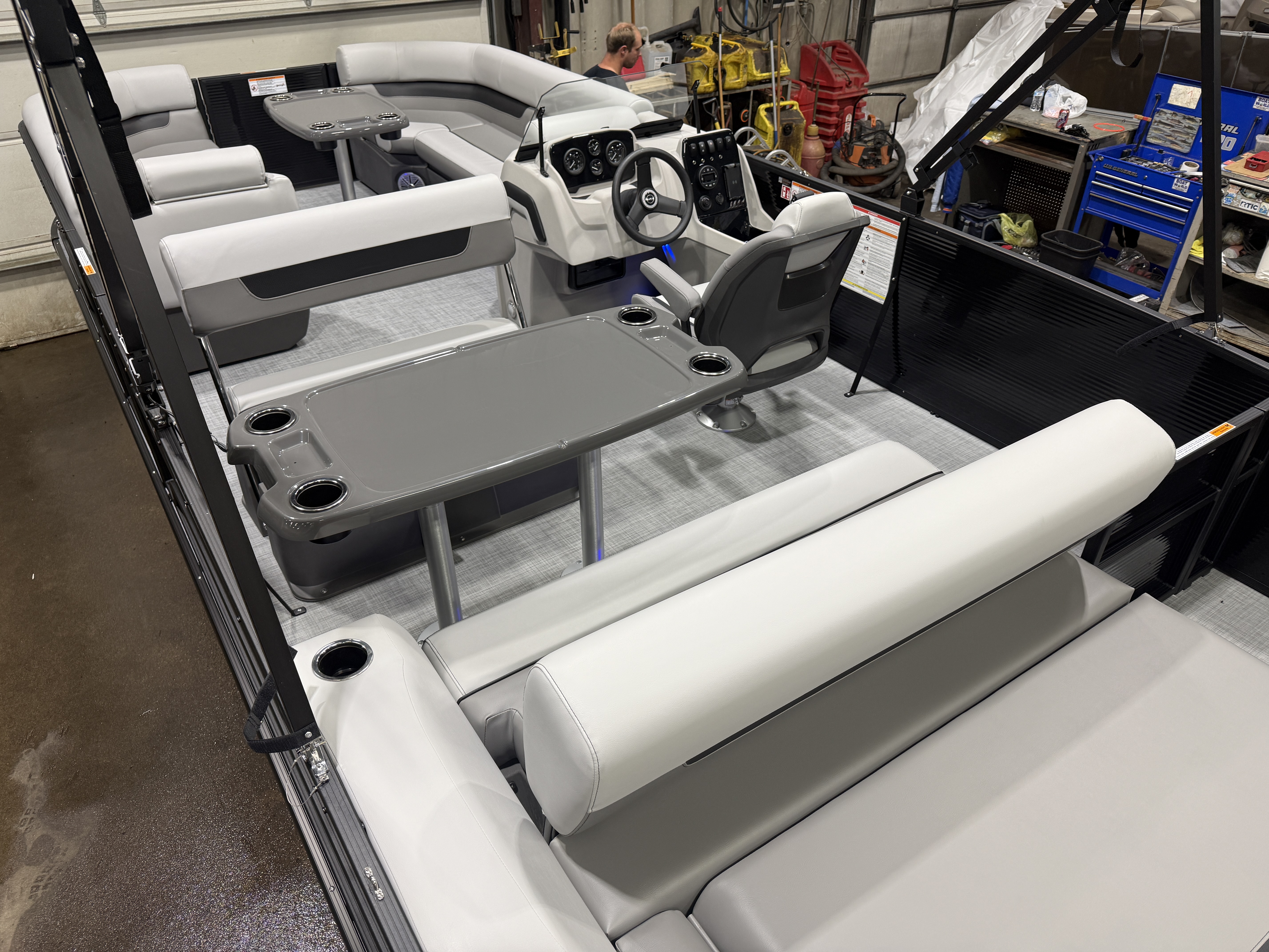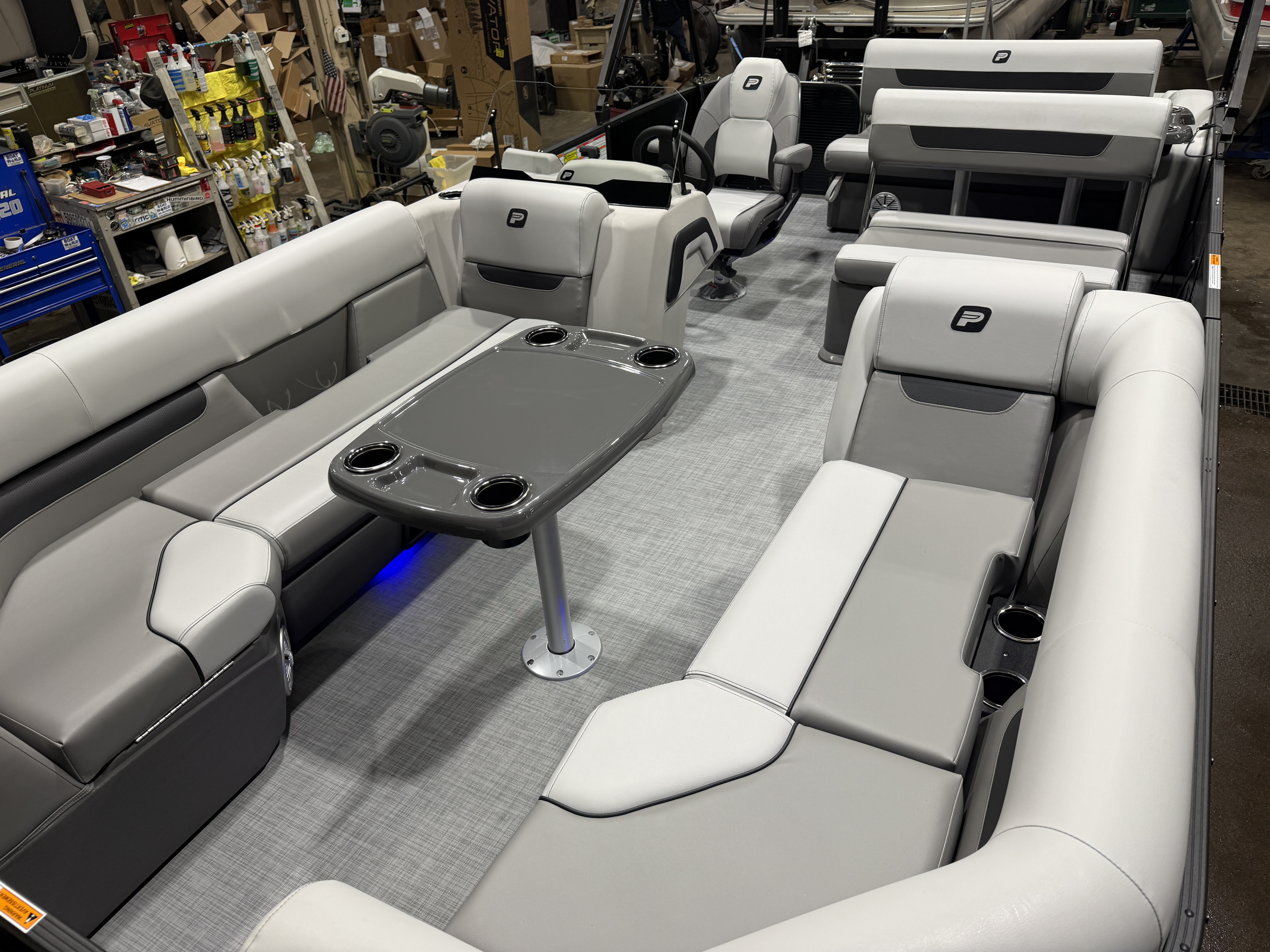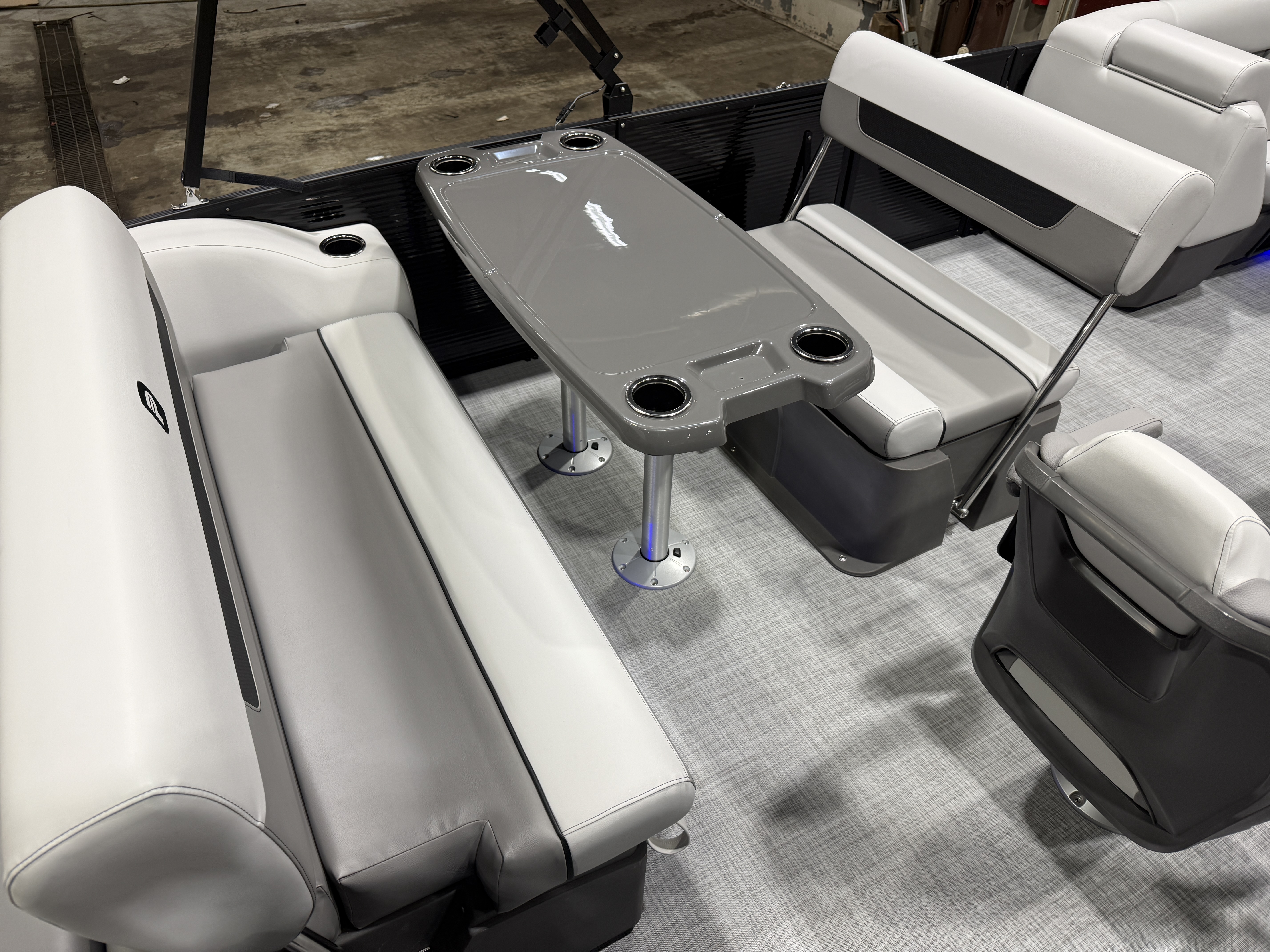 2026 Princecraft Vectra 23 RL Dinette Swingback Pontoon & Mercury 4-Stroke EFI. This 22' Rear Lounger Pontoon Has Chaise Lounge Seating Up Front With Storage, Flip Flop Seating With Built-In Cooler, Rear Facing Lounge Seating With Storage, Captain's Chair, Black Out Package (Black Bimini, Corner Caps, Wall Rails, Rub Rail), All Vinyl Floor, Bluetooth Radio/MP3 Player With 4 Speakers, Multiple Cup Holders, Mood Package, New Battery, Bimini Top, Mooring Cover, LED Docking Lights, LED Nav Lights, Two Tables, Built-In 29 Gallon Gas Tank, Tilt Steering, Helm Storage, Rear Swim Deck With 4 Step Stainless Steel Ladder, Front Deck, 25" Tubes. Rated For 12 People.