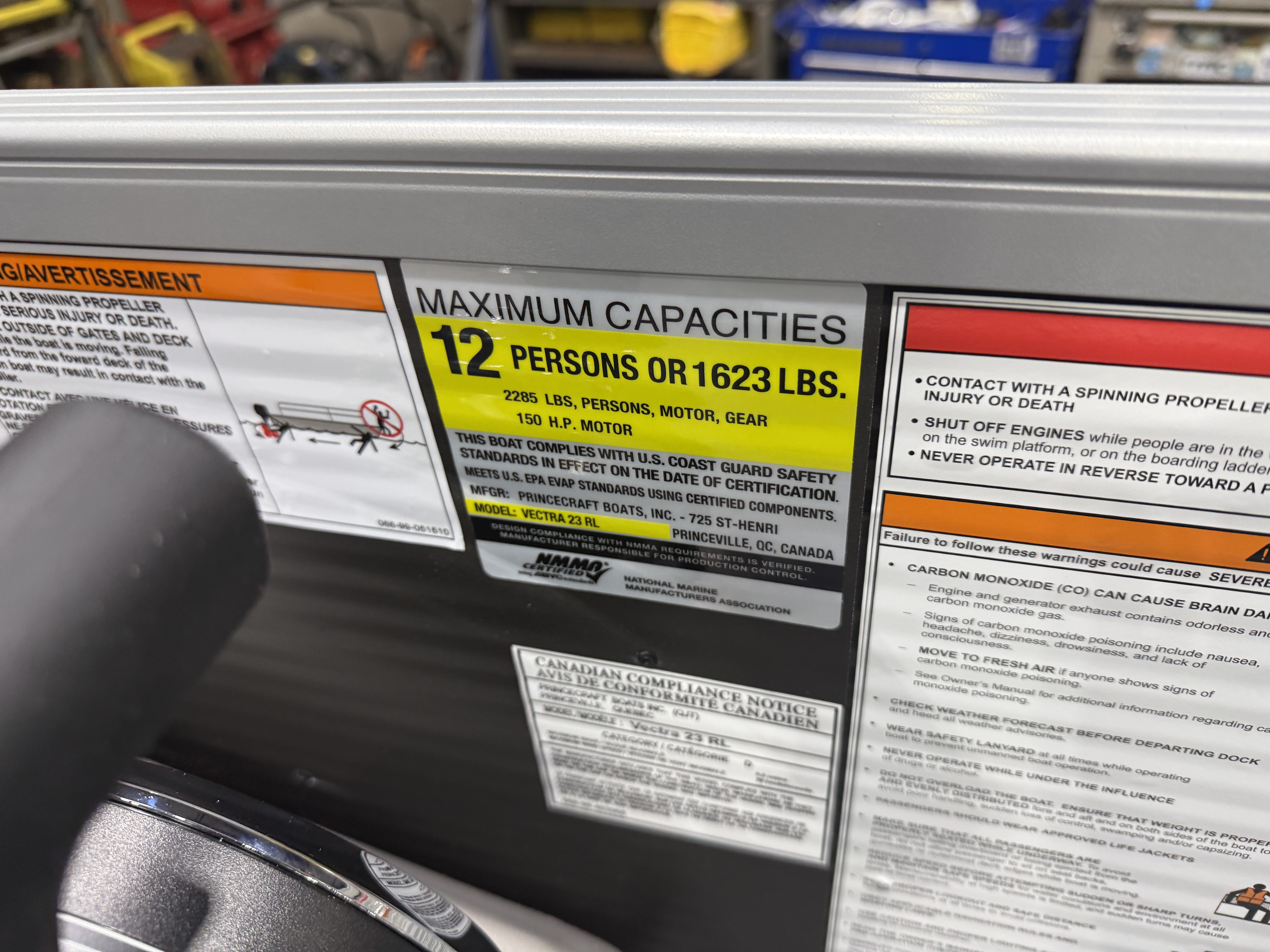 2026 Princecraft Vectra 23 RL Side By Side Swingback Pontoon & Mercury 4-Stroke EFI. This 22' Rear Lounger Pontoon Has Lounge Seating Up Front With Storage, Rear Facing Lounge Seating With Storage, Side By Side Captain's Chairs, All Vinyl Floor, Bluetooth Radio/MP3 Player With 4 Speakers, Multiple Cup Holders, Mood Package, New Battery, Bimini Top, Mooring Cover, LED Docking Lights, LED Nav Lights, Two Tables, Built-In 29 Gallon Gas Tank, Tilt Steering, Helm Storage, Huge Rear Swim Deck With 4 Step Stainless Steel Ladder, Nice Front Deck, 25" Tubes. Rated For 12 People.