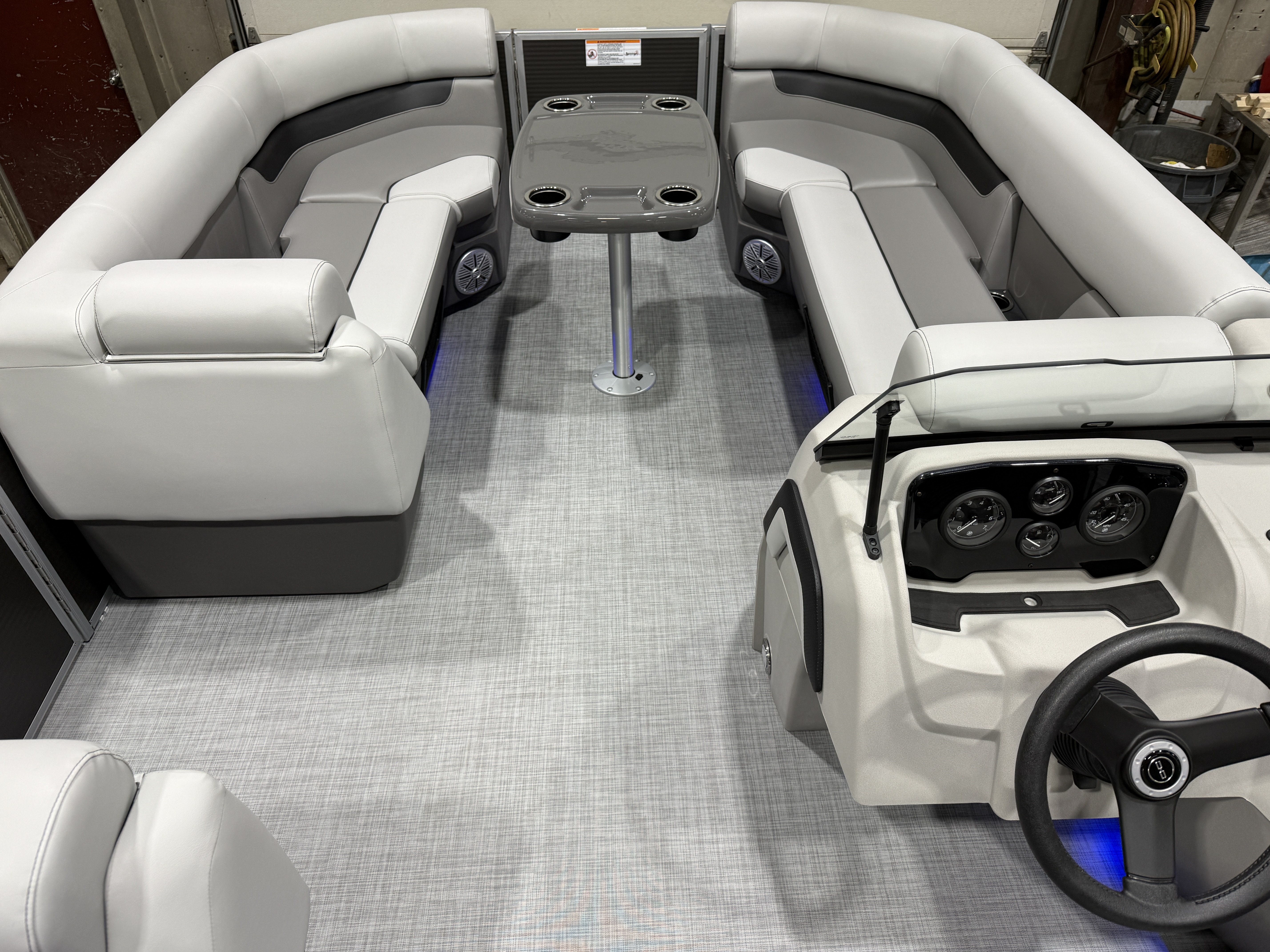 EFI. This 22' Rear Lounge Swingback Tri-Toon Has Lounge Seating Up Front With