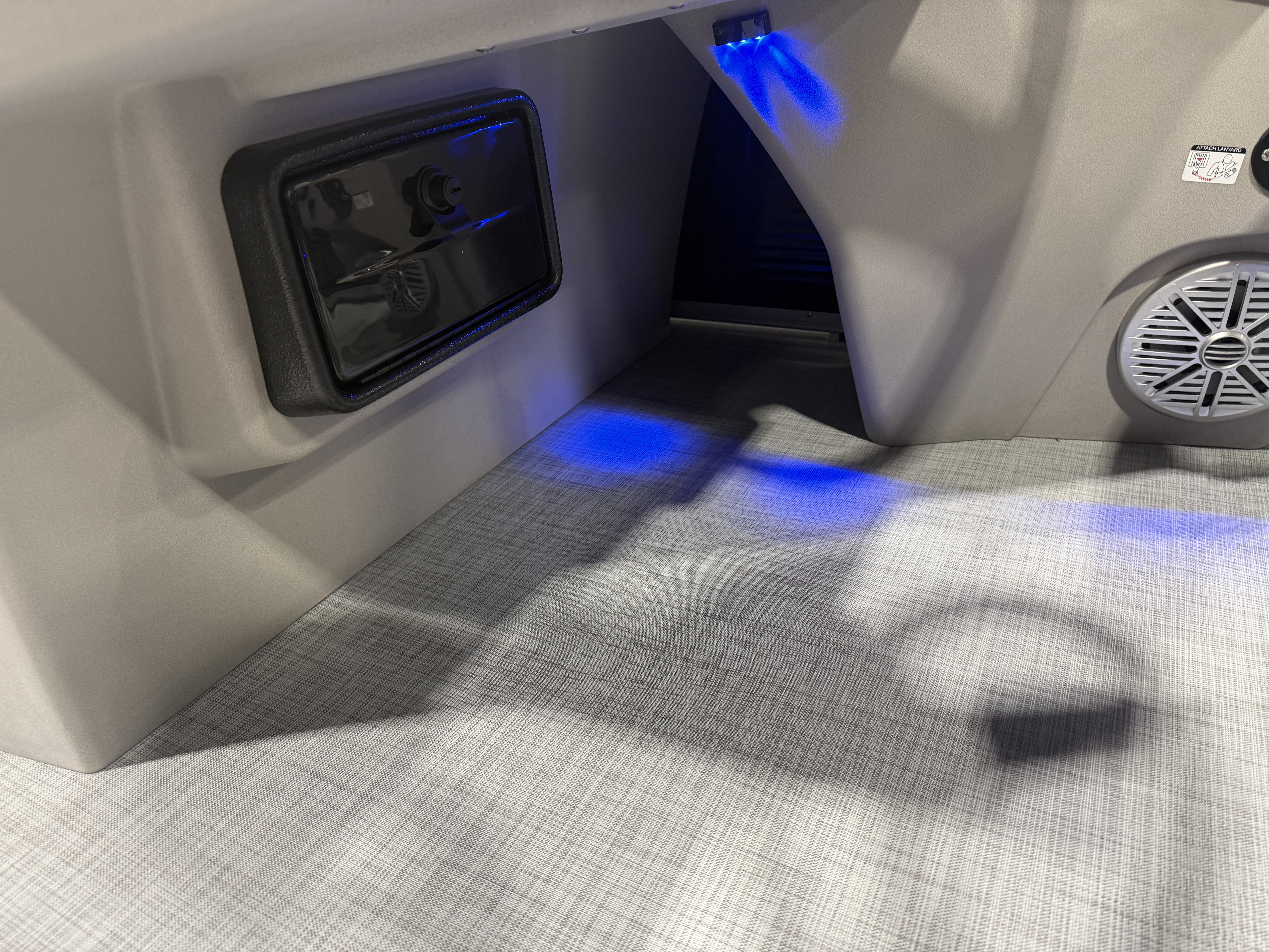 EFI. This 22' Rear Lounger Tri-Toon Has Lounge Seating Up Front With Storage,