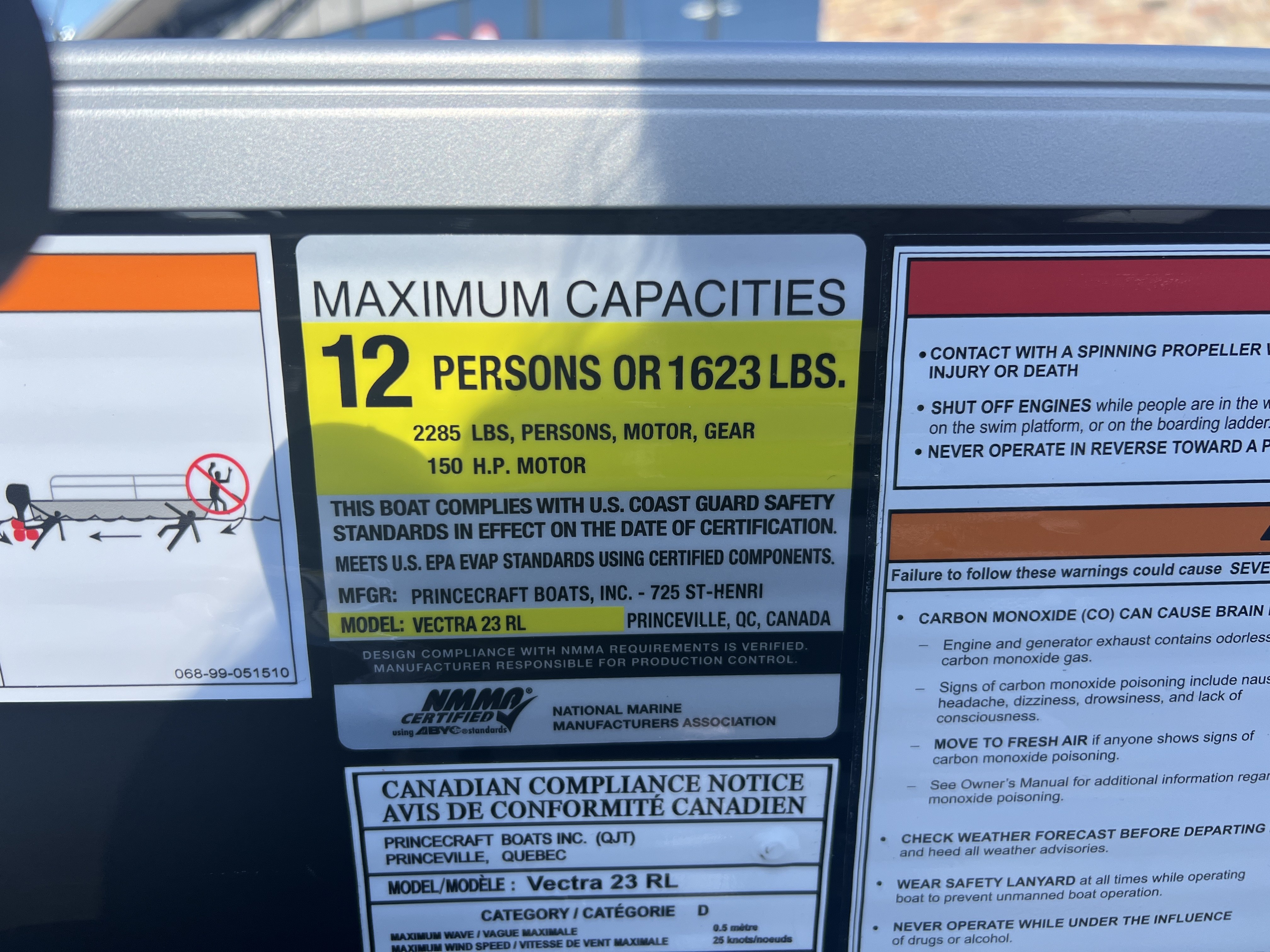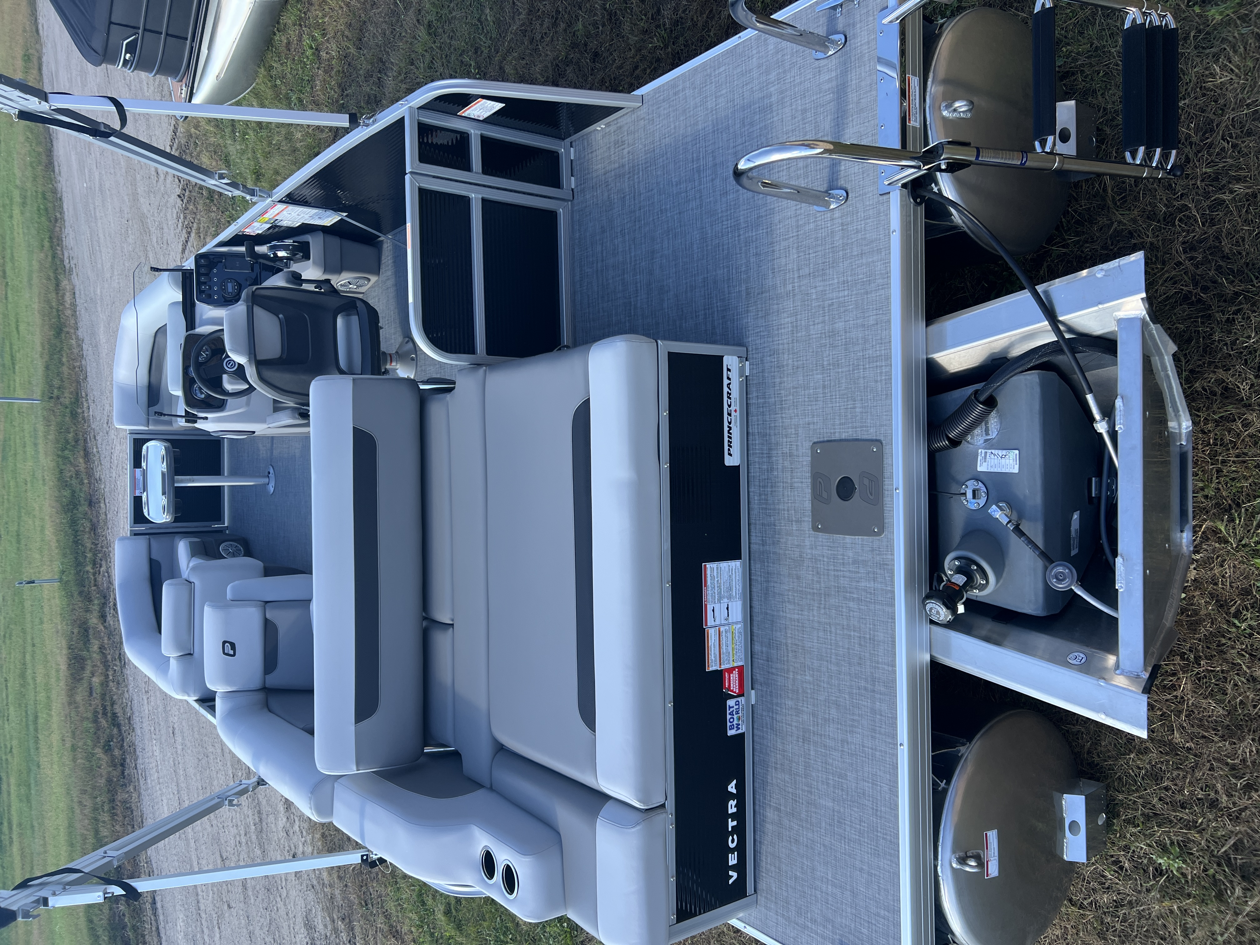 2026 Princecraft Vectra 23 RL Lounge Swingback Pontoon & Mercury 4-Stroke EFI. This 22' Rear Lounger Pontoon Has Lounge Seating Up Front With Storage, Wrap Around Chaise Lounge Seating With Storage, Rear Facing Lounge Seating With Storage, Captain's Seat, All Vinyl Floor, Bluetooth Radio/MP3 Player With 4 Speakers, Multiple Cup Holders, New Battery, Bimini Top, Mood Package, Mooring Cover, LED Nav Lights, LED Docking Lights, Table, Wireless Phone Charger, Built-In 29 Gallon Gas Tank, Tilt Steering, Rear Swim Deck With 4 Step Stainless Steel Ladder, Nice Front Deck, 25" Tubes. Rated For 12 People.