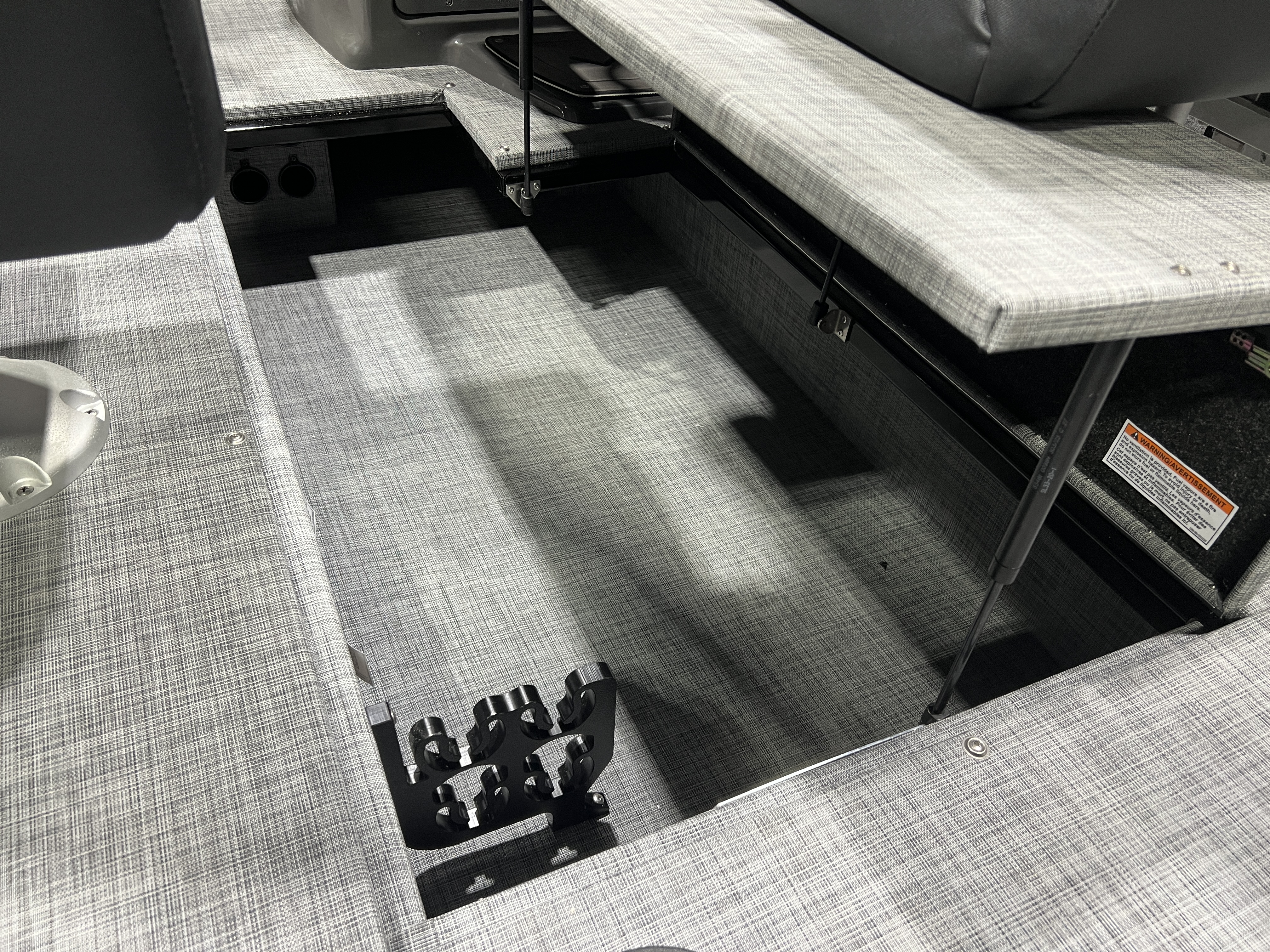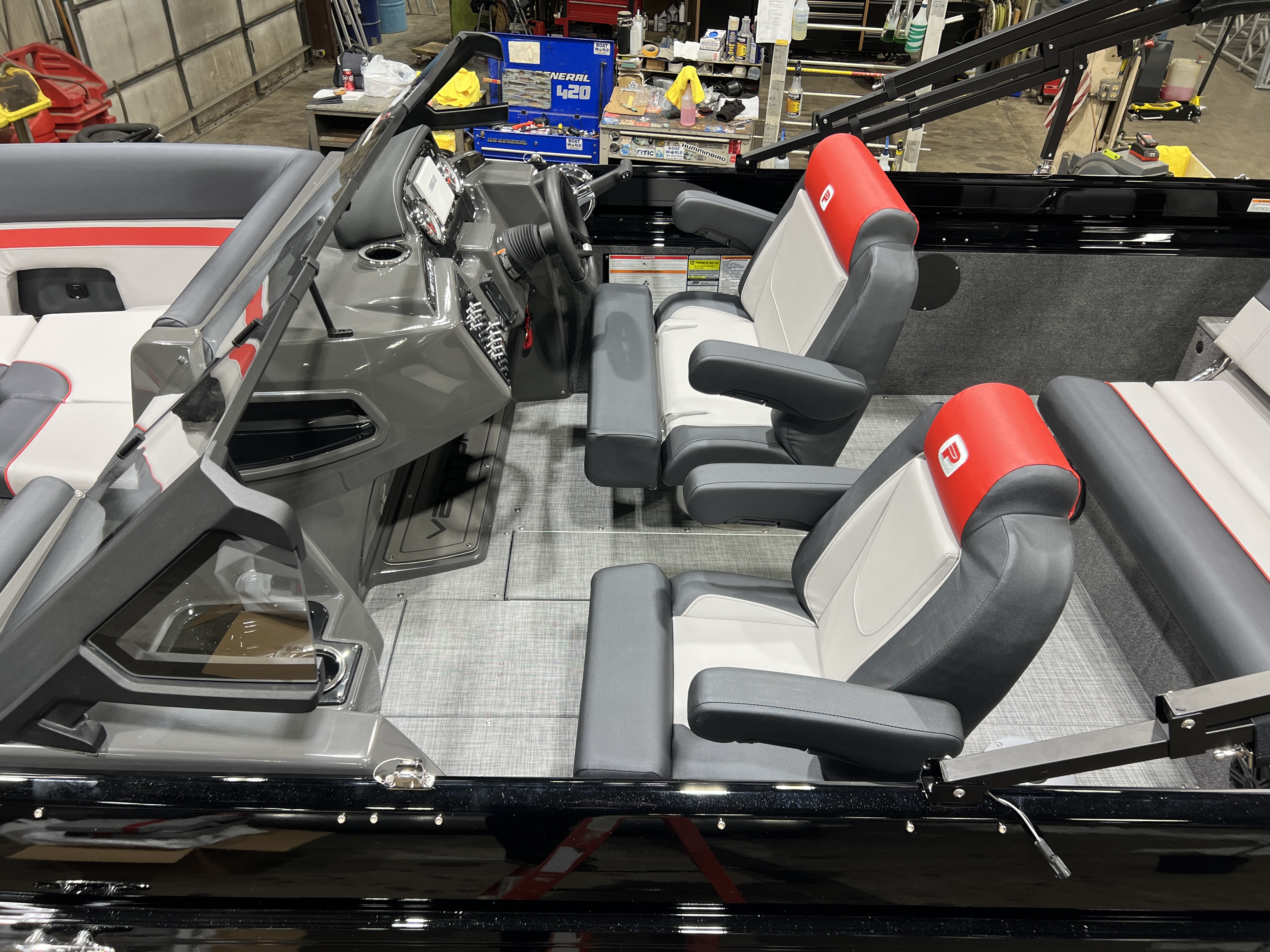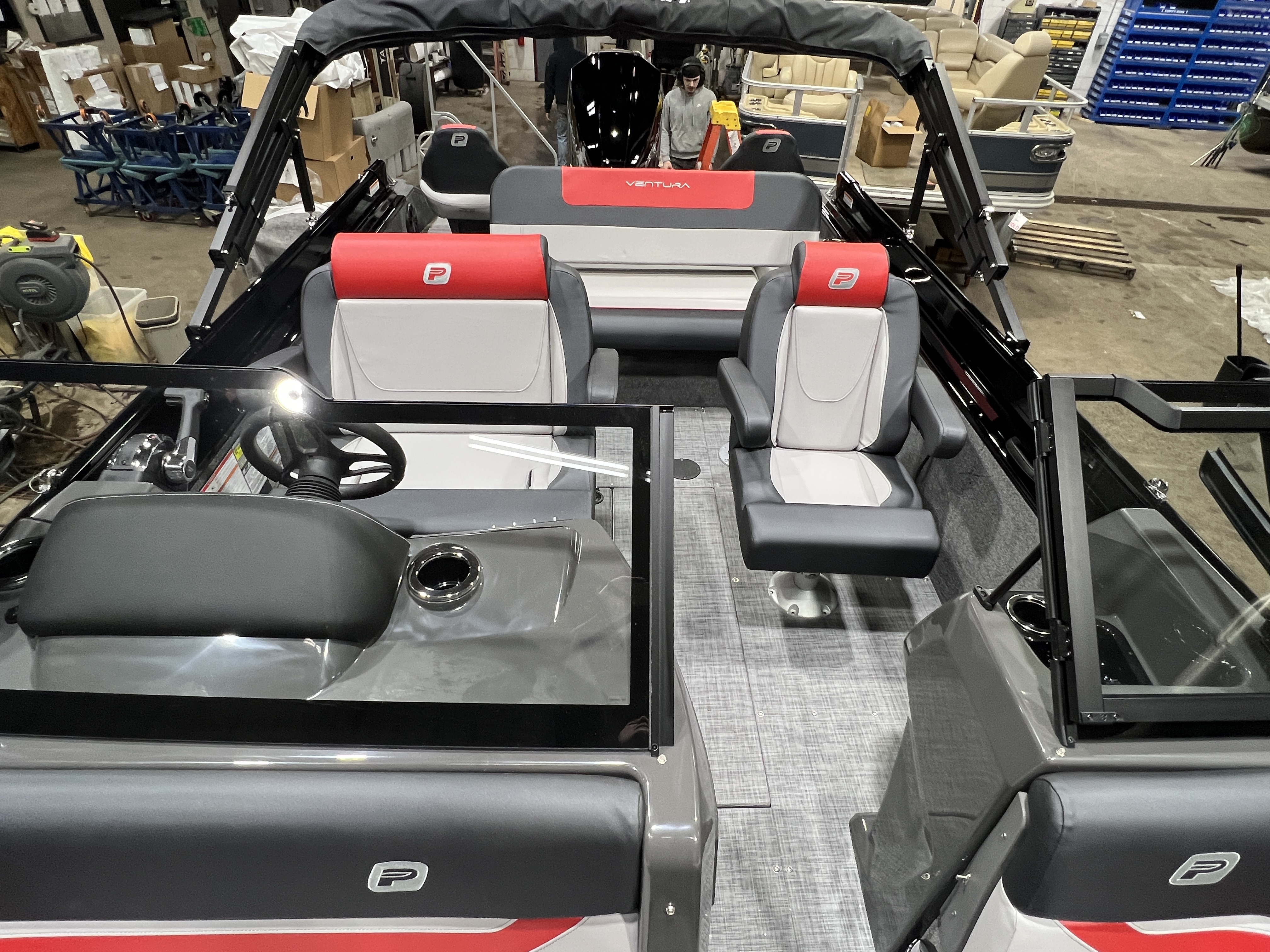 2026 Princecraft Ventura 230 WRL Swingback Fishing Deckboat & Mercury 4-Stroke EFI. This 22' Walk Through Windshield Deck Boat Has A Front Deck Wired For Trolling Motor (Not Included But Available) & Fishing Seat, Front Deck Storage Compartment w/ 3 Battery Trays & Battery Charger, Front Bench Seating (1 Chaise Lounge) With Storage, Side By Side Huge Captain's Seats w/Bolsters, Swingback Lounge Seating w/Storage, 2 Rear Fishing Seats, Rear Storage, Stern Seat Cushion, Rear Livewell/Baitwell, NAV Lights, LED Docking Lights, Floor Storage w/Rod Storage, All Vinyl Flooring, Protective Cover, Built-In 46 Gallon Gas Tank, New Battery, Entertainment Package (Ski Tow Bar, Swim Platform, Bolster Captain's Chair), Seastar Hydraulic Steering w/Tilt, Simrad Depthfinder w/Total Scan (Side Imaging), Black Bimini Top, Pop Up Privacy Enclosure, Premium High Power Stereo System, Rod Holder Support (Starport Track Mount Included), Bait Board & Acc Tray, Storage System, Platform Accessory, Battery Switch, 2 Quick Release Fender Hangers, Multiple Cup Holders, Table. Rated For 12 People.