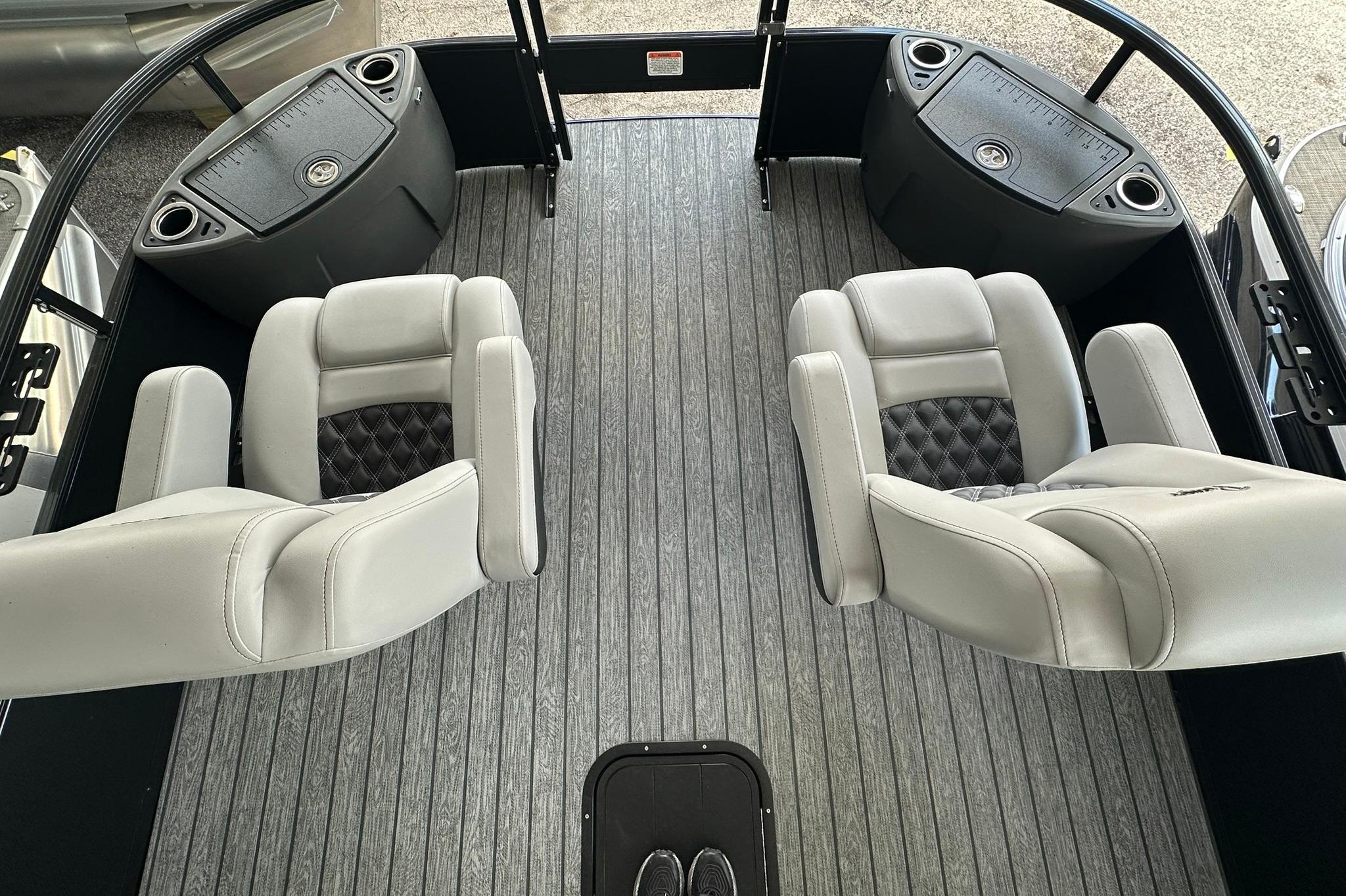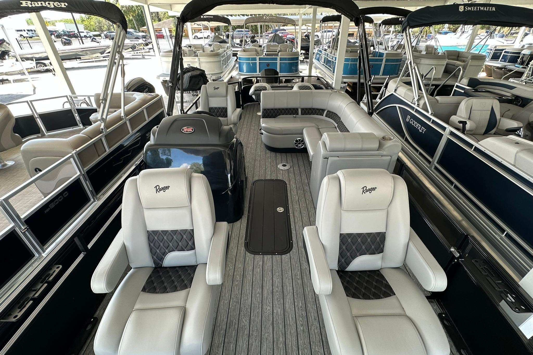 2026 Ranger® Reata 223F – Mercury 200L FourStroke – Tandem Axle TrailerThe 2026 Ranger Reata 223F is a premium fishing pontoon built for anglers and families who want serious fishability without sacrificing comfort. Powered by a Mercury 200L FourStroke, this triple-log platform delivers smooth acceleration, strong performance, and confident handling on larger bodies of water.With Ranger’s reputation for quality and thoughtful design, the 223F blends dedicated fishing features with luxury seating and storage throughout — making it ideal for full days on the water.Performance & ConstructionMercury 200L FourStroke Outboard (200HP)Triple-Log Performance DesignWide 102” Deck PlatformSmooth, Stable Ride for Fishing & CruisingTandem-Axle Trailer with Tandem Brakes IncludedThe triple-log setup paired with the Mercury 200L provides excellent lift, improved handling, and the power needed for cruising, fishing, or pulling tubes with ease.Fishing Features(2) Fore Deluxe Adjustable Fishing Chairs with Storage(2) Aft Fold-Down Fishing Chairs7’6” Lockable Starboard Rod Box with Organizer12-Gallon Aerated Livewell (Bow)15-Gallon Aerated Livewell (Aft)Dedicated Fishing Stations with Tool & Rod HoldersBattery Storage CompartmentsDesigned for anglers, the layout provides multiple fishing positions, organized storage, and livewell capacity for serious days on the water.Comfort & ConvenienceMulti-Density Foam SeatingMarine-Grade UpholsteryDrink Holders ThroughoutSpacious Lounge SeatingOpen Deck Layout for Easy MovementThe Reata series is known for combining fishing functionality with comfort, making it perfect for both anglers and families.Specifications DimensionsLength: 24′ 2″Deck Width: 102″Capacity & WeightMax HP: 200 HPFuel Capacity: 52 GallonsAverage Package Weight: 4,635 lbsMax Person Capacity: 11PricingMSRP / Base Price: $65,125Additional Options:Tandem Axle Trailer w/ Tandem Brakes: $5,700Dealer Prep: $850Destination Charges: $1,725Total Package Price: $73,400Estimated Payment$613 / Month*Payment based on approved credit. Terms and conditions may vary.Why the Ranger 223F?✔ Triple-log performance and stability✔ Mercury 200L FourStroke power✔ Dual livewells and full fishing setup✔ Premium Ranger build quality✔ Tandem axle trailer includedThe 2026 Ranger Reata 223F is a well-balanced fishing pontoon that delivers performance, comfort, and capability in one complete package.If you’re looking for a fully equipped fishing pontoon that’s ready for the water, this one deserves a closer look.Call for availability, additional details, or to schedule a showing.