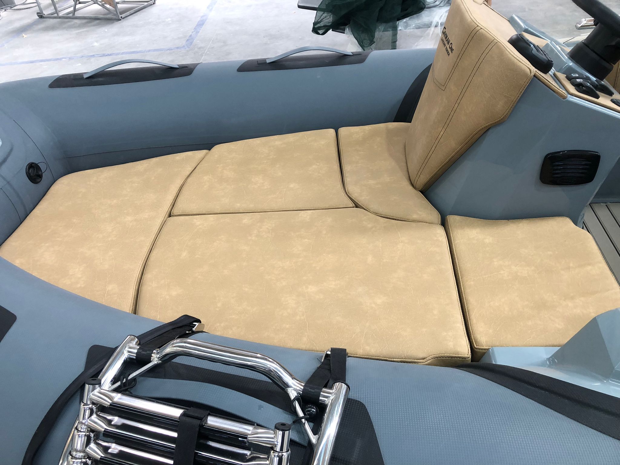 3 Stainless steel cleats, Anchor locker and counter-moulded chain storage, Battery switch, Bow nose in fiberglass, Cockpit with seadeck, Complete console, Complete electrical system, Complete external cushions, anti UV water resistant with closed cell, Dinghy cover, Electric bilge pumps with automatic/manual control, Electric horn, Electrical panel with keypad, Full mechanical steering, HERTZ Stereo system with 2 speakers, Luxury deshboard, Luxury uhpostery, Manual inflator, Mooring hooks, Navegation lights, Seat facing the console, Set of lifting hooks, Stainless steel handrail covered in eco-leather, Stern locker for mooring accessories, Telescopic stainless steel ladder, Tubes colour customization.