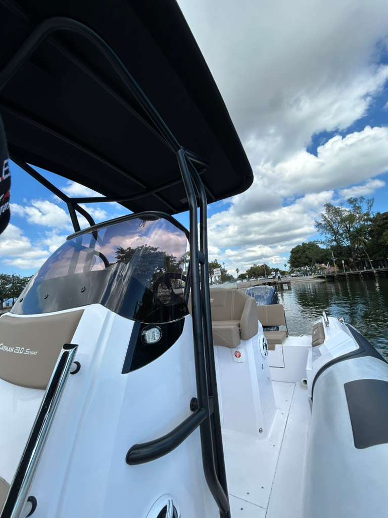 Featuring a customizable engine, the Cayman 23.0 Sport Touring offers unmatched performance on the water. Whether you’re looking for speed, power, or fuel efficiency, this boat can be configured to meet your specific needs. Its deep-V hull design ensures a stable and smooth ride, even in challenging conditions, while its innovative design ensures optimal handling and maneuverability.