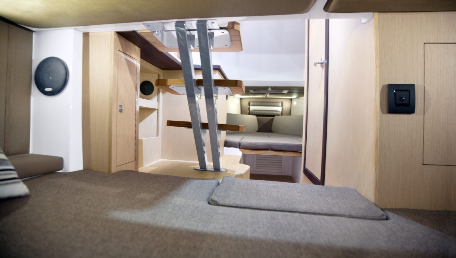 Inside the cabin, there are four beds that provide comfortable sleeping arrangements for passengers who want to spend the night on board. The dinette space is equipped with a table and electric grill, making it perfect for serving meals or hosting social gatherings.