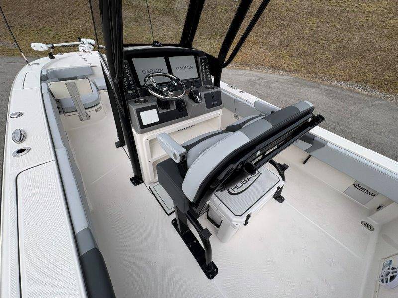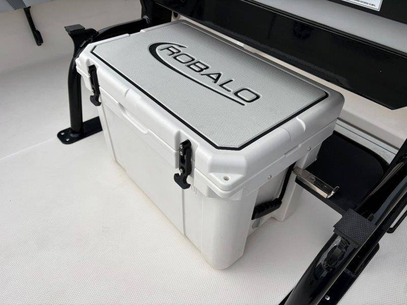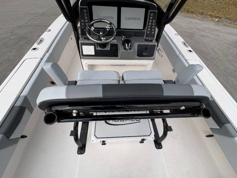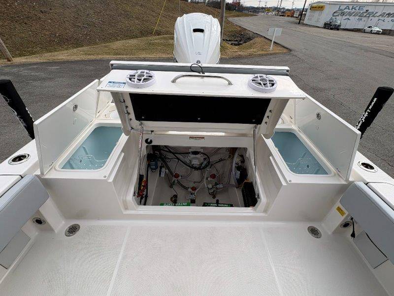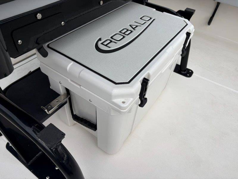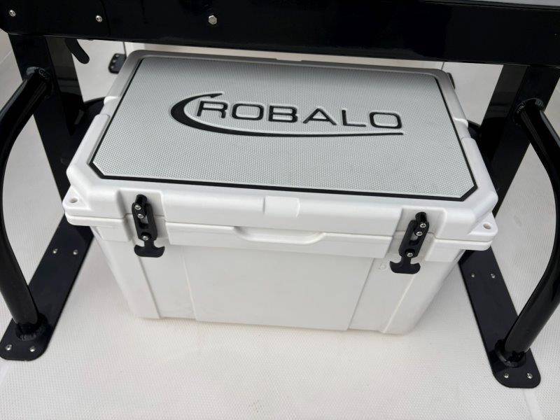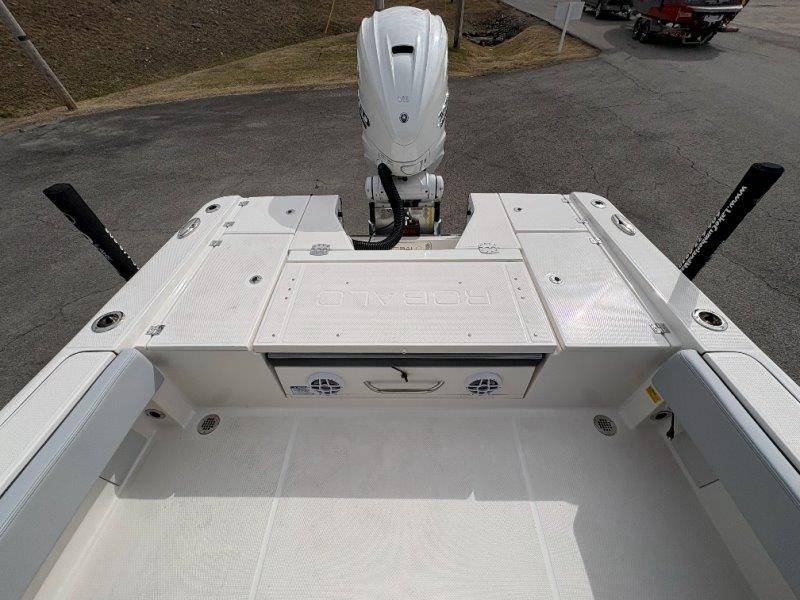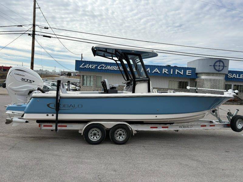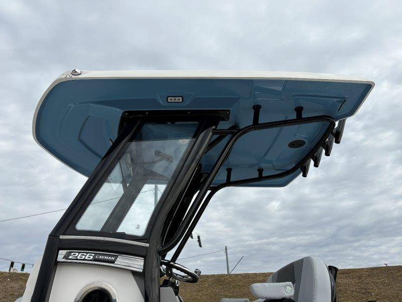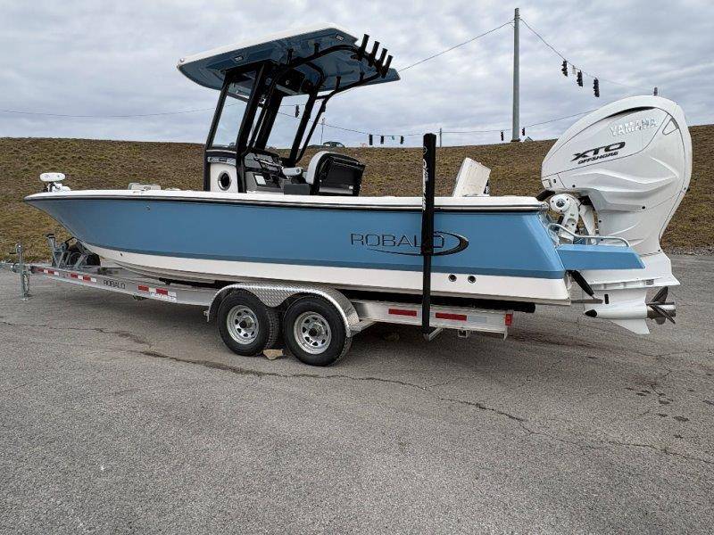 2026 Robalo 266 Cayman UNIQUE KEY FEATURES • Aft Double-Wide Seat with Folding Backrest and Custom Stainless Steel Hardware (Converts to Casting Platform) • Bow Center Insulated Livewell (20 gallons) with Dedicated Livewell Pump, LED lighting, Blue Gelcoat Finish with Adjustable Flow Valve • Bow Cushions (Removable) • Bow Floor Storage with Fiberglass Lid • Bow Rider U-Shaped Seating with Rod Storage Underneath • Cockpit and Bow Coaming Bolsters • Cockpit LED Courtesy Lights - Blue • Dive Swim Platforms (Port and Starboard with Ladder) • Fiberglass Hardtop with Custom Powder Coated Frame (Black or White) Includes: Electronics Box, Two Tri Color Map Lights (White Dimmable, Red, And Blue), Spreader Lights with Dual Color (White and Blue Dimmable) • Forward Starboard Insulated Fishbox (45 gallon) • Horizontal Rod Storage under Gunwale (Port and Starboard) • Hydraulic Jack Plate with Water Pressure Indication - 6" • Kevlar Reinforced Hull • Leaning Post with Dual Flip Up Bolsters, Backrest, Rod Holders (4), 50 Liter Cooler • Limited Lifetime Hull Warranty • Poured Composite Transom • Premium Stain Resistant Silicone Cockpit Fabric • Raw Water Washdown • RTM Fiberglass Console Door - Friction Hinged and Lockable Hull Side Gelcoat - Atlas Blue Cockpit Interior - Harbor Mist Canvas Color - Black (If Equipped) Canvas Accessories Color - Black (If Equipped) Hard Top Complete (Black Powder Coated) Hardtop Underside Gel Color - Atlas Blue Forward Canvas Fly - Black Canvas Mooring Cover Twin Garmin GPSMap 1243XSV Garmin NMEA 2000 Package with Engine Data and Audio Interface -Yamaha Engine Trolling Motor with Triple Charger - Minn Kota Riptide Terrova 36V 112lb Thrust with Wireless Remote Lenco Pro Trim Tab System Seadek Helm Mat - White Bow Table with Dedicated Storage Stainless Steel Drink/Rod Holders (4) Leaning Post with Reversible Backrest, 2 Rod Holders and Arm Rest- Black Powder Coated Custom Anchor 5 Year Premium Level Limited Component Warranty Tandem Axle Aluminum Trailer with Galvanized Wheels, Side Guides and Bow V-Stop Spare Tire Kit - Galvanized Wheel