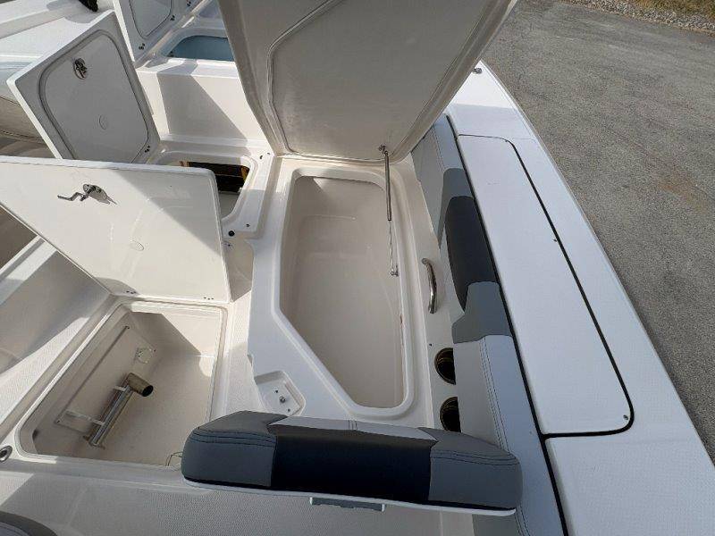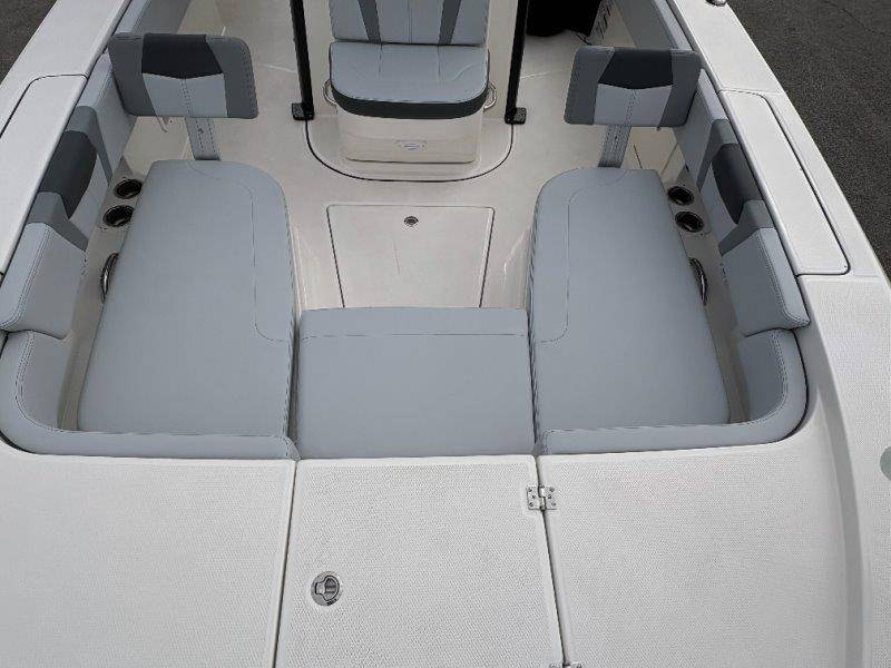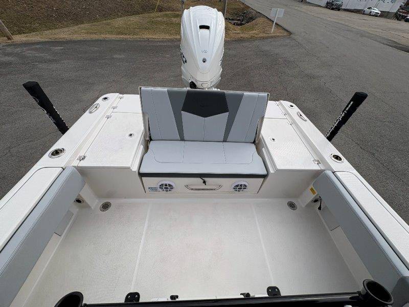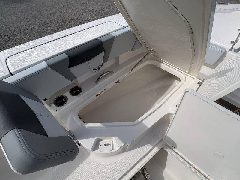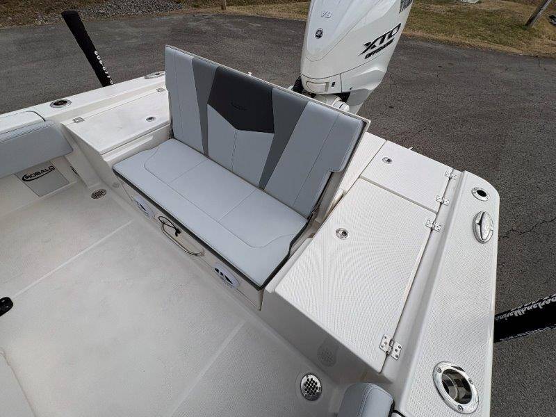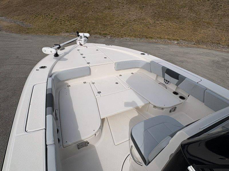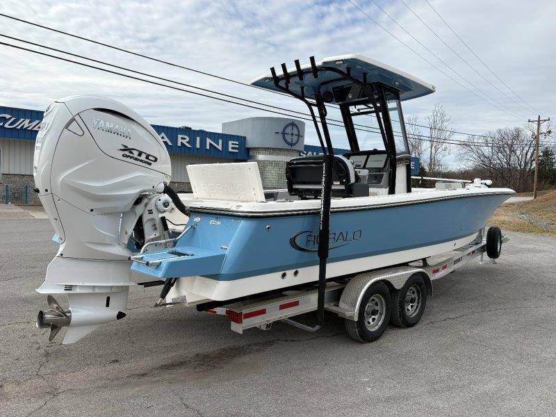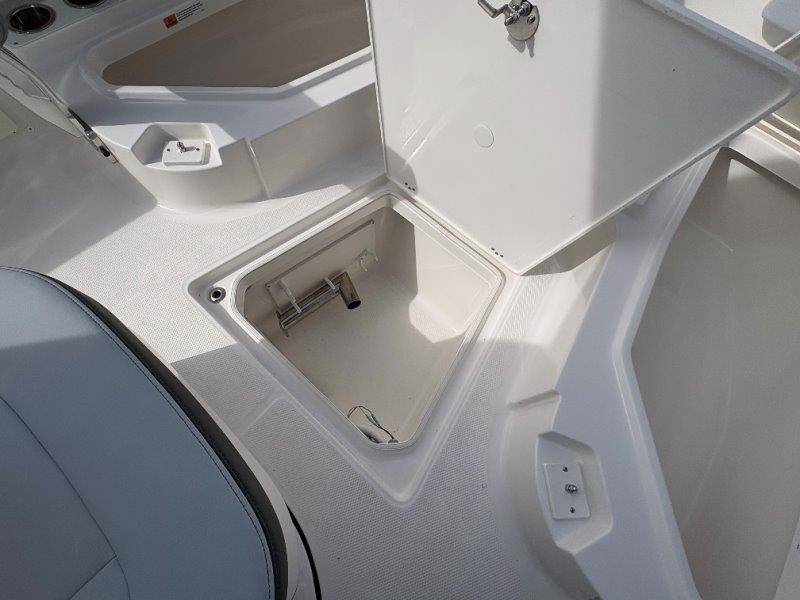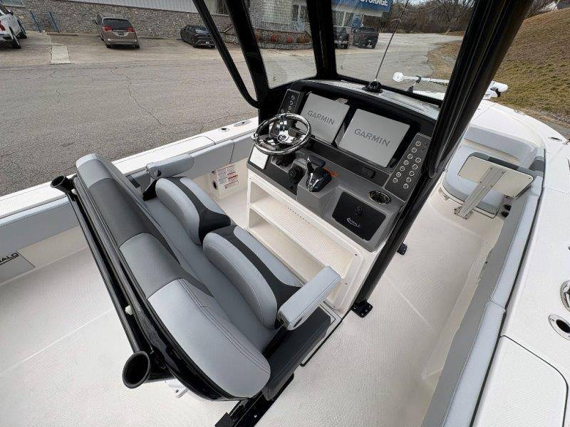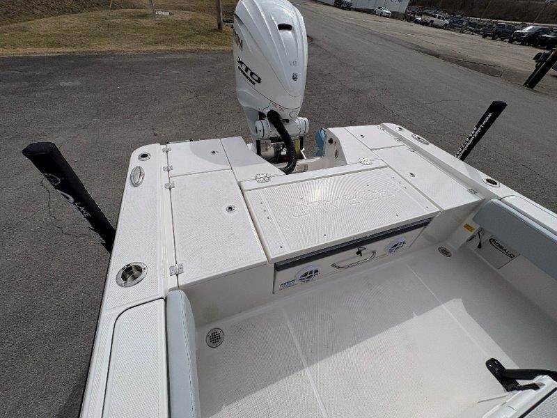2026 Robalo 266 Cayman UNIQUE KEY FEATURES • Aft Double-Wide Seat with Folding Backrest and Custom Stainless Steel Hardware (Converts to Casting Platform) • Bow Center Insulated Livewell (20 gallons) with Dedicated Livewell Pump, LED lighting, Blue Gelcoat Finish with Adjustable Flow Valve • Bow Cushions (Removable) • Bow Floor Storage with Fiberglass Lid • Bow Rider U-Shaped Seating with Rod Storage Underneath • Cockpit and Bow Coaming Bolsters • Cockpit LED Courtesy Lights - Blue • Dive Swim Platforms (Port and Starboard with Ladder) • Fiberglass Hardtop with Custom Powder Coated Frame (Black or White) Includes: Electronics Box, Two Tri Color Map Lights (White Dimmable, Red, And Blue), Spreader Lights with Dual Color (White and Blue Dimmable) • Forward Starboard Insulated Fishbox (45 gallon) • Horizontal Rod Storage under Gunwale (Port and Starboard) • Hydraulic Jack Plate with Water Pressure Indication - 6" • Kevlar Reinforced Hull • Leaning Post with Dual Flip Up Bolsters, Backrest, Rod Holders (4), 50 Liter Cooler • Limited Lifetime Hull Warranty • Poured Composite Transom • Premium Stain Resistant Silicone Cockpit Fabric • Raw Water Washdown • RTM Fiberglass Console Door - Friction Hinged and Lockable Hull Side Gelcoat - Atlas Blue Cockpit Interior - Harbor Mist Canvas Color - Black (If Equipped) Canvas Accessories Color - Black (If Equipped) Hard Top Complete (Black Powder Coated) Hardtop Underside Gel Color - Atlas Blue Forward Canvas Fly - Black Canvas Mooring Cover Twin Garmin GPSMap 1243XSV Garmin NMEA 2000 Package with Engine Data and Audio Interface -Yamaha Engine Trolling Motor with Triple Charger - Minn Kota Riptide Terrova 36V 112lb Thrust with Wireless Remote Lenco Pro Trim Tab System Seadek Helm Mat - White Bow Table with Dedicated Storage Stainless Steel Drink/Rod Holders (4) Leaning Post with Reversible Backrest, 2 Rod Holders and Arm Rest- Black Powder Coated Custom Anchor 5 Year Premium Level Limited Component Warranty Tandem Axle Aluminum Trailer with Galvanized Wheels, Side Guides and Bow V-Stop Spare Tire Kit - Galvanized Wheel