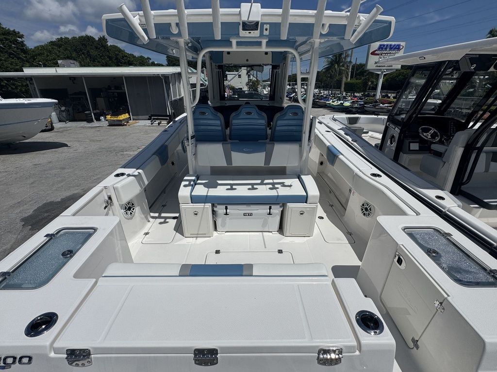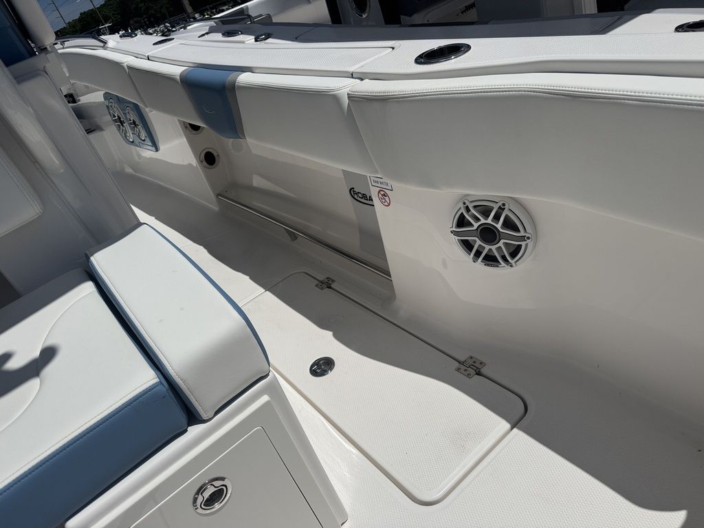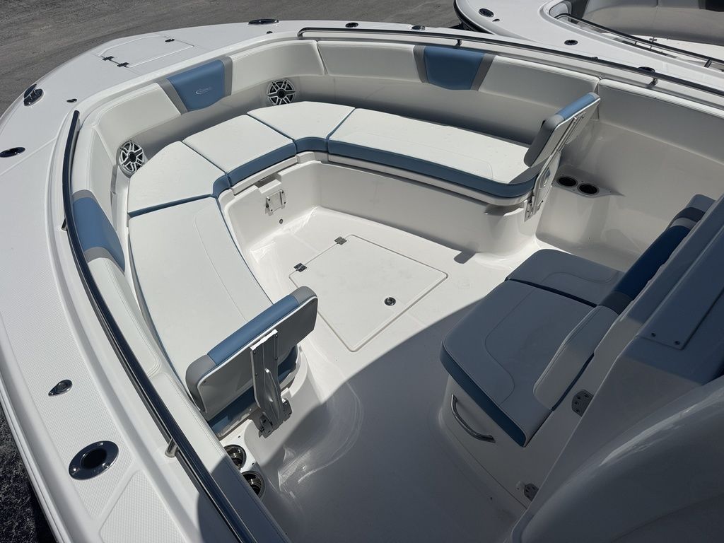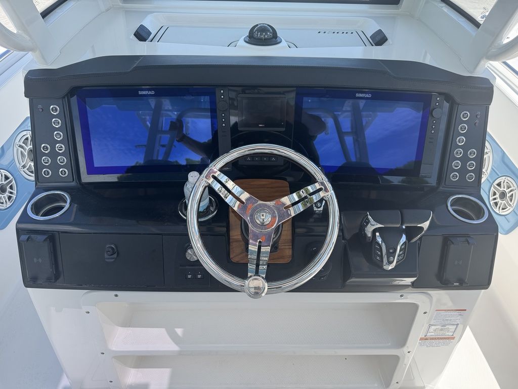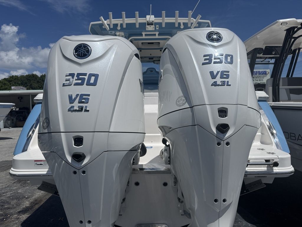 Key Features- Powerful Engines: Twin 350hp Yamaha outboards with Helm Master Joystick for precise control and performance.