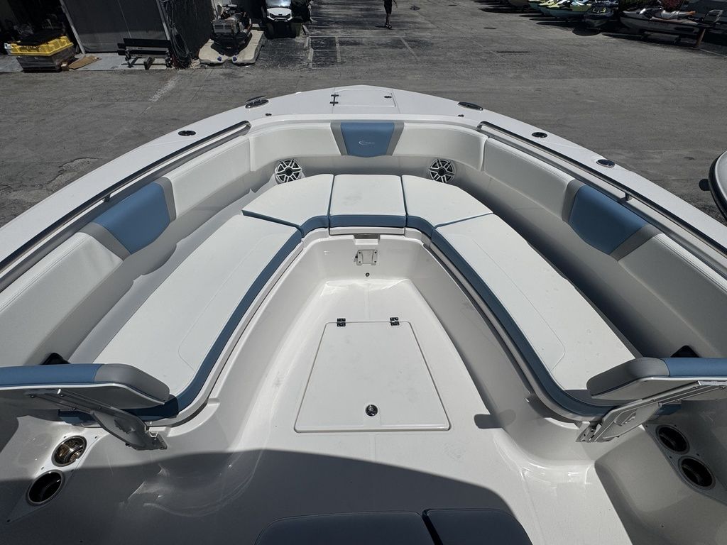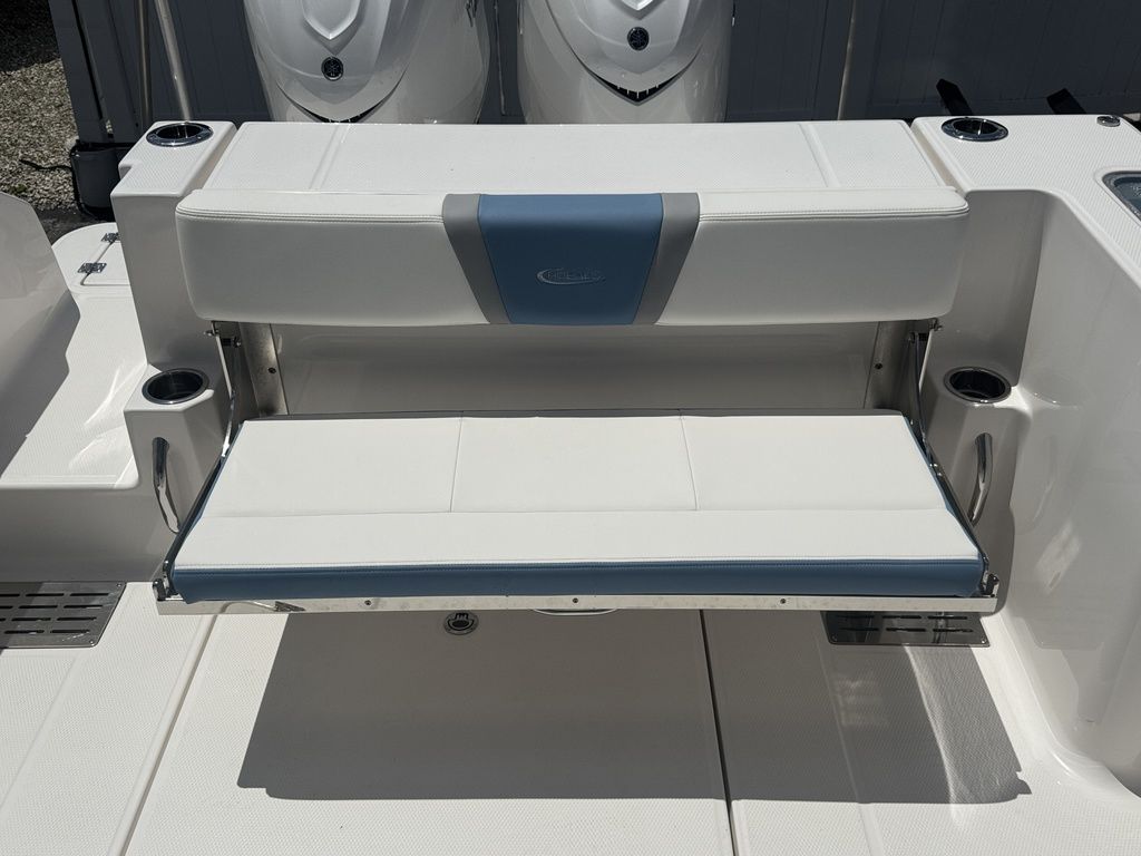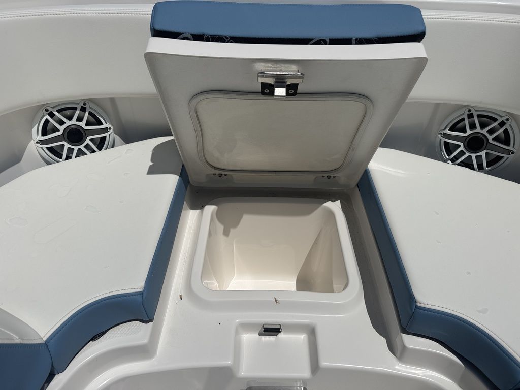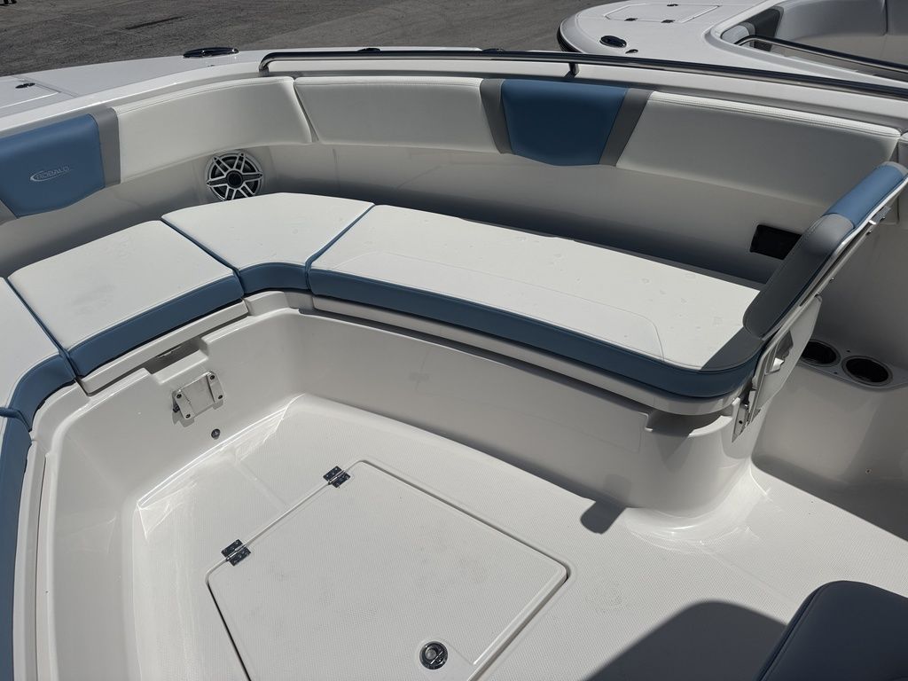- Factory-Installed Extras: Yamaha Helm Master Joystick, Forward Canvas, Dual Simrad NSS4 16", B175M Transducer Upgrade, Simrad VHF Radio, Lenco Pro Trim Tabs, Dual Color Underwater LED Lighting, Seadek Helm Mat, Overboard Discharge, Cabin Wood Flooring, Tackle Storage, 5-Year Premium Limited Warranty, Aluminum Trailer with Spare.