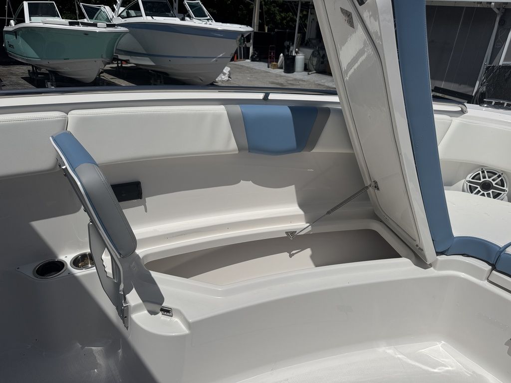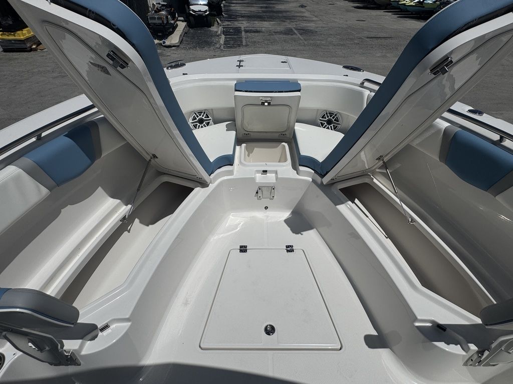 - Fishing-Friendly Design: 9’8” beam, 50-gallon livewell, and ample rod storage for serious anglers.