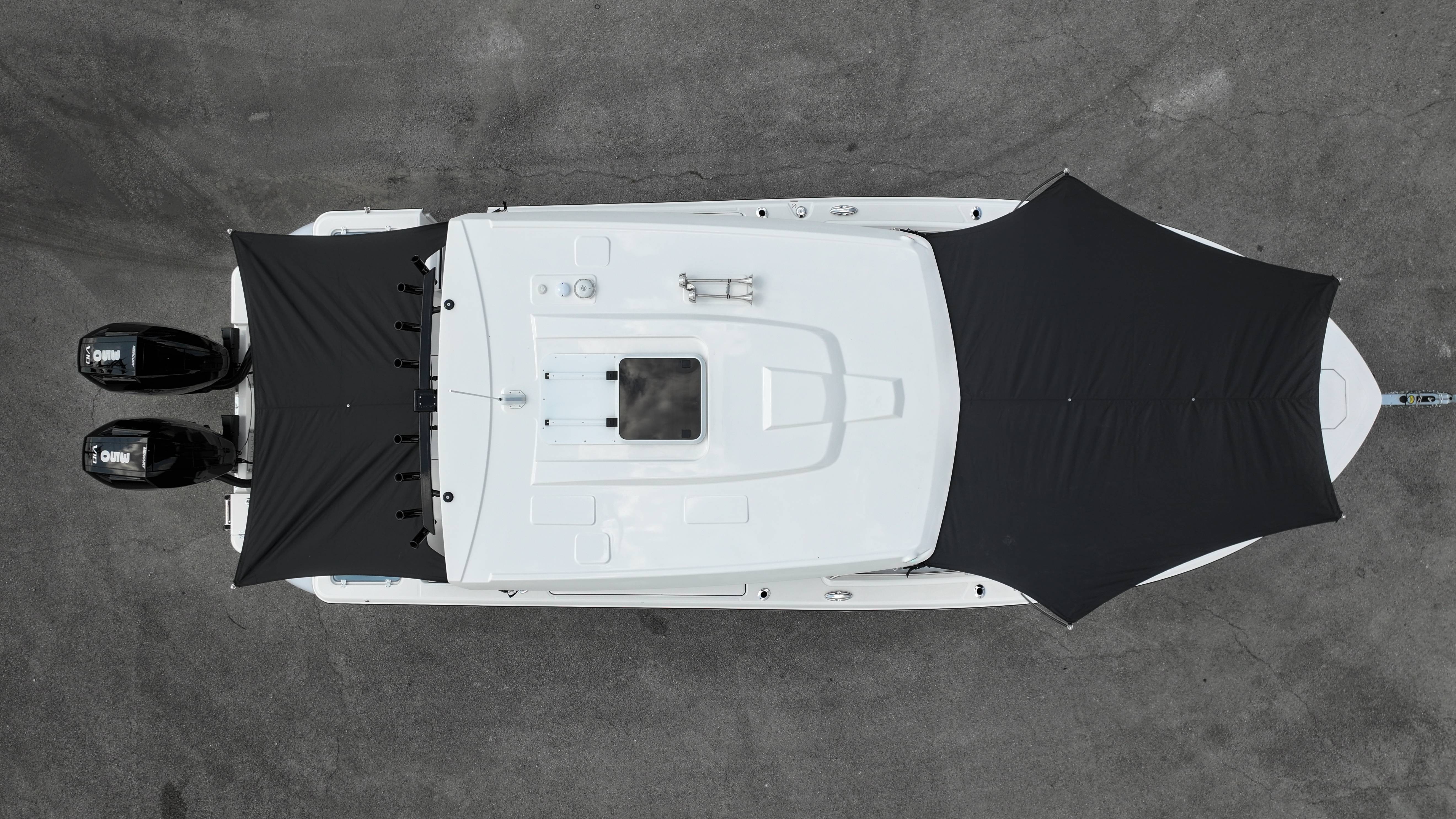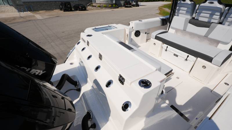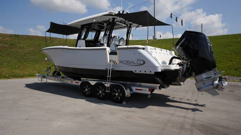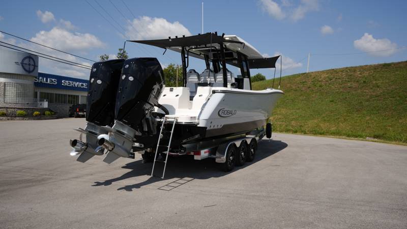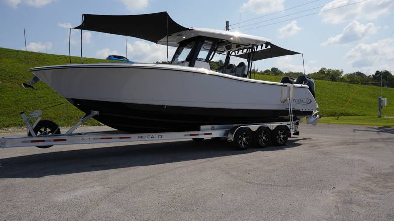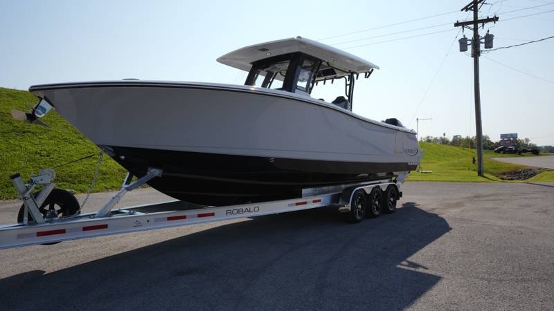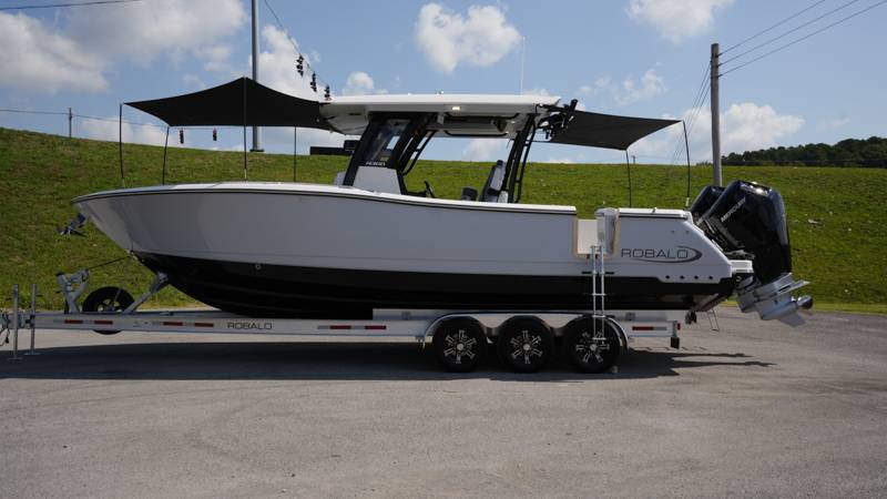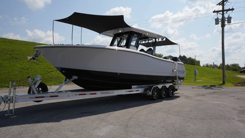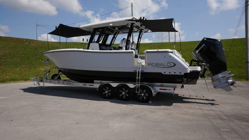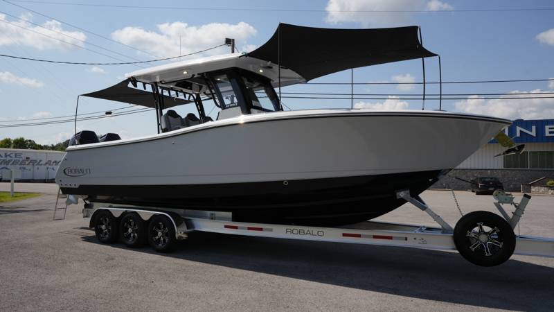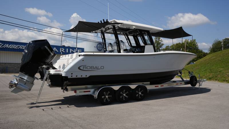 2026 Robalo R300 UNIQUE KEY FEATURES • Aft Cockpit Insulated Fish Boxes (70 Gallons) with Overboard Drains and Discharge Pumps • Aft Facing Bench Seat with Stainless Steel Drink Holders and Carry On 65 Qt Yeti Cooler • Bow Casting Platform Converts to U-Shaped Seating with Removable RTM Fiberglass Filler • Bow Cushions - (Removable) • Cockpit Table and Bow Filler with Dedicated Storage • Custom Bonded Electric Folding Front Windshield and Side Windshield Glass with Integrated Wiper • Electric Freshwater Toilet (Porcelain) Head System with 9 Gallon Holding Tank • Fiberglass Console Door - Friction Hinged with Lockable Latch • Fiberglass Hardtop with Custom Powder Coated Frame (Black or White) Includes: Overhead Sky Light, Rod Holders (8), Electronics Box, Tri Color Map Lights (4), Spreader Lights with •Dual Color (White and Blue - Dimmable) (5), Blue Overhead Courtesy Lighting, Speakers (2), Fresh Water Washdown Shower, and LED Cast Robalo Logo • Fresh Water System with Overhead Shower in Hardtop • Full Transom Seat Folds Flush into Transom Wall • JL Audio includes: (8) Speakers and (2) 10" Subwoofers with LED Lighting, 600 Watt/Mono Channel Amplifier, 800 Watt/8 Channel Amplifier, Volume Knob, and Sirius Satelite • Kevlar Reinforced Hull • Limited Lifetime Hull Warranty • Port Cockpit Side Entry Door with Custom Stainless Steel Frame and Hardware • Premium Stain Resistant Silicone Cockpit Fabric • Self Bailing Cockpit with Integrated Drain System • Stainless Steel Rod Holders Mounted on Deck Gunnels (8) • Stainless Steel Rod Holders Mounted on Transom Wall (6) • Trim Tabs with Indicator Switch • Triple Forward Facing Helm Seats w/ Flip-Up Bolsters and Fold Down Armrests (Includes Center Seat Electric Forward/Aft Control) • Twin Insulated Livewells (28 Gallons) with Specific Livewell Pumps, LED Lighting, Blue Gelcoat Finish, Adjustable Flow Valves, and Clear Plexiglass Lids • Windlass Package Includes: 250' of Rope, 15' Chain, Anchor Windlass with Lanyard, Bow and Helm Control Hull Bottom Gelcoat - Deepwater Black Hull Side Gelcoat - Alloy Gray Cockpit Interior - Harbor Mist Hard Top Complete (Black Powder Coated) Hardtop Underside Gel Color - Alloy Gray Console Cover and Helm Seat Cover - Black Forward Canvas Fly - Black Canvas AFT Canvas Fly - Black Canvas Garmin GPSMap 1643XSV Dual Screens Transducer B175M Upgrade Lenco Pro Trim Tab System Dual Color LED Underwater Lights (2 each) Seadek Helm Mat - White Overboard Discharge Cabin Wood Flooring Stainless Steel Drink/Rod Holders (4) Tackle Storage 12 Volt DC Electric Reel Receptacle Polished Stainless Steel Anchor Gray Water System Pre-Wire for Trolling Motor 5 Year Premium Level Limited Component Warranty Trailer - with Aluminum Wheels and Spare Tire