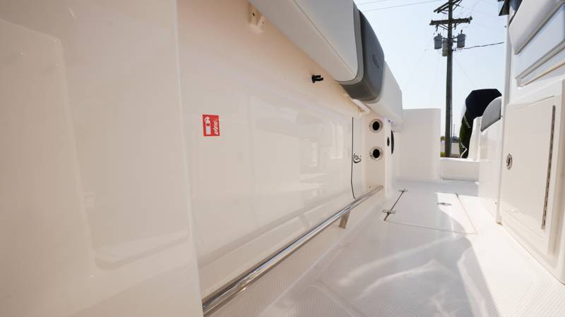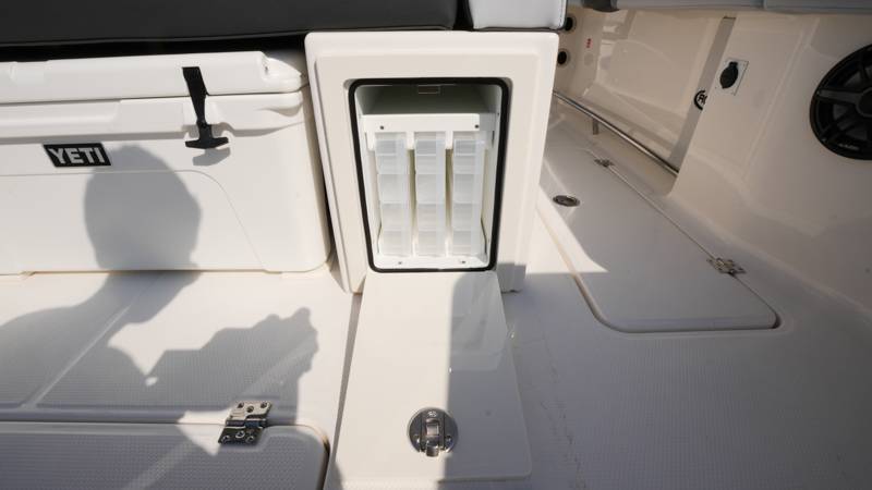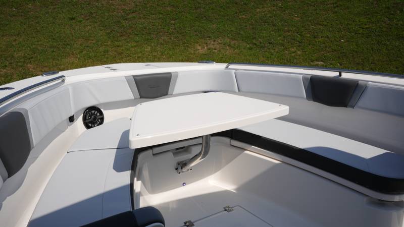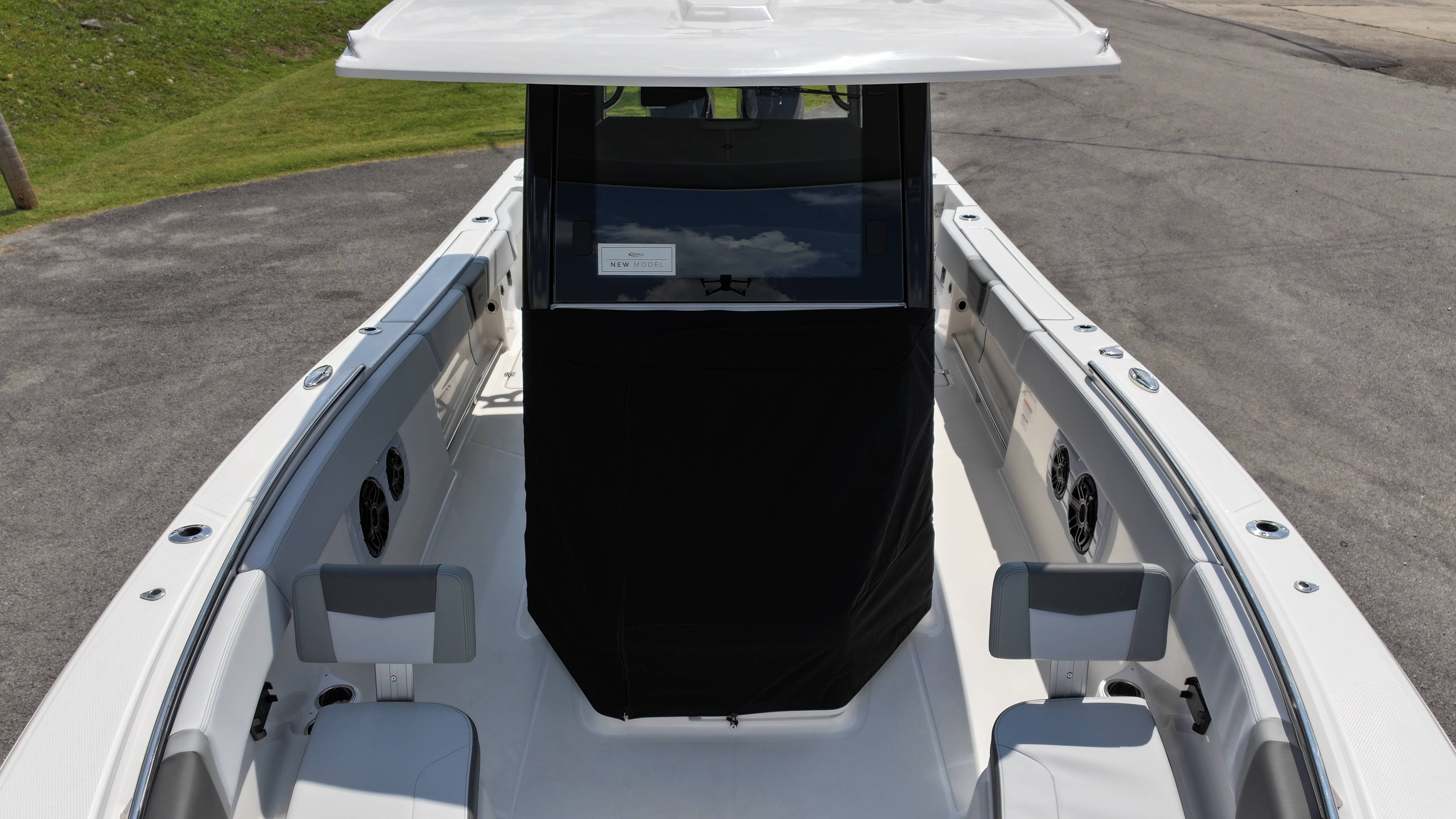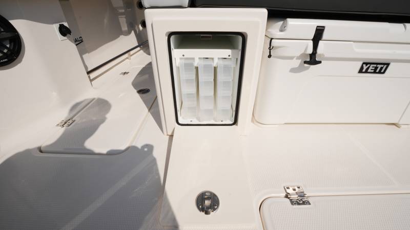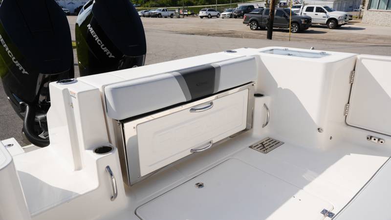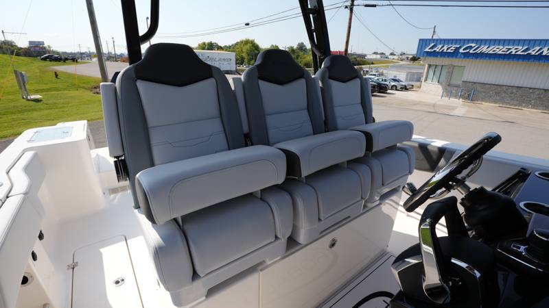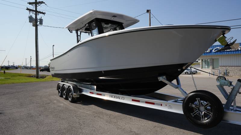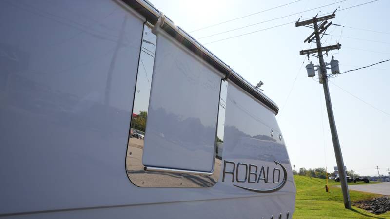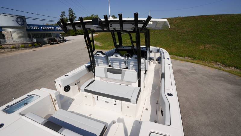 2026 Robalo R300 UNIQUE KEY FEATURES • Aft Cockpit Insulated Fish Boxes (70 Gallons) with Overboard Drains and Discharge Pumps • Aft Facing Bench Seat with Stainless Steel Drink Holders and Carry On 65 Qt Yeti Cooler • Bow Casting Platform Converts to U-Shaped Seating with Removable RTM Fiberglass Filler • Bow Cushions - (Removable) • Cockpit Table and Bow Filler with Dedicated Storage • Custom Bonded Electric Folding Front Windshield and Side Windshield Glass with Integrated Wiper • Electric Freshwater Toilet (Porcelain) Head System with 9 Gallon Holding Tank • Fiberglass Console Door - Friction Hinged with Lockable Latch • Fiberglass Hardtop with Custom Powder Coated Frame (Black or White) Includes: Overhead Sky Light, Rod Holders (8), Electronics Box, Tri Color Map Lights (4), Spreader Lights with Dual Color (White and Blue - Dimmable) (5), Blue Overhead Courtesy Lighting, Speakers (2), Fresh Water Washdown Shower, and LED Cast Robalo Logo • Fresh Water System with Overhead Shower in Hardtop • Full Transom Seat Folds Flush into Transom Wall • JL Audio includes: (8) Speakers and (2) 10" Subwoofers with LED Lighting, 600 Watt/Mono Channel Amplifier, 800 Watt/8 Channel Amplifier, Volume Knob, and Sirius Satelite • Kevlar Reinforced Hull • Limited Lifetime Hull Warranty • Port Cockpit Side Entry Door with Custom Stainless Steel Frame and Hardware • Premium Stain Resistant Silicone Cockpit Fabric • Self Bailing Cockpit with Integrated Drain System • Stainless Steel Rod Holders Mounted on Deck Gunnels (8) • Stainless Steel Rod Holders Mounted on Transom Wall (6) • Trim Tabs with Indicator Switch • Triple Forward Facing Helm Seats w/ Flip-Up Bolsters and Fold Down Armrests (Includes Center Seat Electric Forward/Aft Control) • Twin Insulated Livewells (28 Gallons) with Specific Livewell Pumps, LED Lighting, Blue Gelcoat Finish, Adjustable Flow Valves, and Clear Plexiglass Lids • Windlass Package Includes: 250' of Rope, 15' Chain, Anchor Windlass with Lanyard, Bow and Helm Control Hull Side Gelcoat - Alloy Gray Cockpit Interior - Harbor Mist Hard Top Complete (Black Powder Coated) Hardtop Underside Gel Color - Alloy Gray Console Cover and Helm Seat Cover - Black Forward Canvas Fly - Black Canvas AFT Canvas Fly - Black Canvas Garmin GPSMap 1643XSV Dual Screens Transducer B175M Upgrade Lenco Pro Trim Tab System Dual Color LED Underwater Lights (2 each) Seadek Helm Mat - White Overboard Discharge Cabin Wood Flooring Stainless Steel Drink/Rod Holders (4) Tackle Storage 12 Volt DC Electric Reel Receptacle Polished Stainless Steel Anchor Gray Water System Pre-Wire for Trolling Motor 5 Year Premium Level Limited Component Warranty Trailer - with Aluminum Wheels and Spare Tire