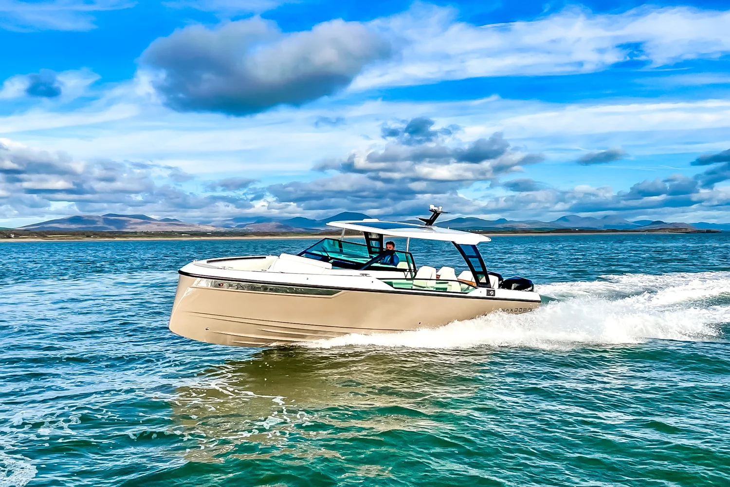The Saxdor 320 GTO has been Saxdor's bestselling model for many years and is a highly appreciated global success story that is irresistible across the globe. It combines phenomenal design and concept with the absolute thrill of driving; the performance is simply fantastic. With two Mercury 300 engines, you can easily and smoothly reach speeds of over 50 knots. Despite its excellent drivability, the boat offers much more. It features a great socializing space, a full cabin for napping or spending the night, and a well-equipped galley kitchen for preparing lovely, lazy breakfasts. Key Features Exterior Design - Saxdor 320 GTO with a T-top and walk-around deck is the first boat in the series, but two different deck variations will follow. All three versions share exquisite design, fast, powerful outboard performance, and a refined, economical hull shape. Maximum power will be twin 300 horsepower Mercurys while the single V8 engine with 300 horsepower is estimated to have a 40-knot top speed with cruising speed close to 30 knots. With twin 300 horsepower outboards, Saxdor 320 will achieve a top speed of well over 50 knots with an optimum cruising band between 20 and 40 knots.