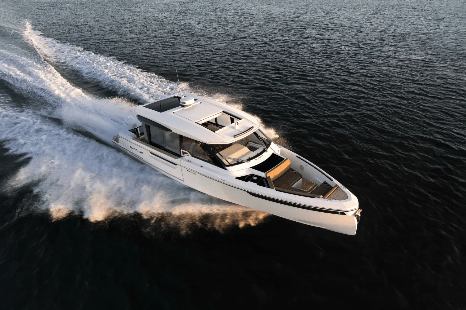 The Saxdor 400 GTC is engineered for twin outboard rigs with their unique naval architecture, guaranteeing an unforgettable journey every time. Featuring an innovative main deck design, the GTC, like its sibling, the GTO, maximizes its internal living space with a wheelhouse that extends to the full beam of the boat. Yet, the GTC takes luxury a step further with its vast, insulated glazing, creating a luminous, cozy interior that defies the elements. This layout connects directly to the side terraces, adding practicality and crafting a serence, private island experience while at rest. Key Features Future of Boating - Step into the future with the 2026 Saxdor 400 GTC, a powerful and innovative boat set to revolutionize your time on the water. This high-performance vessel combines futuristic design with cutting-edge features to elevate your boating experience to new heights.