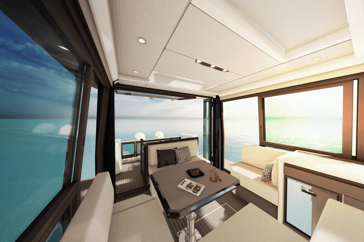 The Saxdor 400 GTC is engineered for twin outboard rigs with their unique naval architecture, guaranteeing an unforgettable journey every time. Featuring an innovative main deck design, the GTC, like its sibling, the GTO, maximizes its internal living space with a wheelhouse that extends to the full beam of the boat. Yet, the GTC takes luxury a step further with its vast, insulated glazing, creating a luminous, cozy interior that defies the elements. This layout connects directly to the side terraces, adding practicality and crafting a serence, private island experience while at rest. Key Features Future of Boating - Step into the future with the 2026 Saxdor 400 GTC, a powerful and innovative boat set to revolutionize your time on the water. This high-performance vessel combines futuristic design with cutting-edge features to elevate your boating experience to new heights.