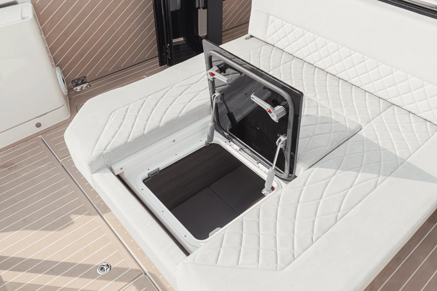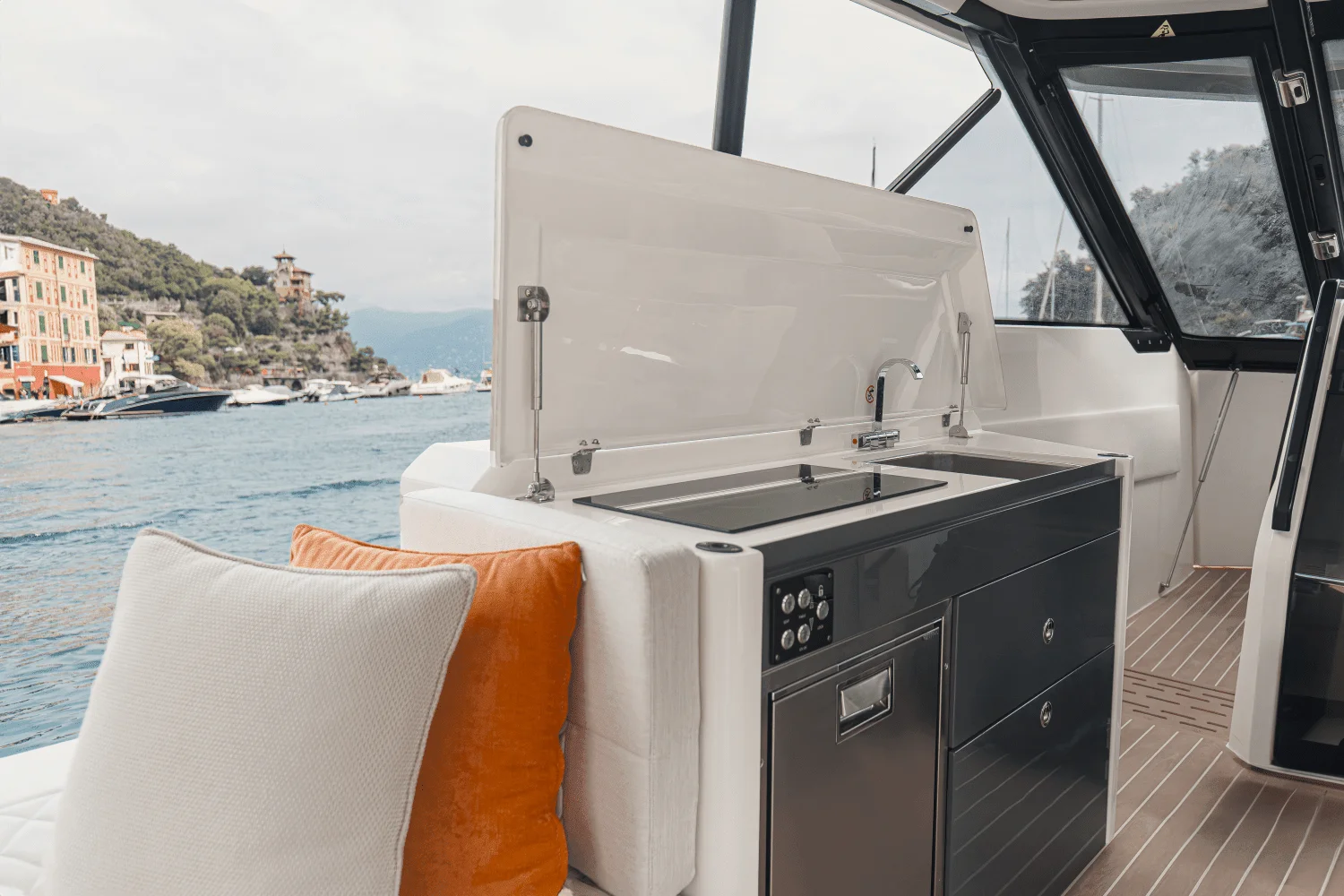 Convertible Comfort - A push-button sunroof slides open for fresh air or clases for shade in seconds. The rear sofa pulls out into a spacious sunbed, while the cockpit fridge and stern grill keep snacks and drinks within easy reach.
