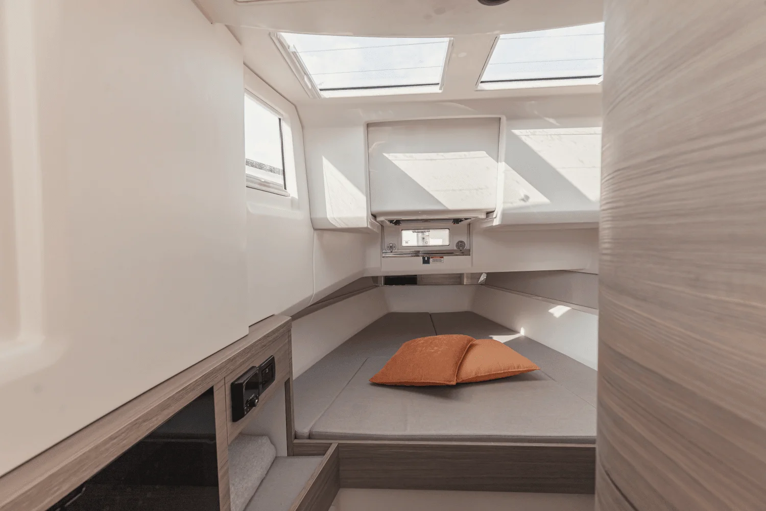 Convertible Comfort - A push-button sunroof slides open for fresh air or clases for shade in seconds. The rear sofa pulls out into a spacious sunbed, while the cockpit fridge and stern grill keep snacks and drinks within easy reach.