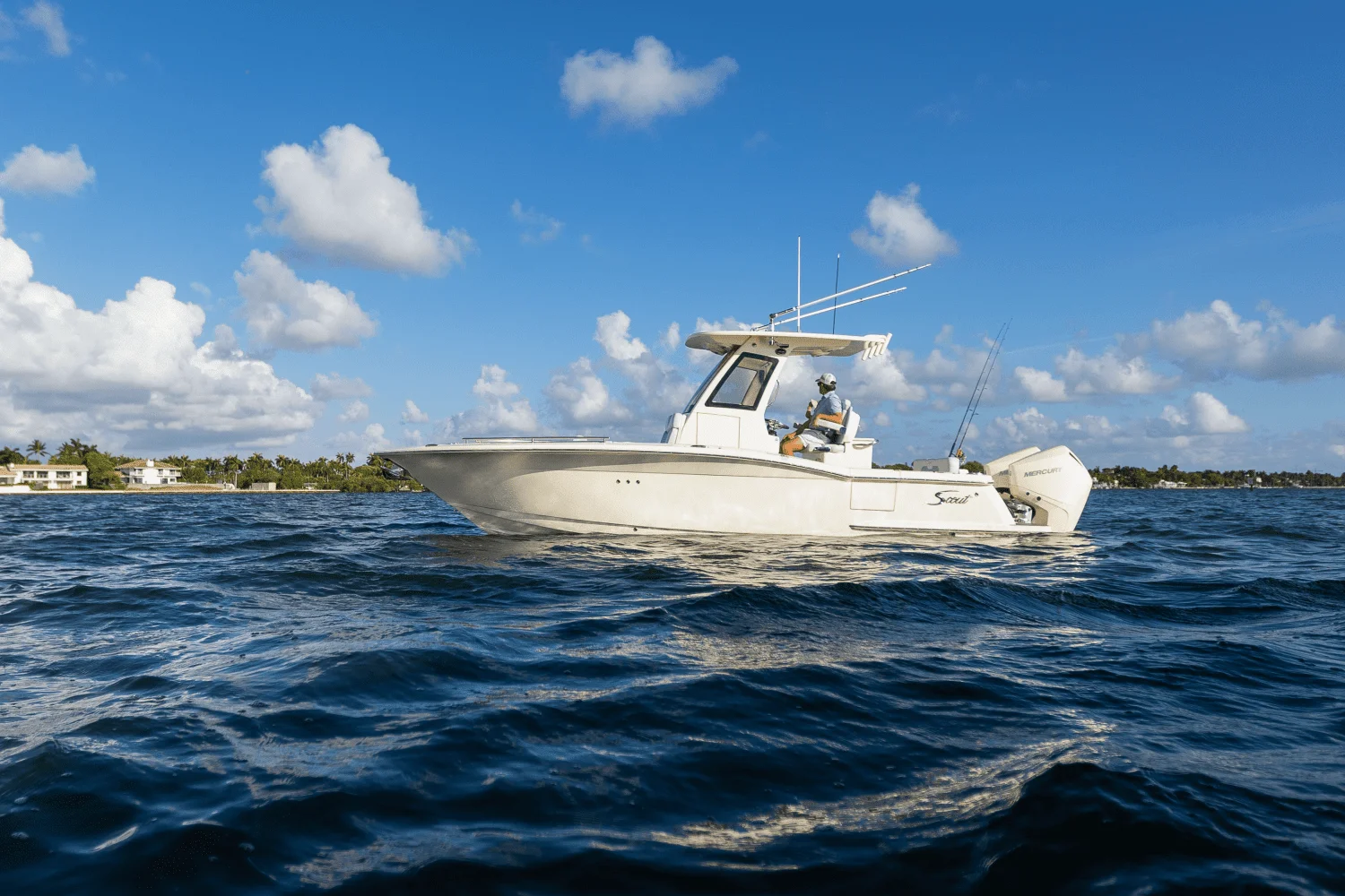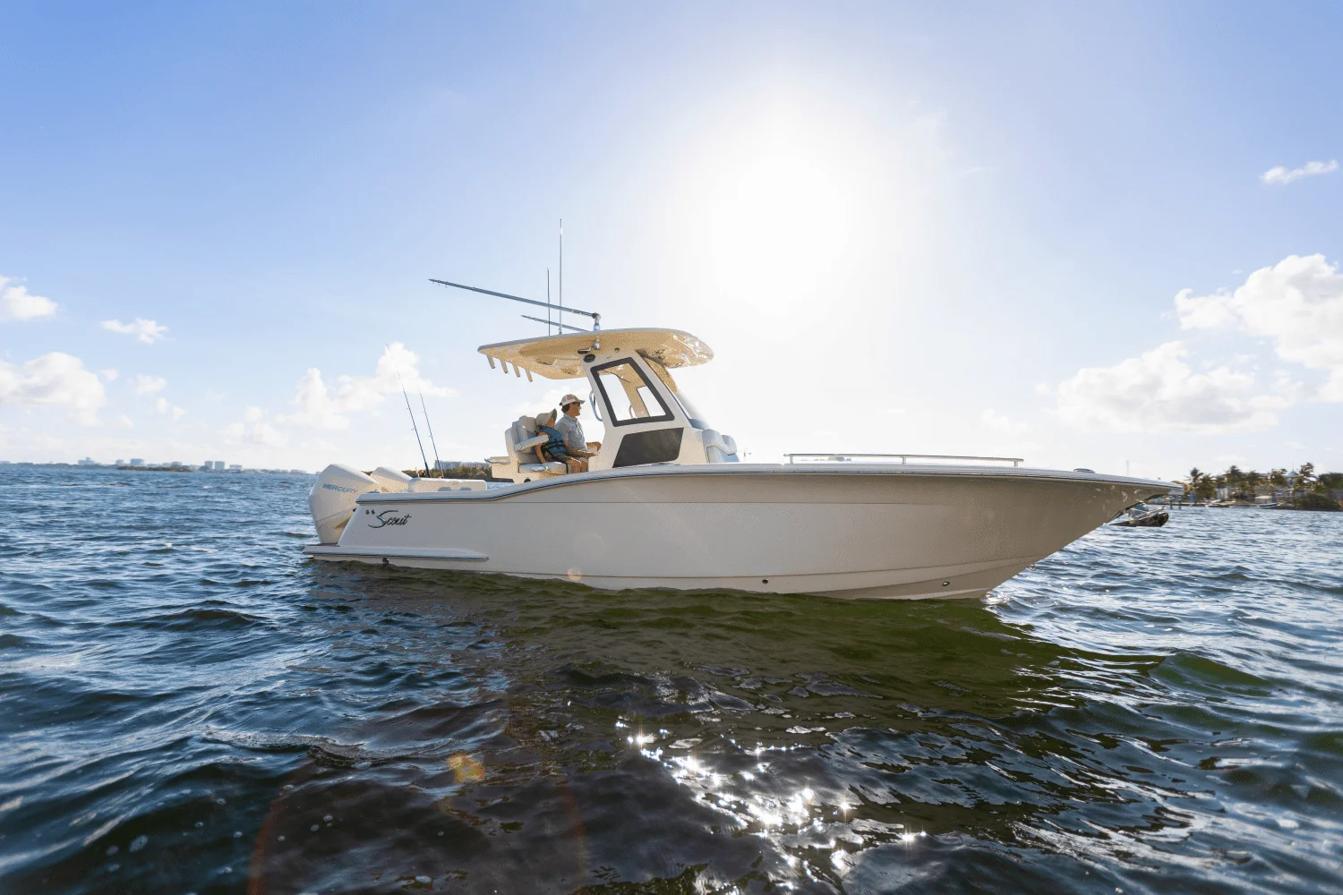 Introducing our all-new 260 LXF center console model. Performance meets function at a high level in this new 26' model. It comes standard with an integrated exposed carbon fiber T-top with fully enclosed windshields that complements the already sleek profile as well as provides protection from the elements, a forward lounge seat that might just offer the best seat in the house, a side dove door that provides convenient access on and off the boat, in-floor fish boxes for the catches of the day, and an extended walkable transom that adds further to the safety and convenience of the model. This model also comes standard with the Seakeeper Ride vessel attitude control system, and a step-inside console with porcelain head. Choose from multiple engine package options as well as upholstery and hull color choices to make it your own. Key Features Introducing the 2025 Scout 260 LXF - Step into luxury and adventure with the 2026 Scout 260 LXF, a masterpiece of craftsmanship and performance.