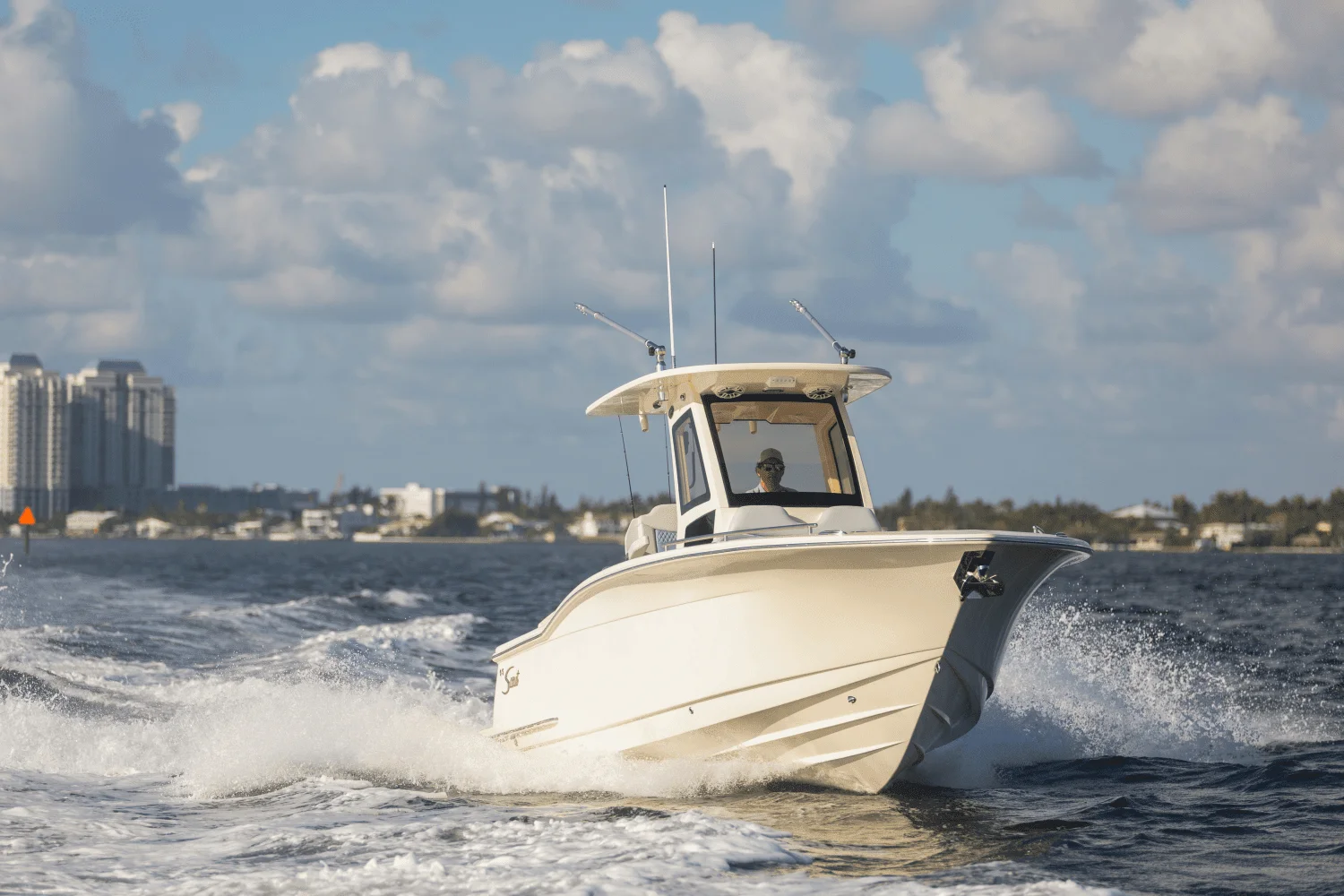 Introducing our all-new 260 LXF center console model. Performance meets function at a high level in this new 26' model. It comes standard with an integrated exposed carbon fiber T-top with fully enclosed windshields that complements the already sleek profile as well as provides protection from the elements, a forward lounge seat that might just offer the best seat in the house, a side dove door that provides convenient access on and off the boat, in-floor fish boxes for the catches of the day, and an extended walkable transom that adds further to the safety and convenience of the model. This model also comes standard with the Seakeeper Ride vessel attitude control system, and a step-inside console with porcelain head. Choose from multiple engine package options as well as upholstery and hull color choices to make it your own. Key Features Introducing the 2025 Scout 260 LXF - Step into luxury and adventure with the 2026 Scout 260 LXF, a masterpiece of craftsmanship and performance.
